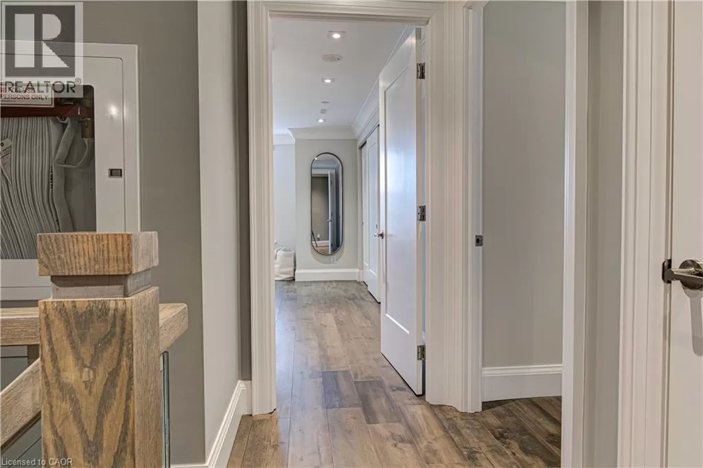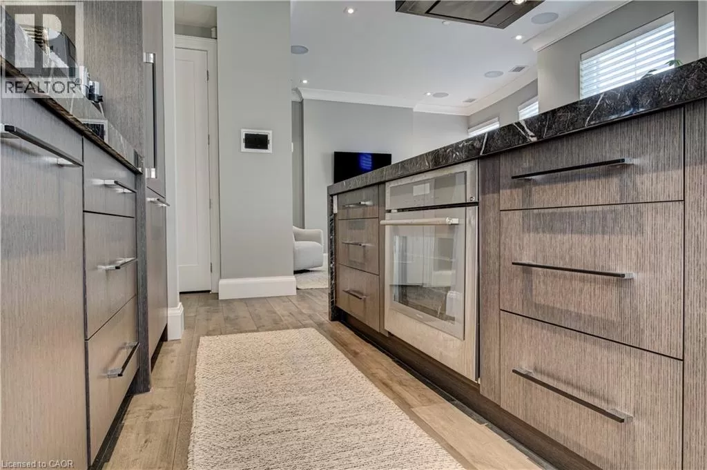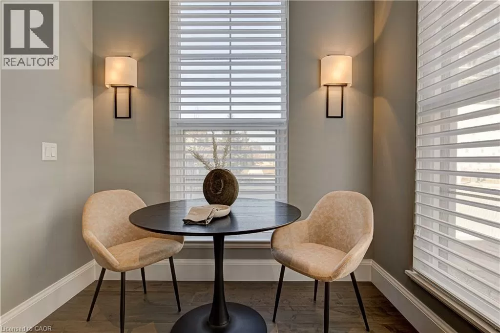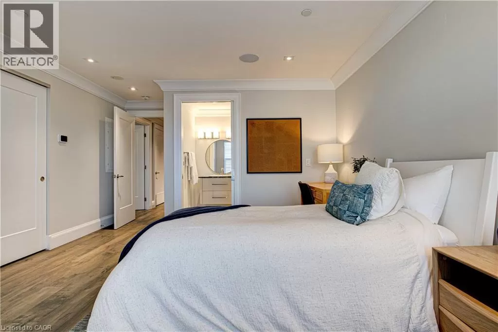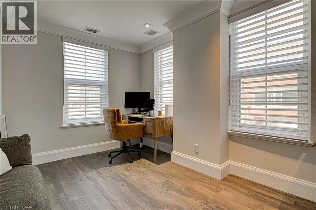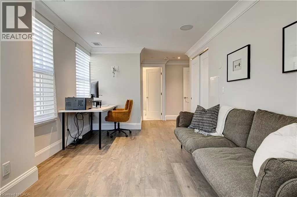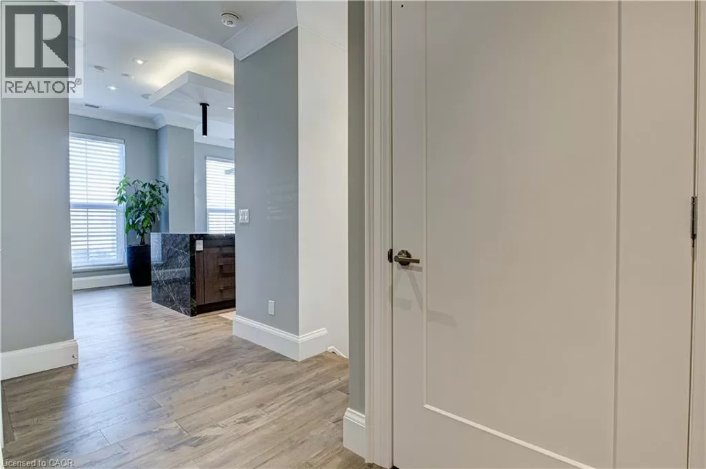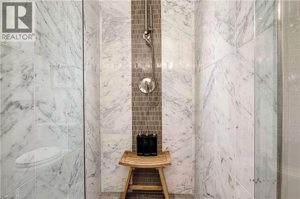 Corner of Allen St W and Caroline St S. In the heart of Uptown Waterloo, this 3-bedroom, 4.5 bathroom executive townhome at 155 Caroline Street offers an exceptional blend of contemporary design and timeless sophistication. Thoughtfully enhanced with over $300,000 in bespoke upgrades, this residence is defined by its attention to detail, expansive room sizes and quality finishes. Wide-plank hardwood floors, soaring ceilings, and oversized windows with custom window coverings create a sense of airy elegance throughout. The open-concept kitchen is both striking and functional, complete with professional-grade stainless steel appliances, European-inspired cabinetry, exotic marble countertops, and a statement waterfall island. The adjoining dining area is perfectly suited for morning coffee and cozy evening dinners. Occupying the entire third floor, the expansive primary suite offers an indulgent retreat with a reading area, pass-through dressing area with custom built-ins, dual 3-piece ensuitesâone with a deep soaking tub and custom shower and the other with dual sinks and toilet space providing separation for morning preparations. Two additional bedrooms, each with their own spa-like ensuites and generous closet space, provide comfort and privacy for guests or family. The finished lower level is designed with practicality in mind, featuring a mudroom, laundry area, powder room, direct garage access, an elevator, and ample storage. Additional features include secure 3-car underground parking, a private, in suite elevator servicing all levels, 2 lockers, and thoughtfully integrated storage throughout. All this, steps from the city's best dining, shopping, and cultural destinations, with effortless access to major routes and everyday conveniences. An exceptional residence where sophisticated urban living meets elevated comfort. (id:27476)