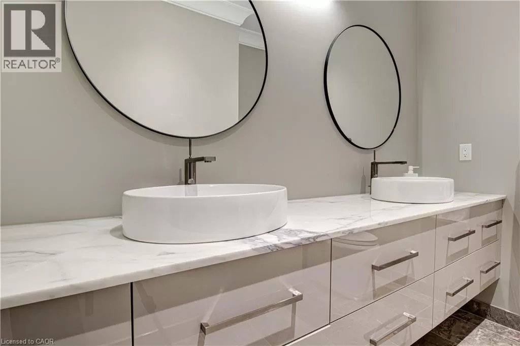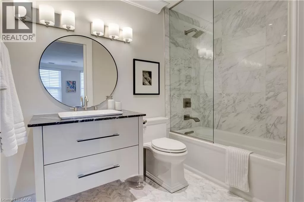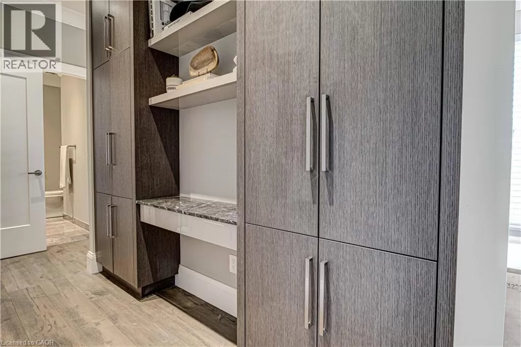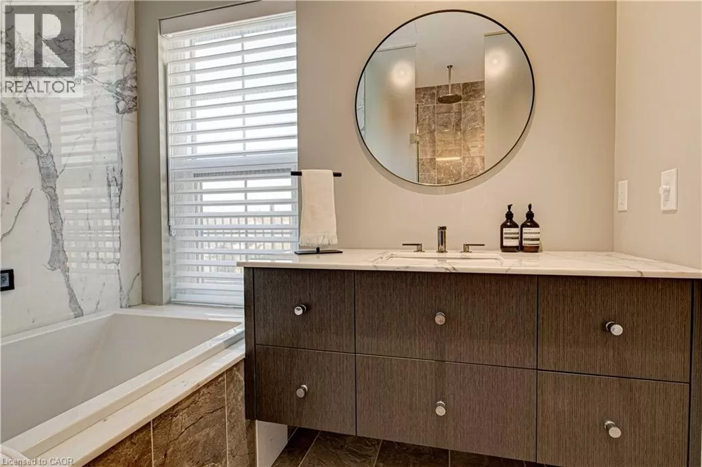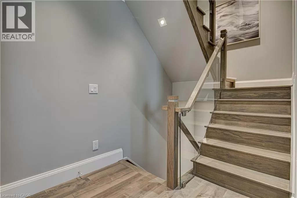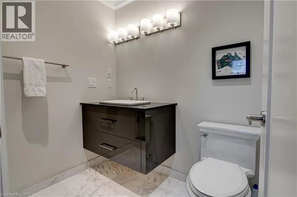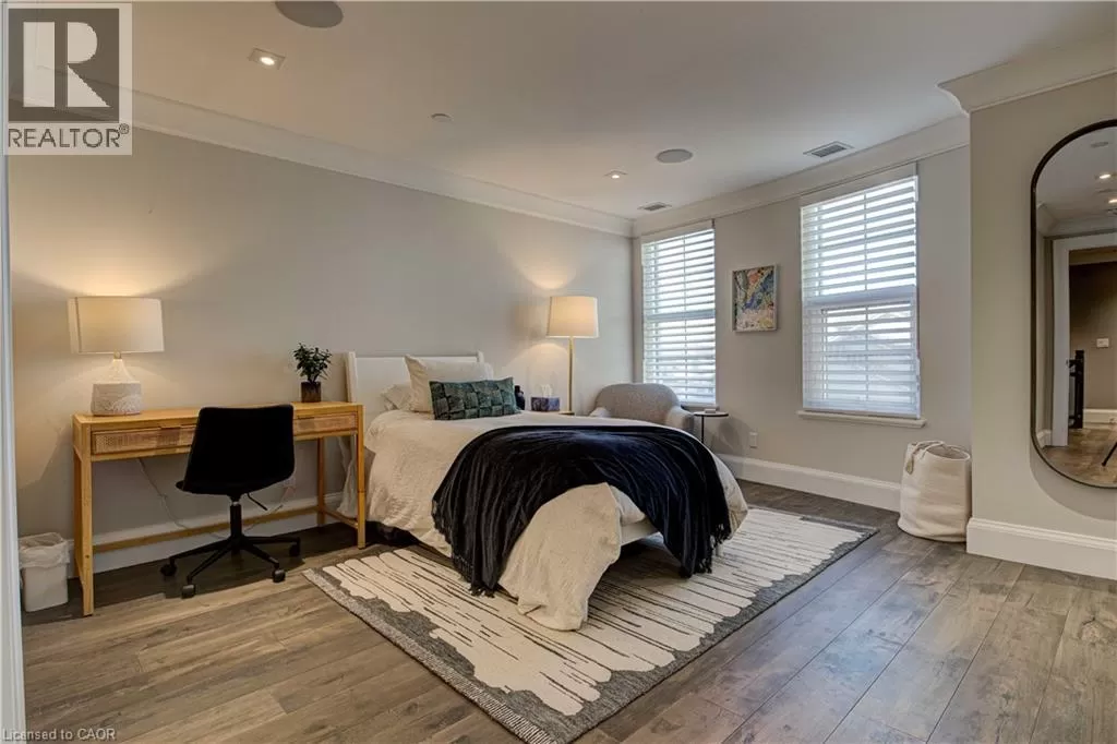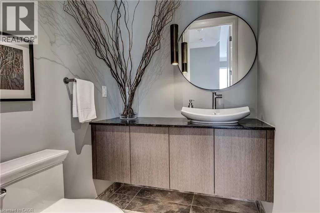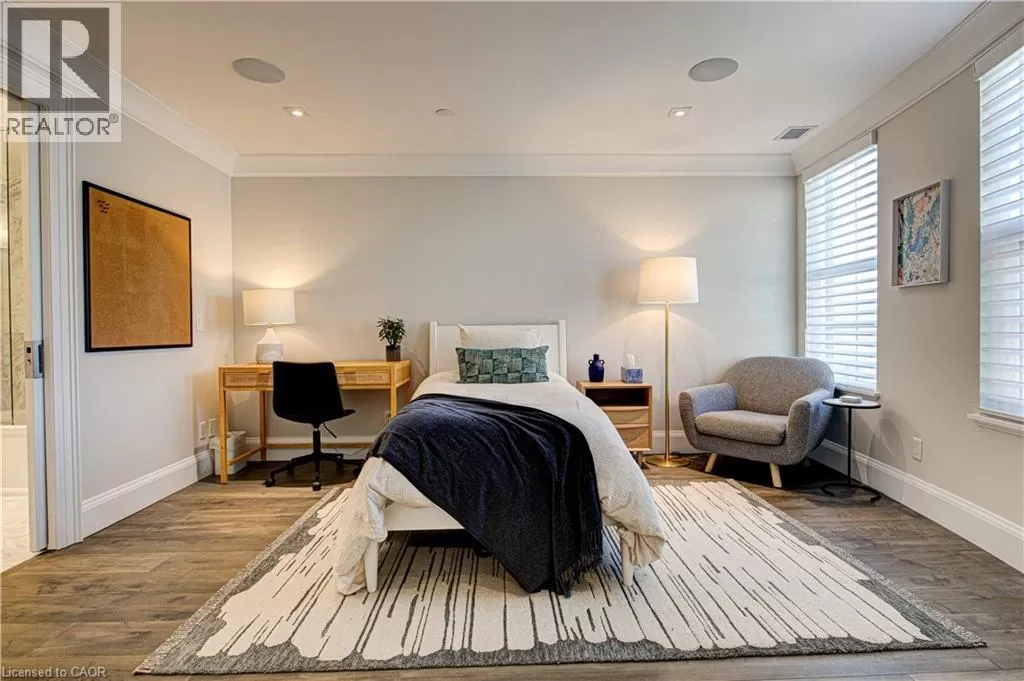 Corner of Allen St W and Caroline St S. In the heart of Uptown Waterloo, this 3-bedroom, 4.5 bathroom executive townhome at 155 Caroline Street offers an exceptional blend of contemporary design and timeless sophistication. Thoughtfully enhanced with over $300,000 in bespoke upgrades, this residence is defined by its attention to detail, expansive room sizes and quality finishes. Wide-plank hardwood floors, soaring ceilings, and oversized windows with custom window coverings create a sense of airy elegance throughout. The open-concept kitchen is both striking and functional, complete with professional-grade stainless steel appliances, European-inspired cabinetry, exotic marble countertops, and a statement waterfall island. The adjoining dining area is perfectly suited for morning coffee and cozy evening dinners. Occupying the entire third floor, the expansive primary suite offers an indulgent retreat with a reading area, pass-through dressing area with custom built-ins, dual 3-piece ensuitesâone with a deep soaking tub and custom shower and the other with dual sinks and toilet space providing separation for morning preparations. Two additional bedrooms, each with their own spa-like ensuites and generous closet space, provide comfort and privacy for guests or family. The finished lower level is designed with practicality in mind, featuring a mudroom, laundry area, powder room, direct garage access, an elevator, and ample storage. Additional features include secure 3-car underground parking, a private, in suite elevator servicing all levels, 2 lockers, and thoughtfully integrated storage throughout. All this, steps from the city's best dining, shopping, and cultural destinations, with effortless access to major routes and everyday conveniences. An exceptional residence where sophisticated urban living meets elevated comfort. (id:27476)