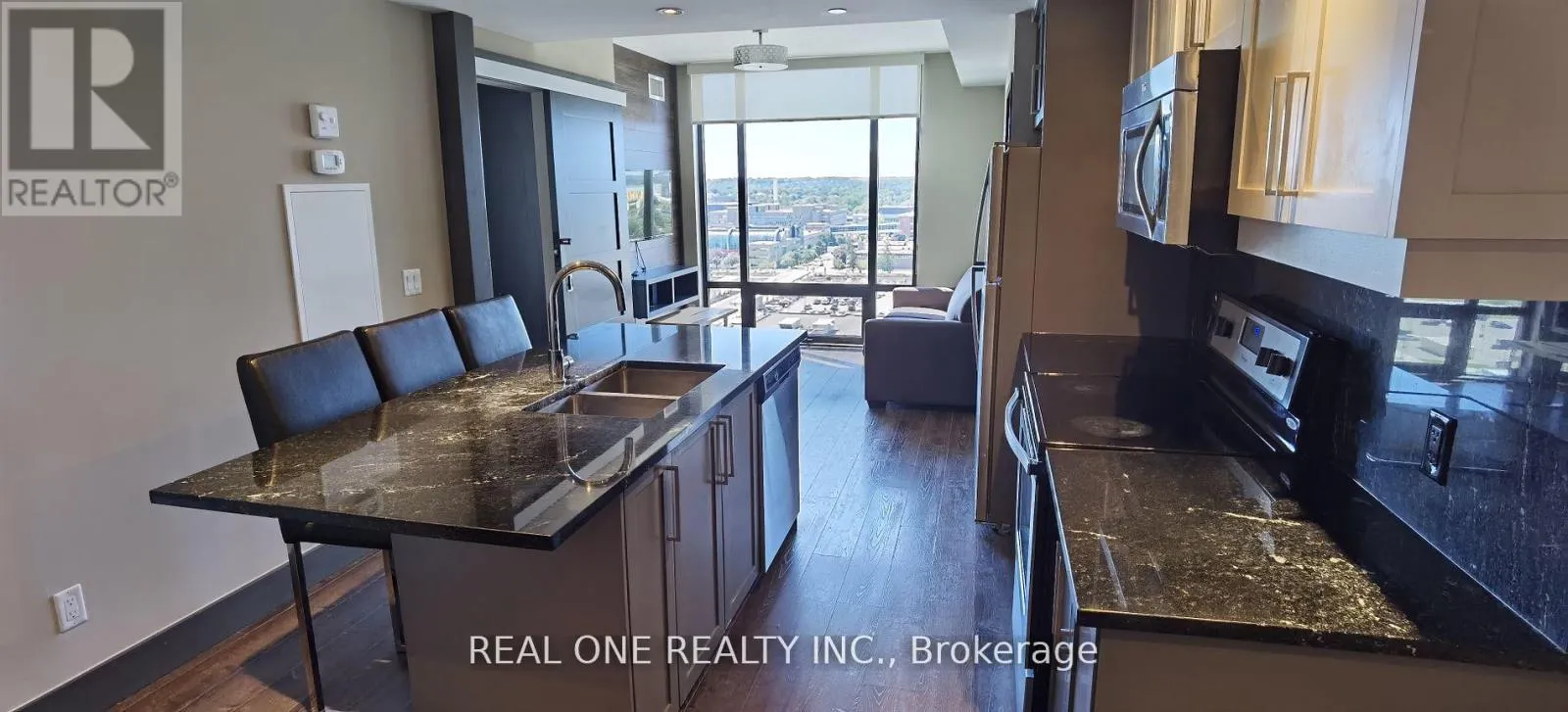 Cross Streets: Columbia And Phillip. ** Directions: Continue onto ON-85; Take the King Street exit; Follow King St N and Columbia St W to Phillip St; Use any lane to turn left onto King St N; Turn right onto Columbia St W; Turn left onto Phillip St. Experience Elevated Student Living At The ICON, Waterloo's Premier Lifestyle Complex. This 3 Bed Unit On The 14th Floor Of The South Tower Offers Breathtaking Views Of Waterloo's Skyline, all three bedrooms have windows with views! Enjoy A Modern Kitchen With Quartz Countertops, S.S. Appliances Plus Ample Cabinetry. The Spacious Living Room Features Engineered Flooring, A Mounted TV, And Floor-To-Ceiling Windows. The Primary Bedroom Boasts More Stunning Views, A Modular Desk/Shelving Unit, An Ensuite Bathroom With Adjoining Den (Bedroom). Plus, Exclusive Underground Parking And A Storage Locker Are Included. Tons Of Amenities Including Rooftop Basketball Court, Gym, Yoga Studio, Games Room, Study Lounge, Fitness Centre, Theatre Room, Concierge And 24 Hrs Security, Fully Furnished Unit. The ICON Ensures Comfort And Safety. An Onsite Leasing Office Handles Short And Long-Term Rentals, Maintenance, And Parking Options. Don't Miss This Investment Opportunity For Premium Student Living.S/S Fridge, Stove, B/I Dishwasher & Microwave-Rangehood, Washer & Dryer, Window Coverings, Stone Counter Top, Engineered Laminate Floor, Two Mounted TV, Sliding Doors. One Parking + One Locker! (id:27476)