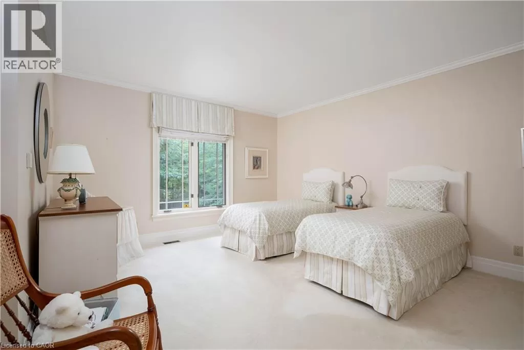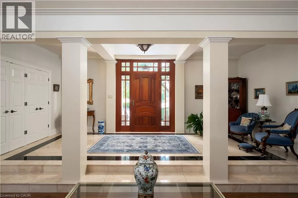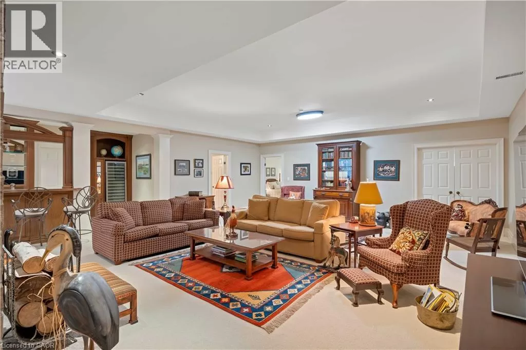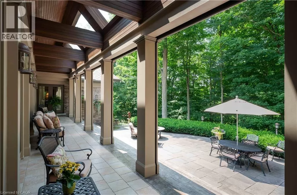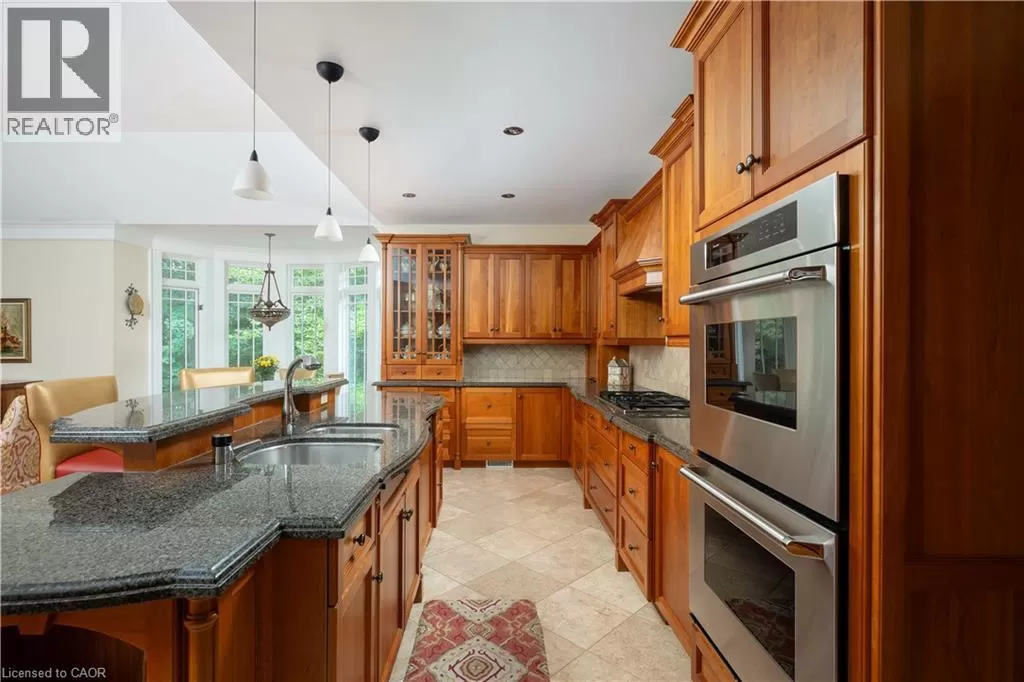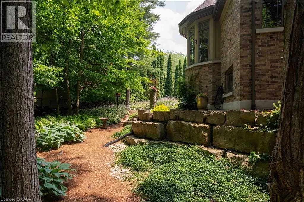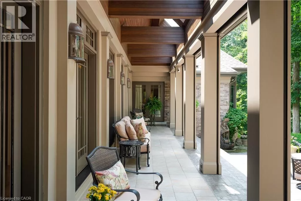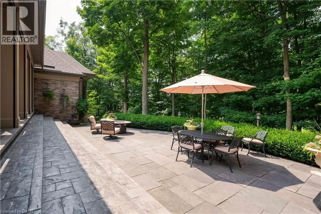 Erbsville Rd to Leighland Dr to Carrington Pl Welcome to 276 Carrington Place, This prestigious Beechwood bungalow is perfectly located on a quiet court backing onto greenspace and trails. The home features 3 bedrooms and 5 bathrooms, set on a large, .90 acre private lot surrounded by nature. Step into the grand foyer that opens into the spacious living room with soaring ceilings a double-sided fireplace which can be enjoyed from the formal living room as well as the formal dining room. The large kitchen comes fully equipped with sub Zero Fridge and Freezer as well as all the top end built in appliances. With ample counter space, and plenty of storage, the kitchen is an absolute stunner! The Kitchen opens onto the family room which gives access to the indoor outdoor covered and phantom screened porch. All to enjoy your beautiful private yard. Down the open concept hallway it will lead you to the expansive primary suite, which features a large dressing area with two walk in closets and keep luxurious en suite bathroom. The fully finished basement with 10 ft ceilings offers an impressive amount of additional living space, complete with a games room, bar, family room, and an extra bedroom with its own bathroom - perfect for entertaining or extended family. Outdoors, the backyard is the true highlight with a large patio area on expansive greenspace, along with your own private pathways around the gardens and trails. This exceptional property combines privacy, functionality, and a one-of-a-kind setting in sought-after Beechwood. Homes like this rarely come on the market. (id:27476)