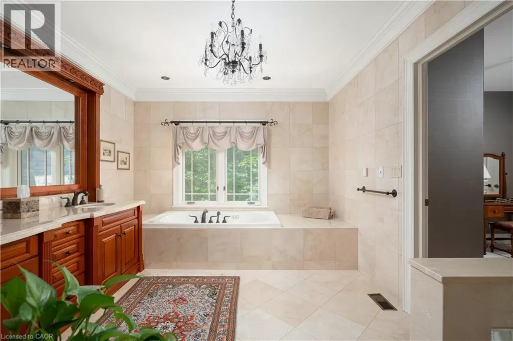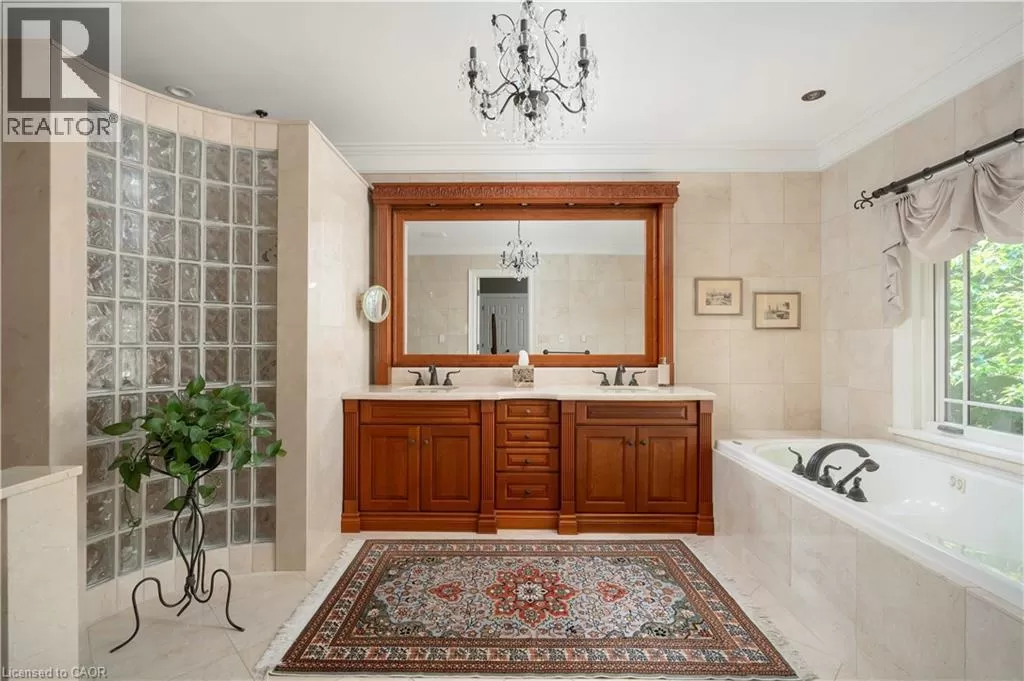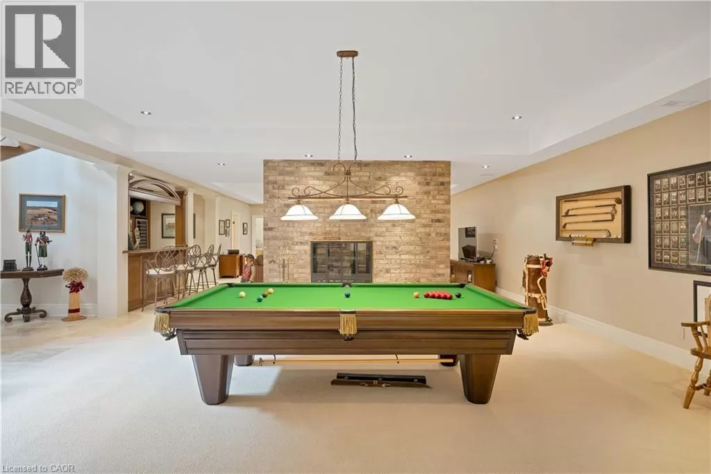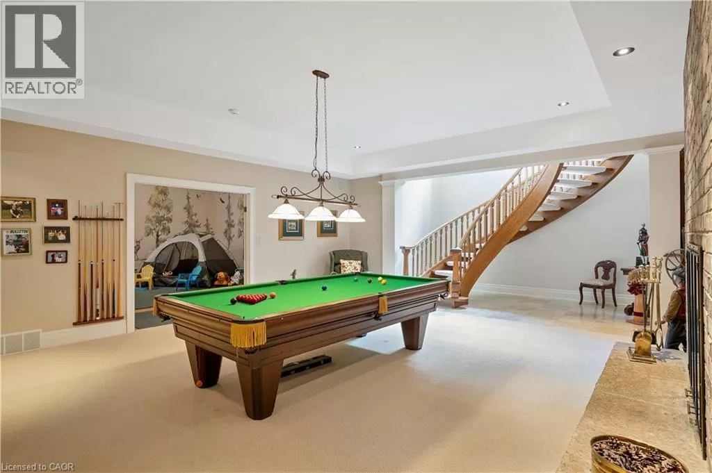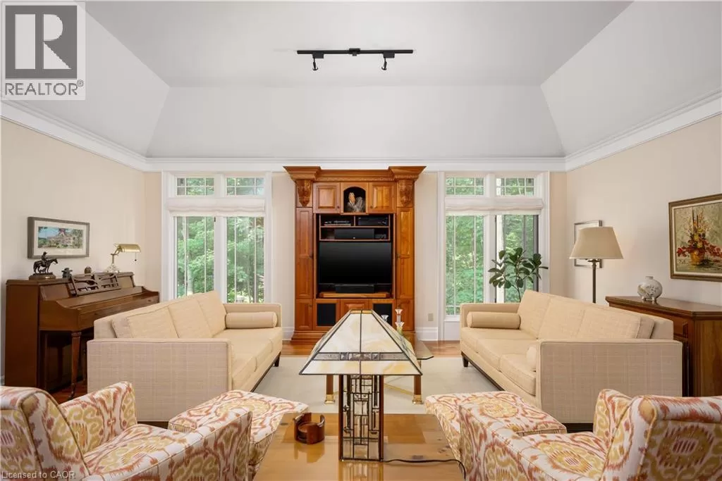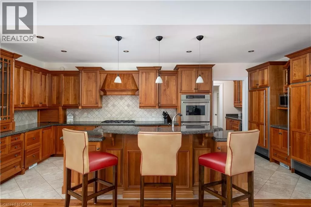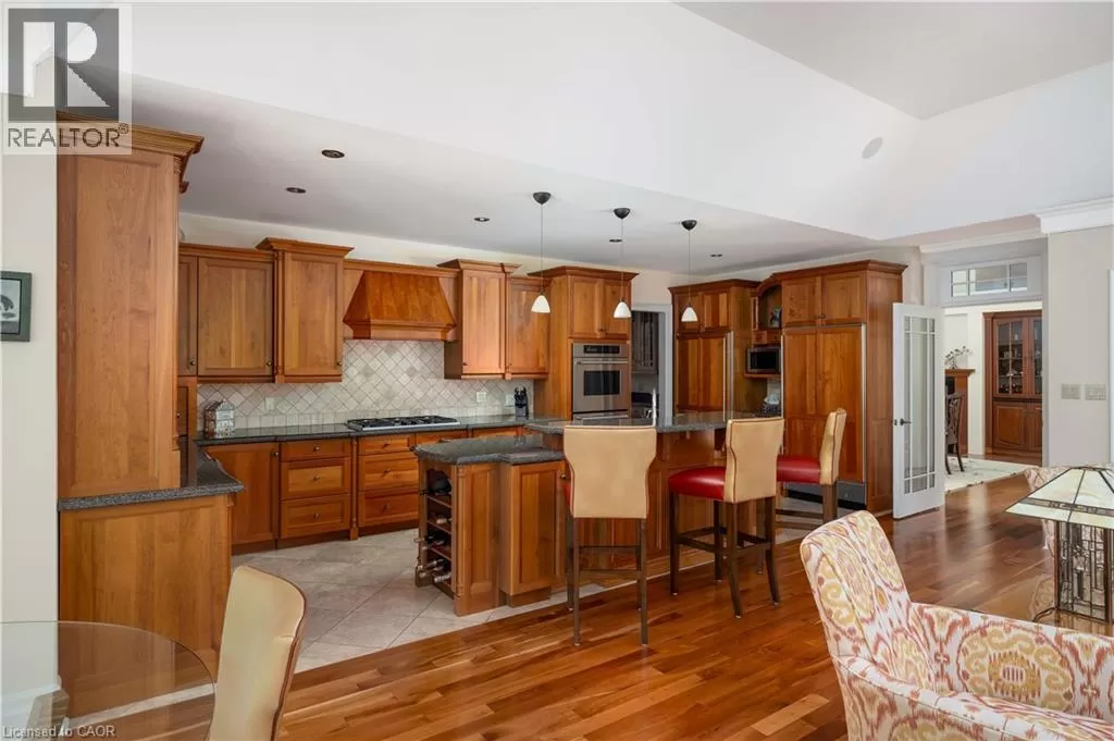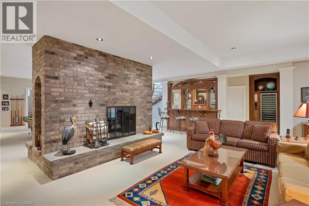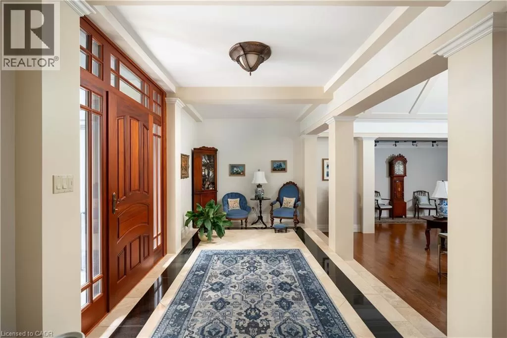 Erbsville Rd to Leighland Dr to Carrington Pl Welcome to 276 Carrington Place, This prestigious Beechwood bungalow is perfectly located on a quiet court backing onto greenspace and trails. The home features 3 bedrooms and 5 bathrooms, set on a large, .90 acre private lot surrounded by nature. Step into the grand foyer that opens into the spacious living room with soaring ceilings a double-sided fireplace which can be enjoyed from the formal living room as well as the formal dining room. The large kitchen comes fully equipped with sub Zero Fridge and Freezer as well as all the top end built in appliances. With ample counter space, and plenty of storage, the kitchen is an absolute stunner! The Kitchen opens onto the family room which gives access to the indoor outdoor covered and phantom screened porch. All to enjoy your beautiful private yard. Down the open concept hallway it will lead you to the expansive primary suite, which features a large dressing area with two walk in closets and keep luxurious en suite bathroom. The fully finished basement with 10 ft ceilings offers an impressive amount of additional living space, complete with a games room, bar, family room, and an extra bedroom with its own bathroom - perfect for entertaining or extended family. Outdoors, the backyard is the true highlight with a large patio area on expansive greenspace, along with your own private pathways around the gardens and trails. This exceptional property combines privacy, functionality, and a one-of-a-kind setting in sought-after Beechwood. Homes like this rarely come on the market. (id:27476)
