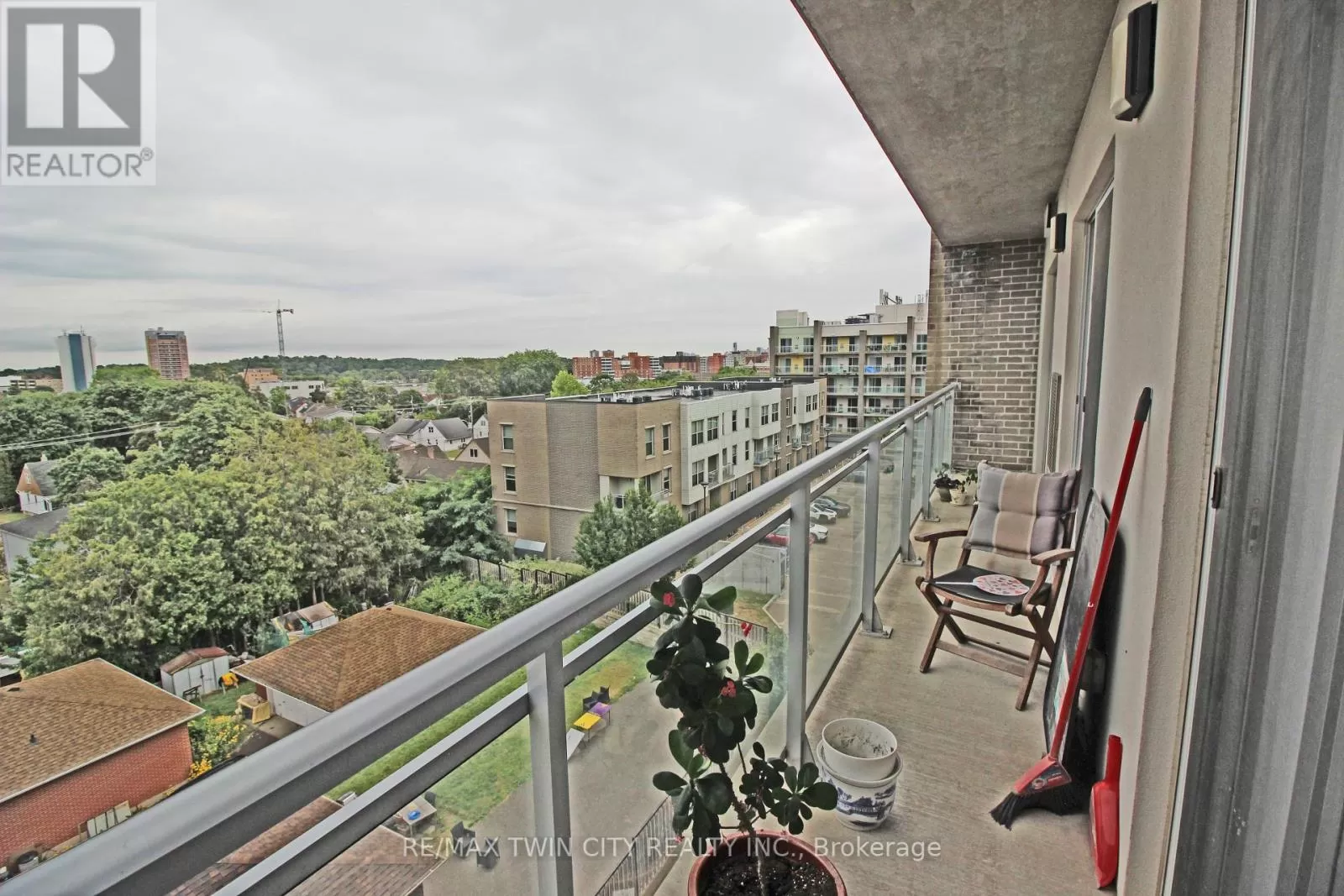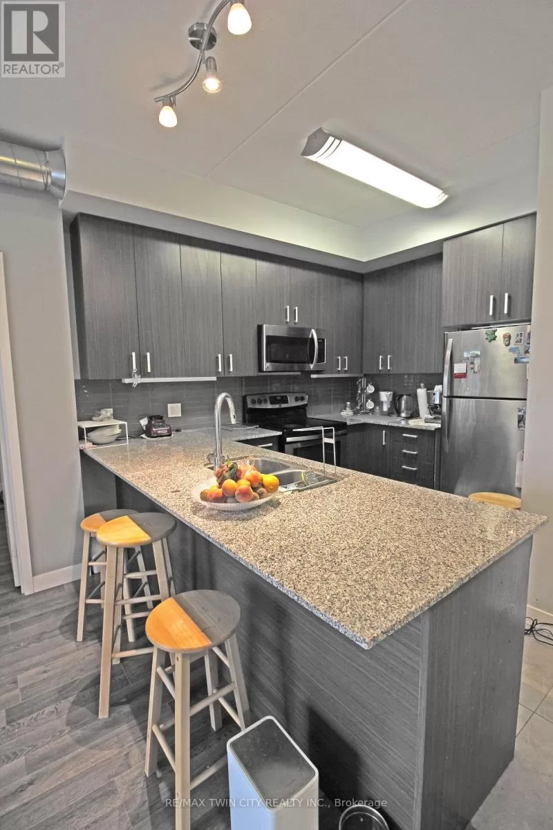 UNIVERSITY- HAZEL- BALSAM Welcome to Unit H505 at 62 Balsam Street. Whether you're a student searching for the perfect home just steps from Wilfrid Laurier and walking distance to the University of Waterloo, or an investor looking for a strong rental opportunity, this condo close to public transit, shopping, and dining is sure to impress! This bright and functional layout offers 877 sq. ft. of living space with 9-foot ceilings and modern finishes. Inside, you'll find 1 bedroom, one large bright den, 2 bathrooms, and convenient in-suite laundry. The sleek kitchen is designed with granite countertops,double sinks, stainless steel appliances, and soft-close cabinetry. Step outside to an oversized terrace large enough for a full patio set, featuring two walkouts and sweeping city views. Parking is effortless with two included underground spots (#71, #97), keeping your vehicles safe and snow-free in addition to an underground storage room (#505). Building amenities include unlimited high-speed internet, a social lounge, and study areas. (id:27476)