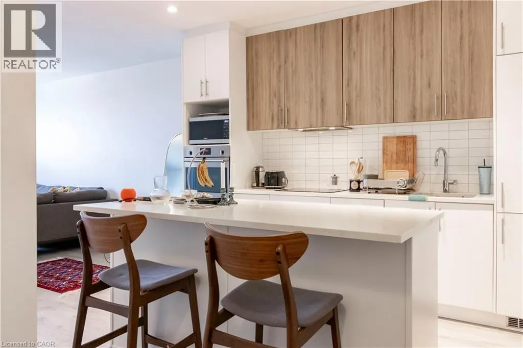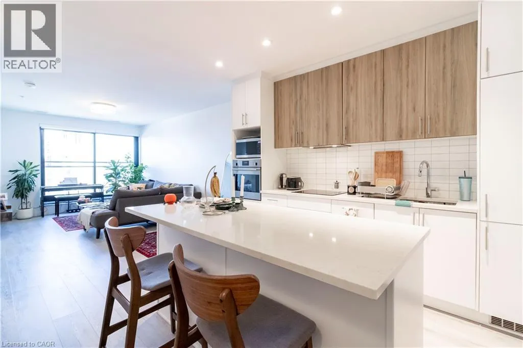 King St S just North of Allen Welcome to Suite #1212 at CIRCA 1877 â a stunning 12th-floor residence in the heart of Uptown Waterloo. This 1 Bedroom suite offers a perfect blend of contemporary luxury, thoughtful design, and breathtaking views from one of the buildingâs most desirable elevations. Perched high above the city, this suite boasts spectacular views of Uptown Waterloo and beyond, filling the living space with natural light by day and showcasing a dramatic cityscape by night. Inside, elevated ceilings in the kitchen, living, and dining areas create an open and airy feel. The sleek kitchen features stainless steel appliancesâincluding a built-in fridgeâquartz countertops and backsplash, soft-close cabinetry, and a spacious island with extra storage. Enjoy in-suite laundry and one underground parking space for everyday convenience. Residents of CIRCA 1877 enjoy access to premium amenities, including a large Fitness Center, Co-Working Space, Lounge, Rooftop Pool with Cabanas, and a BBQ Area. Plus, indulge in exclusive dining at Lala Social House, located on the ground floor. Located in the sought-after Bauer Districtâsteps from dining, shopping, groceries, the LRT, Waterloo Park, and both universities, with quick access to the ExpresswayâSuite 1212 delivers elevated living in every sense of the word. (id:27476)