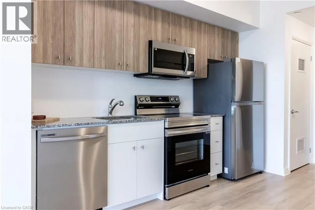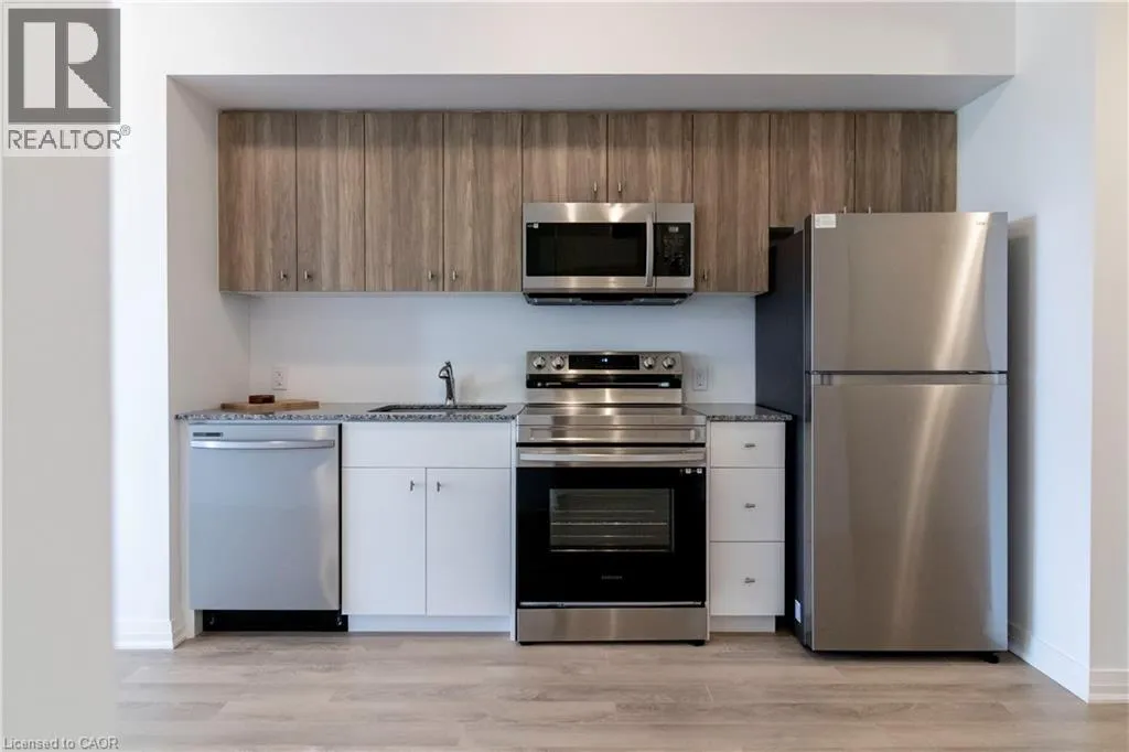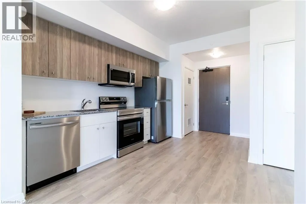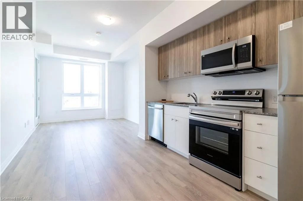 Weber St N to Golden Eagle. Effortless Living Meets Clean Design â Welcome to Unit 406 at The Jake. Discover perfectly efficient living in this brand new, never-lived-in 1-bedroom, 1-bath suite on the 4th floor of The Jakeâa boutique North Waterloo condo designed with West Coast-inspired warmth, clean architectural lines, and curated landscaping by VanMar Developments. At 545 sq ft, Unit 406 is intelligently laid out to maximize comfort and functionality. A quiet balcony overlooking Golden Eagle Road offers peaceful morning light and a relaxing retreat from city noise. Inside, the open concept living space flows into a spacious 4-piece bathroom, ideal for daily comfort and ease. Thoughtfully built to support a modern lifestyle, this unit is part of a community that includes a stylish co-working lounge, a pocket gym with Peloton, integrated parcel lockers, and more. Step outside to an unbeatable locationâSobeys, Starbucks, Shoppers, State & Main, a 24hr gym, and the Northfield LRT stop are all just minutes away. And on weekends? Youâre a quick stroll to St. Jacobâs Market or the scenic trails of Waterlooâs north end. Crafted with VanMarâs signature quality, Unit 406 is a minimalistâs dreamâquiet, smart, and just right. (id:27476)