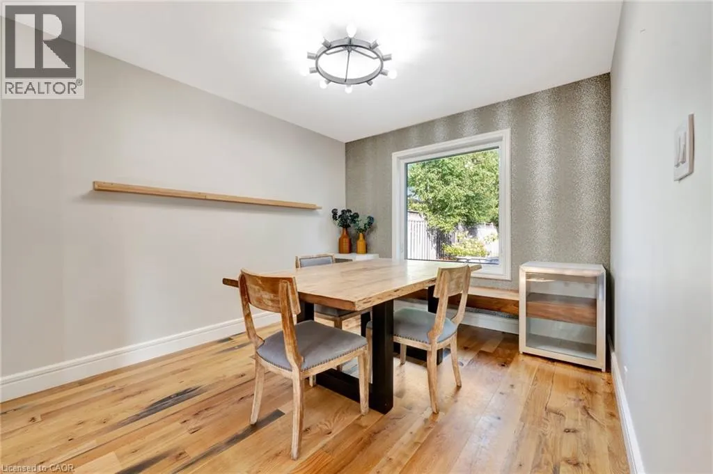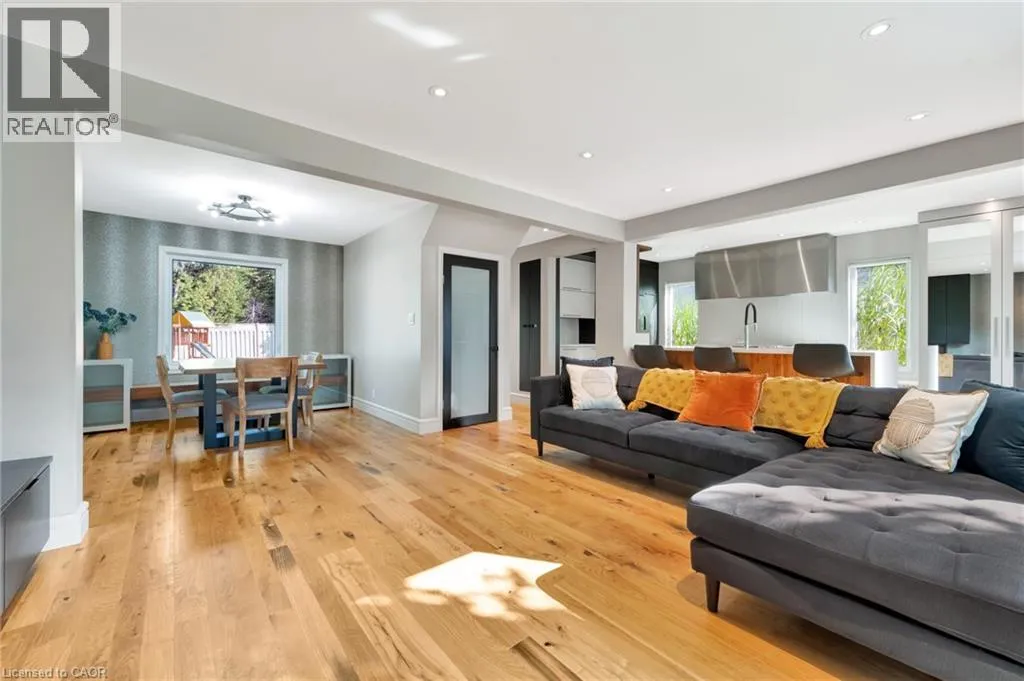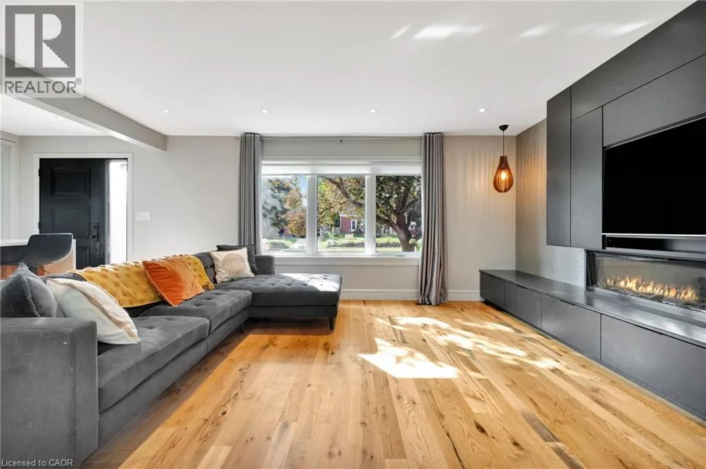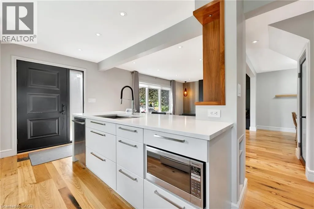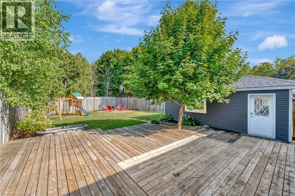 Margaret Ave S to Pinewood Pl Welcome to 254 Pinewood Place, Waterloo - A Fully Renovated Brick Beauty in a Prime Location Near Breithaupt Park! Tucked away on a quiet street in one of Waterlooâs most desirable neighbourhoods, this stylish 2- bedroom, 2-bathroom home is just a short walk to Breithaupt Park, scenic trails, shopping, schools, and minutes from Uptown Waterloo and Highway 7. The location offers the perfect blend of walkability and convenience, all within a peaceful, family-friendly setting. Inside, youâll be impressed by the bright, open-concept main floor featuring hardwood flooring (2017), pot lights, and a striking 74 linear electric fireplace. The custom kitchen, fully renovated in 2017, includes a large island with waterfall edge, galley sink, modern cabinetry, upgraded quartz countertops, a built-in fridge and stove, and a statement range hood all designed with both functionality and style in mind. Upstairs offers two updated bedrooms with windows replaced in 2017 and extra storage. The finished basement provides even more living space with a spacious rec room and updated three-piece bathroom. Additional upgrades include a new roof and eaves on the home (2018), new roof and siding on the detached garage (2018/2017), garage doors (2016), updated bathrooms (2016/17), a new air conditioner (2017), owned water heater (2017), water softener (2016), new insulation in the walls and rim joist (2017), and heated floors at the rear entry. Washer and dryer were also replaced in 2017. Step outside to a large deck perfect for entertaining, a fully fenced backyard ideal for kids or pets, and a detached garage offering great storage or hobby space. This is a truly move-in-ready home with every detail thoughtfully updated. Donât miss your opportunity to own this exceptional property in a prime Waterloo location! (id:27476)