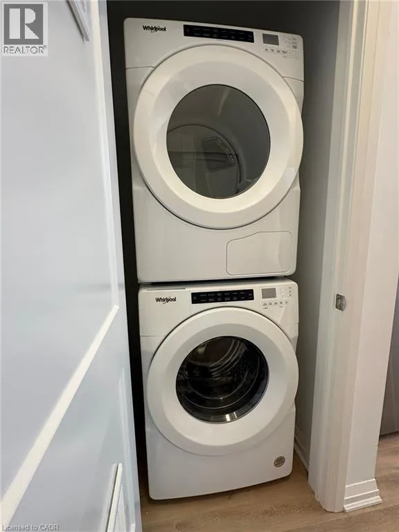 Weber Street North to Golden Eagle Road. Welcome to executive, urban lifestyle at Waterloo's The Jake condos. This ground floor unit offers one bedroom, one washroom and in-suite laundry and main level laundry. Upgraded with stainless steel appliances, vinyl flooring, and tastefully finished in neutral colours, this unit is spacious and bright with large windows and walk out to a balcony. Located centrally with easy access to all amenities, including banks, groceries, countless dining options, and shopping, just across the street. LRT and bus stops are literally steps away, and connect you conveniently throughout the city and to both Universities. Perfect for professionals, students or small family, with nearby schools, playgrounds, shopping malls, parks, trails, gyms, and recreational facilities. The Jake condos offer community mailboxes with large parcel receiving area, professionally designed landscaping with an irrigation system, common lobby lounge & semi-private lounge area, and a contemporary peloton studio/gym. (id:27476)