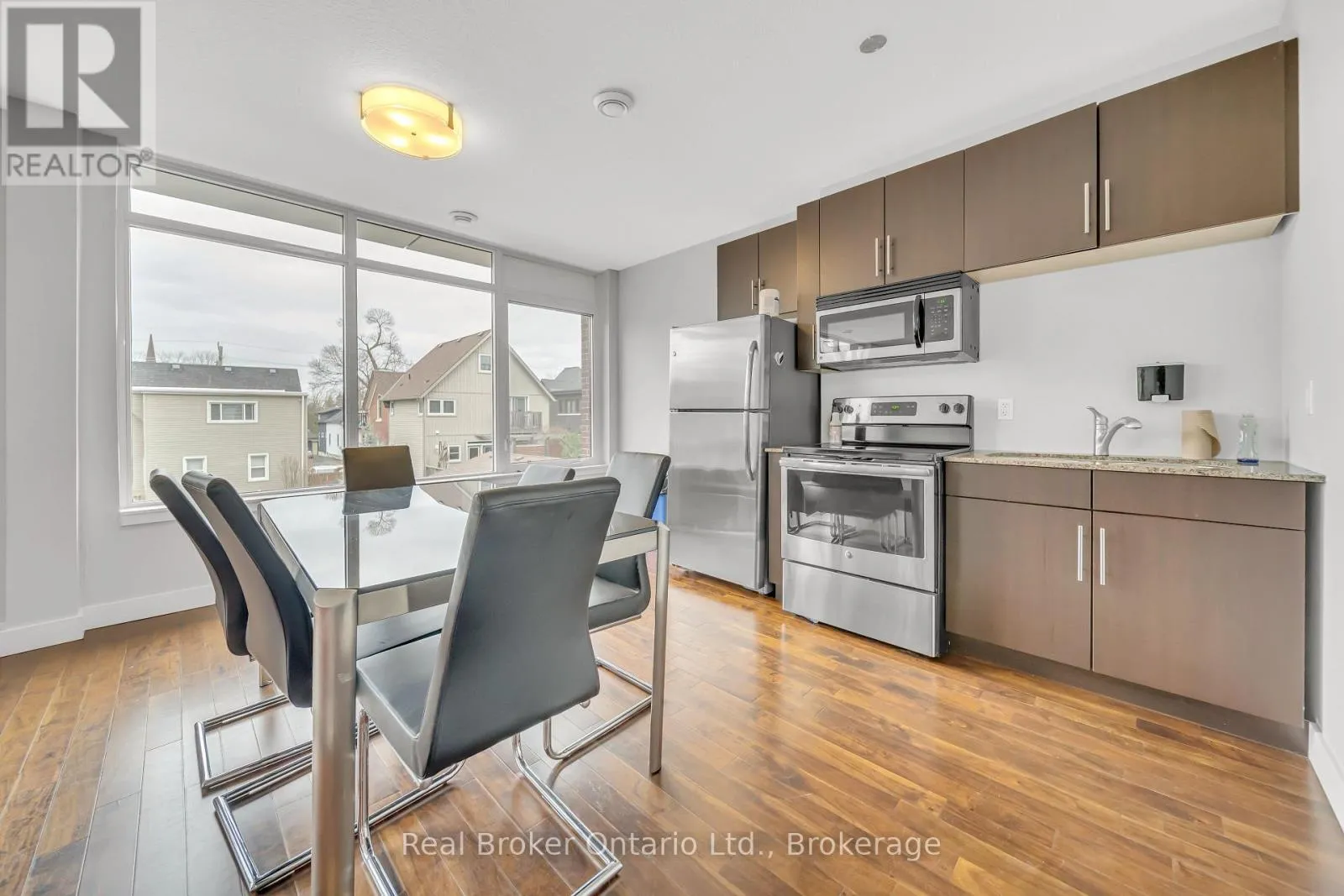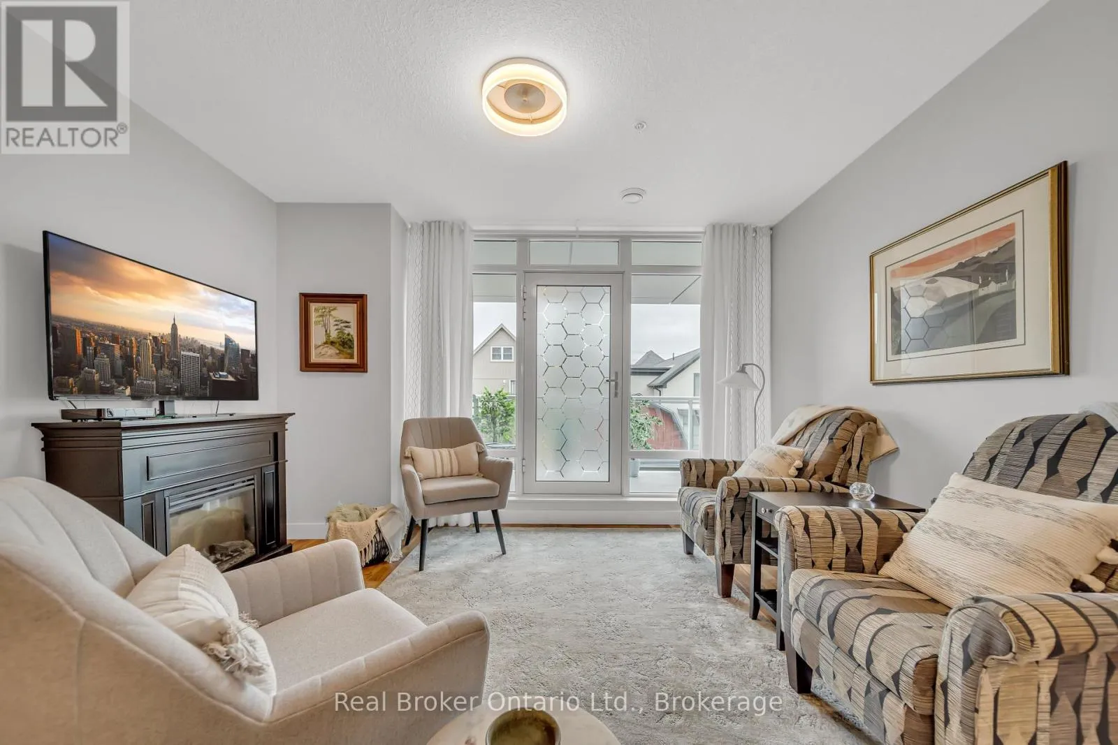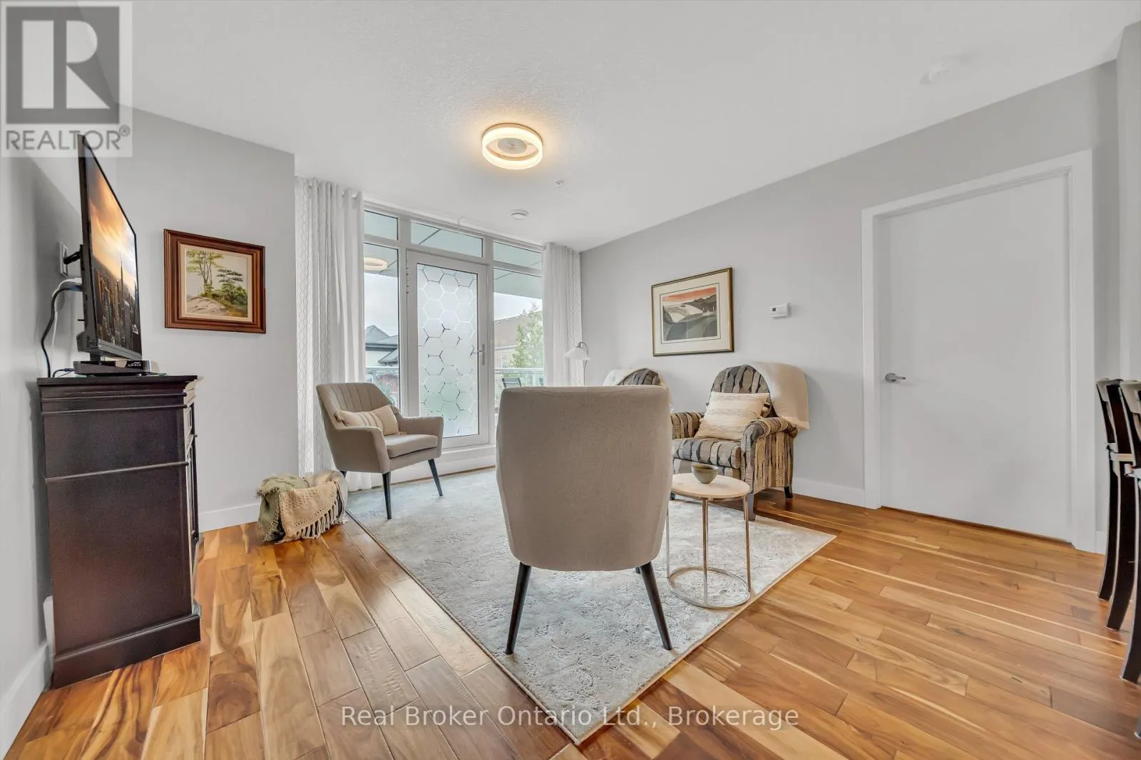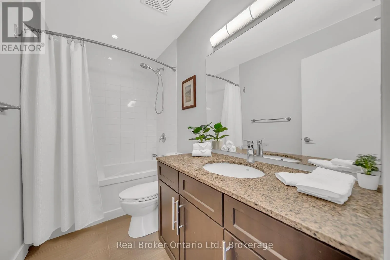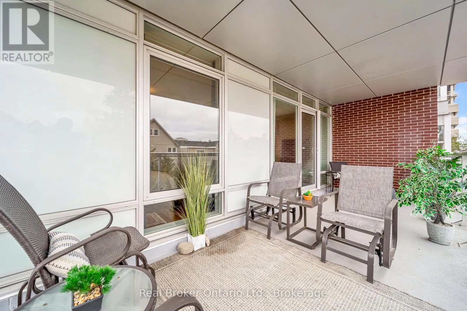 King St S & Allen St E Welcome to 214-188 King Street S, a stylish and meticulously updated 2-bedroom, 2-bathroom corner unit in the heart of Uptown Waterloo. Boasting a bright, open-concept layout, this stunning condo offers over 1,000 sq ft of modern living space with premium upgrades throughout. The expansive kitchen is a chef's dream, featuring tall 4-shelf cabinetry, granite countertops, a generous peninsula with pendant lighting, and high-end stainless steel appliances - including a Bosch dishwasher and Samsung stove and microwave. Large windows flood the living space with natural light and lead to a spacious private balcony with a charming brick end wall - perfect for planters and outdoor décor. Enjoy BBQs and outdoor entertaining right from your unit. The primary suite includes a walk-in closet and a beautifully upgraded ensuite, while the second bedroom and full bath provide ideal flexibility for guests or a home office. Additional upgrades include fresh paint, modern light fixtures, new faucets, curved shower rods, updated bathroom fans, and custom window coverings. Enjoy the convenience of a heated ground-level parking garage with one owned space and access to three EV charging stations. The storage locker, amenity room, and fitness centre are all located on the same floor for ultimate convenience. Set in a quiet, professionally managed building with a welcoming community atmosphere - featuring monthly socials and a mix of professionals and retirees. Located directly on the ION light rail line and just steps from Vincenzo's, The Bauer Kitchen, the Spurline Trail, and Iron Horse Trail - this is Uptown Waterloo living at its finest. (id:27476)