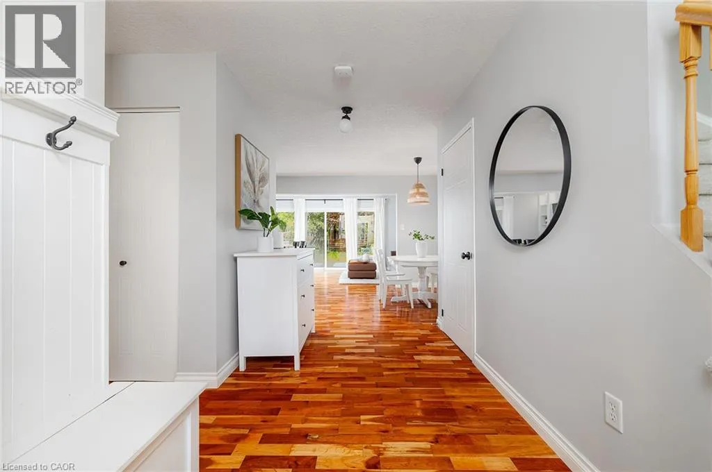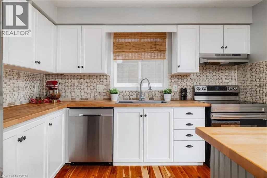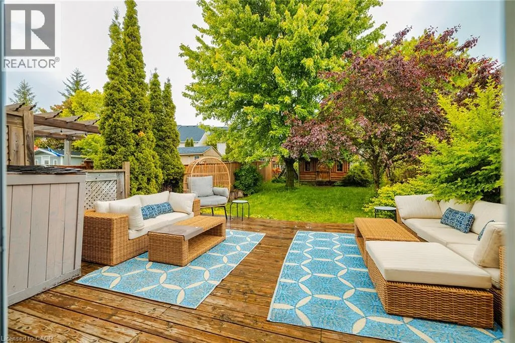 Erbsville Rd Right on Laurelwood Dr Left on Brookmill Cres A Rare Find in Laurelwood, Waterloo Nestled on a quiet crescent in one of Waterloos most sought-after family neighbourhoods, this beautifully maintained detached home in Laurelwood is a must-see. Located just steps from top-rated schools Laurel Heights Secondary, Laurelwood P.S., and St. Nicholas and minutes to both Wilfrid Laurier and the University of Waterloo, its ideal for families and professionals alike. Step inside to a warm, functional layout featuring custom built-in storage in the entry, a refreshed 2-piece bath, and garage access. The open-concept main floor impresses with brand-new stainless steel appliances (2022), new countertops, and a central island that flows into a sunlit dining area. The cozy living room boasts custom wall-to-wall bookcases, a fireplace, and large windows leading to a private backyard oasis. The outdoor space is truly special a deep, landscaped lot with mature trees and shrubs offers a peaceful retreat. Enjoy summer evenings on the spacious 20x16 wood deck, perfect for entertaining or unwinding. An 8x12 pine shed provides extra storage or workshop potential. Nature enthusiasts will love being close to Laurel Creek Conservation Area offering trails, swimming, campsites, and picnic spots year-round. Upstairs, the vaulted-ceiling primary bedroom features double closets, while second-floor laundry adds everyday convenience. The finished basement extends the living space with a generous family room and an updated 2-piece bath. With nearly 2,000 sq. ft. of finished living space, 2017 roof, insulated garage, and thoughtful updates throughout, this lovingly cared-for home checks every box. (id:27476)