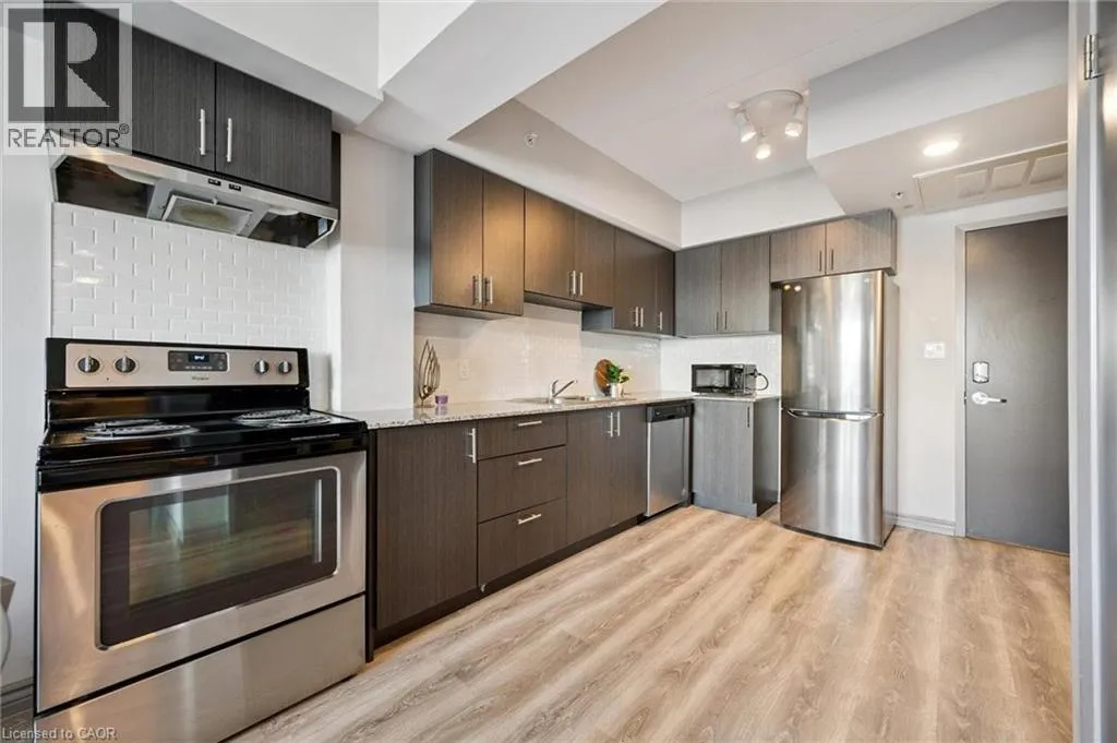 Balsam St Welcome to F515-275 Larch Street, a modern and luxurious 1-bedroom, 1-bathroom condo located in the heart of Waterloos university district! Whether you're a parent looking for a secure and stylish home for your student, young professionals or an investor seeking a smart addition to your portfolio, this unit delivers unbeatable value & location! Step inside to find a sleek, open-concept layout with contemporary finishes throughout. The kitchen features stainless steel appliances, subway tile backsplash and rich cabinetry offering ample prep space and a polished, modern feel. The spacious living area is both bright and inviting featuring a Juliette balcony that welcomes an abundance of natural light and fresh air, creating a warm, open atmosphere. The private bedroom is well-sized and the full 4-piece bathroom boasts a shower/tub combo, granite vanity and modern tile. In-suite laundry is included for maximum convenience. Monthly fees include water and internet-ideal for students or investors seeking a low-maintenance lifestyle. This is an unbeatable location for students or young professionals-just a short walk to Wilfrid Laurier University and within easy reach of the University of Waterloo, shops, restaurants, transit and all the essentials. Whether you're buying for your child or investing in Waterloo's thriving rental market, this unit is move-in or rent-out ready-a rare find in a highly sought-after building! (id:27476)