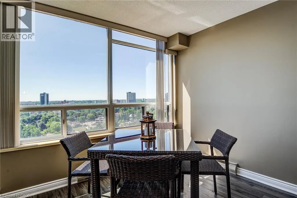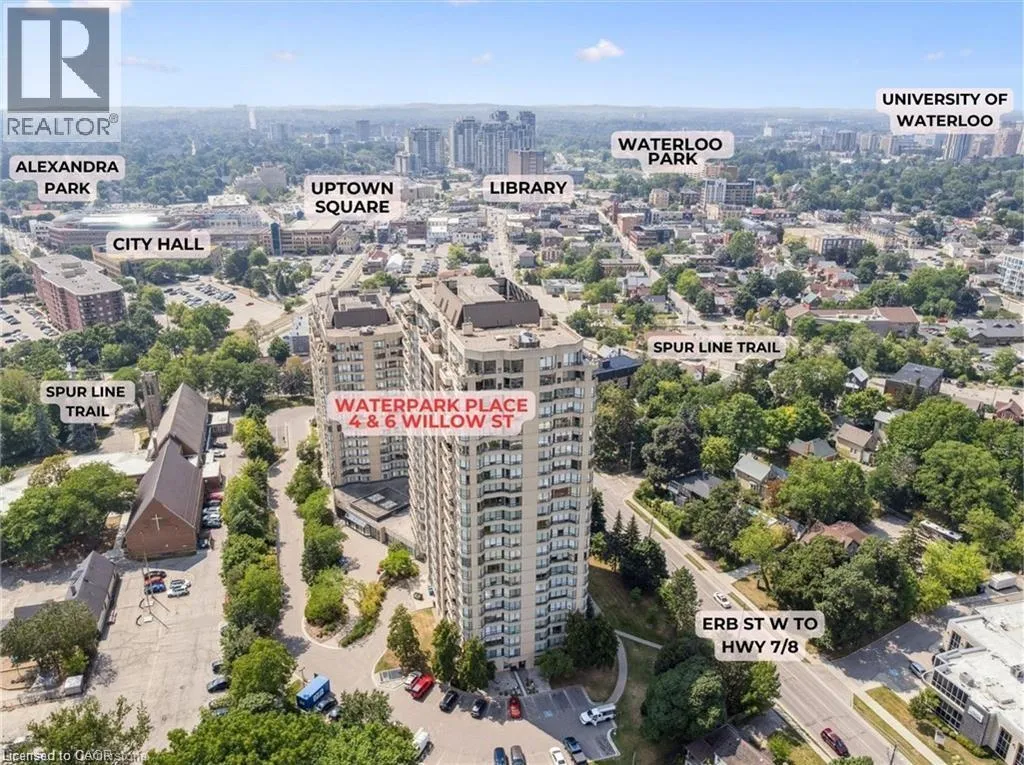 ERB TURN RIGHT ONTO WILLOW FIRST DRIVE ON LEFT STAY LEFT TO VISITOR PARKING Luxury living at Waterpark Place! In addition to this fully renovated, beautiful home, the well managed building has amazing amenities. Located in Uptown Waterloo which offers trendy shops, dining options and cafes. Walmart and large grocery stores are walking distance as well. Nearby Waterloo Park has a lake, picnic areas, splash pad, sports fields, playgrounds and more. The open concept dining and living spaces are great for entertaining. Amazing views from the wall of windows in the sunroom. This space provides lots of options. Updates galore in this home! The updated kitchen features granite counters, tile flooring, white cabinetry and stainless steel appliances. There are two spacious bedrooms including a primary bedroom with walk in closet and an upgraded ensuite. Both bathrooms have updated vanities, walk in tile showers, new counters and flooring. New flooring runs throughout the space. The building is well run and has large indoor pool, sauna, exercise, party and games rooms, library, outdoor patio area with gazebo, BBQ and lounge areas. Lots of visitor parking. Compete with two underground parking spots and storage locker. Contact me for your private viewing! (id:27476)
