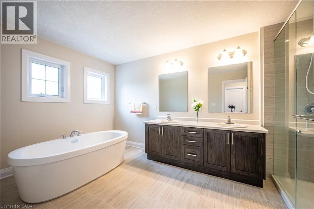 sundew dr & chokecherry cres Welcome to 286 Chokecherry Cr, Waterloo â a beautifully upgraded 4-bedroom, in Vista Hills, boasting nearly 2,450 sq ft. Main floor features 9-ft ceilings, enginneer hardwood floors in the great room, oversized tiles, pot lights throughout, Granite countertops with island and breakfast bar in the chefâs kitchen, upgraded cabinetry, backsplash, stainless steel appliances, and a convenient laundry/mudroom. Upper level offers all 4 bedrooms with ensuite access, including a luxurious primary with walk-in closet, soaker tub, double sinks, and party-sized shower. Lower-level walkout basement with double doors to the backyard, three large windows, and rough-ins for laundry/bathroom, ideal for an in-law suite or future rec room. Located in a quiet, family-friendly community near the cityâs largest forest park, multiple neighborhood parks, and a dog park, just steps to the U of W bus line, Costco, Boardwalk Plaza, shops, restaurants, and top-rated schools Vista Hills P.S. and Laurel Heights S.S. Better than new â donât miss this executive home! (id:27476)
