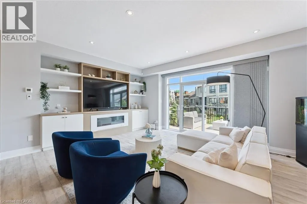University to Millennium to Crossgate to Grey Silo Discover executive living in the heart of prestigious Carriage Crossing at Grey Silo Gate â a quiet, upscale condo community steps from nature, minutes from urban amenities. This immaculately maintained 3-bedroom, 4-bathroom multi-level townhome offers nearly 2,500 sq ft of finished living space, seamlessly combining style, comfort, and functionality. Step inside to a bright, open-concept main floor featuring soaring ceilings, updated designer lighting, fresh paint, and quality laminate flooring. The heart of the home is the gourmet kitchen, designed for both beauty and practicality â with a massive Caesarstone island and breakfast bar, tall upgraded cabinetry with under-cabinet lighting and valance, a glass backsplash, a walk-in pantry with pull-out storage, and a custom-framed fridge nook ready for a 36 appliance. The living area is perfect for entertaining or unwinding, featuring a built-in wall unit with shelving, cabinets, and an electric fireplace. Step through sliding glass doors (with transom windows) to your maintenance-free composite deck with a gas BBQ line and privacy gate. Upstairs, the luxurious primary suite boasts a walk-in closet with custom organizers and a stunning ensuite with glass shower and double sinks. The upper loft provides a stylish and functional space for a home office or reading nook, while two additional spacious bedrooms and a well-appointed family bath complete this level. The laundry room is conveniently located on the main floor and features extra cabinetry. The finished basement adds valuable living space with look-out windows, luxury vinyl flooring, and a large recreation room. Enjoy low-maintenance living with no grass to cut and no snow to shovel. All appliances are includedâjust move in and enjoy. Situated near RIM Park, Grey Silo Golf Course, the Grand River, and scenic trails, this home offers the perfect blend of modern urban living and outdoor adventure. This is a rare opportunity to own a turnkey luxury townhome! (id:27476)