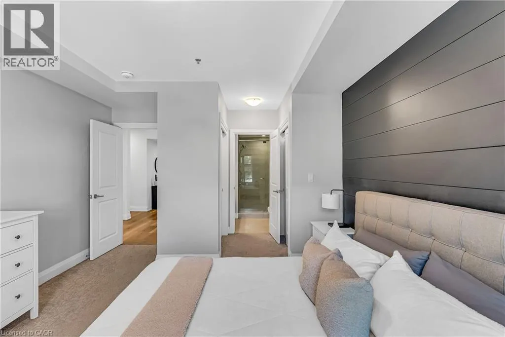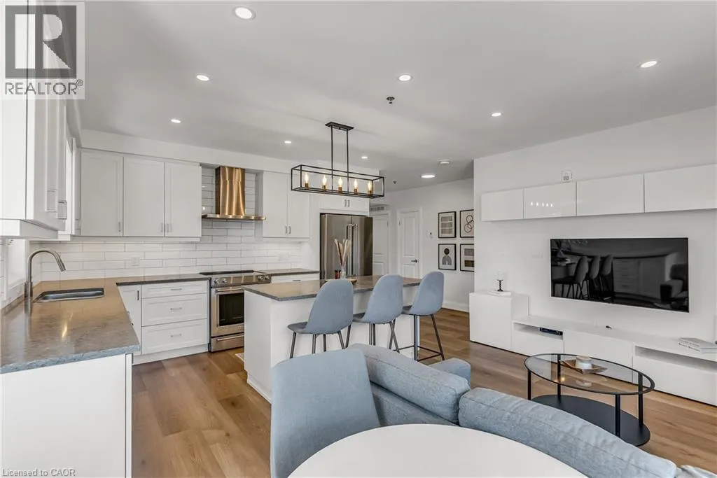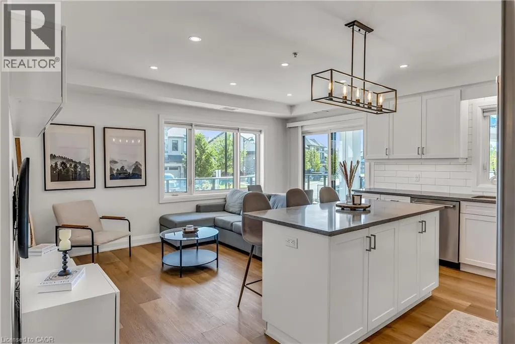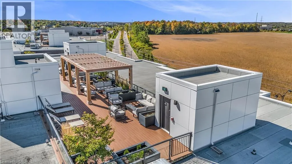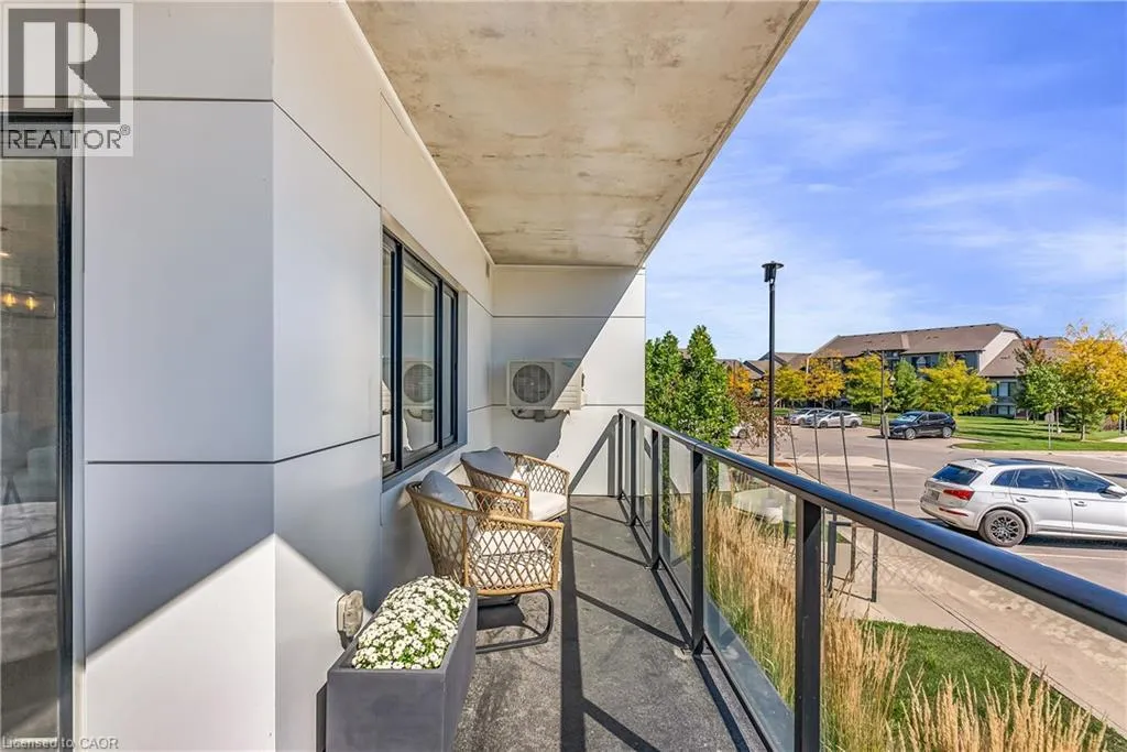 University to Millenium to Crossgate Blvd to Grey Silo Experience upscale living in this spacious end unit executive condo, ideally situated in Waterlooâs sought after Carriage Crossing community. This beautifully designed home offers 2 bedrooms and 2 full bathrooms, including a primary suite with a double closet and private ensuite. With 2 dedicated outdoor parking spaces, this home combines style with convenience. The open concept kitchen is a true highlight, featuring a large island, quartz countertops, and stainless steel appliances, perfect for both cooking and entertaining. Just off the kitchen, step onto an enormous balcony with three distinct seating areas, an entertainerâs delight for gatherings or quiet evenings outdoors. Additional upgrades include modern bathrooms with quartz vanities and comfort-height toilets, an in-suite washer and dryer, a high efficiency water heater, water softener, and an HRV system for fresh air circulation year-round. Just steps from Grey Silo Golf Course, scenic walking trails, RIM Park Community Centre, and the RIM Technology Park, it offers the perfect balance of luxury and lifestyle. (id:27476)