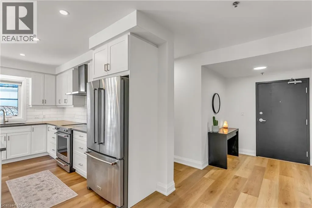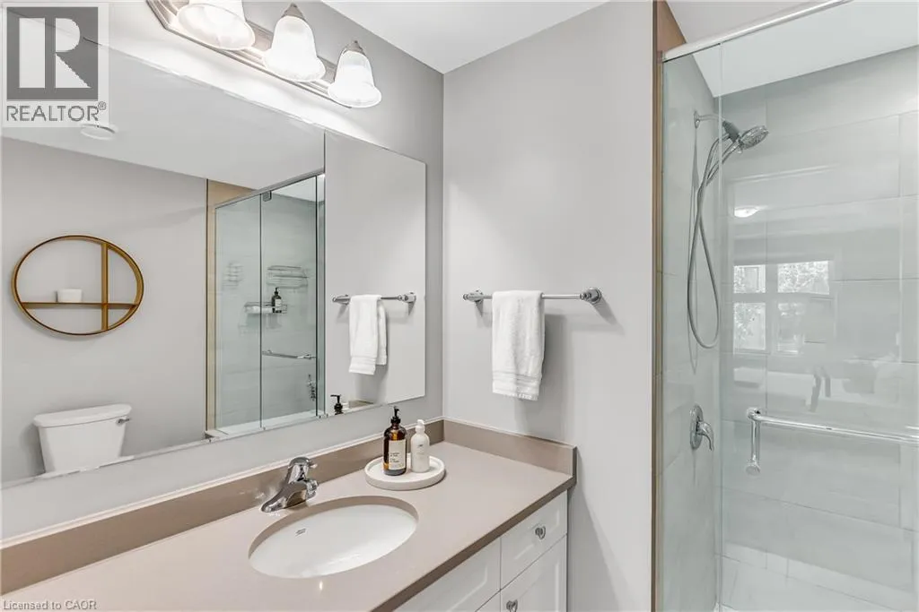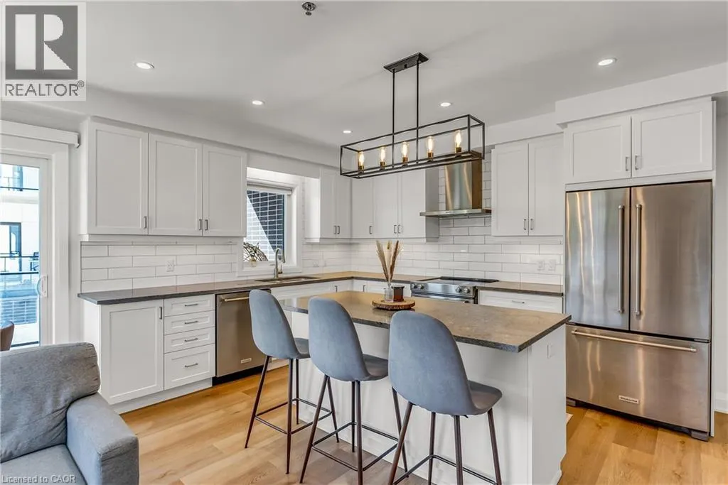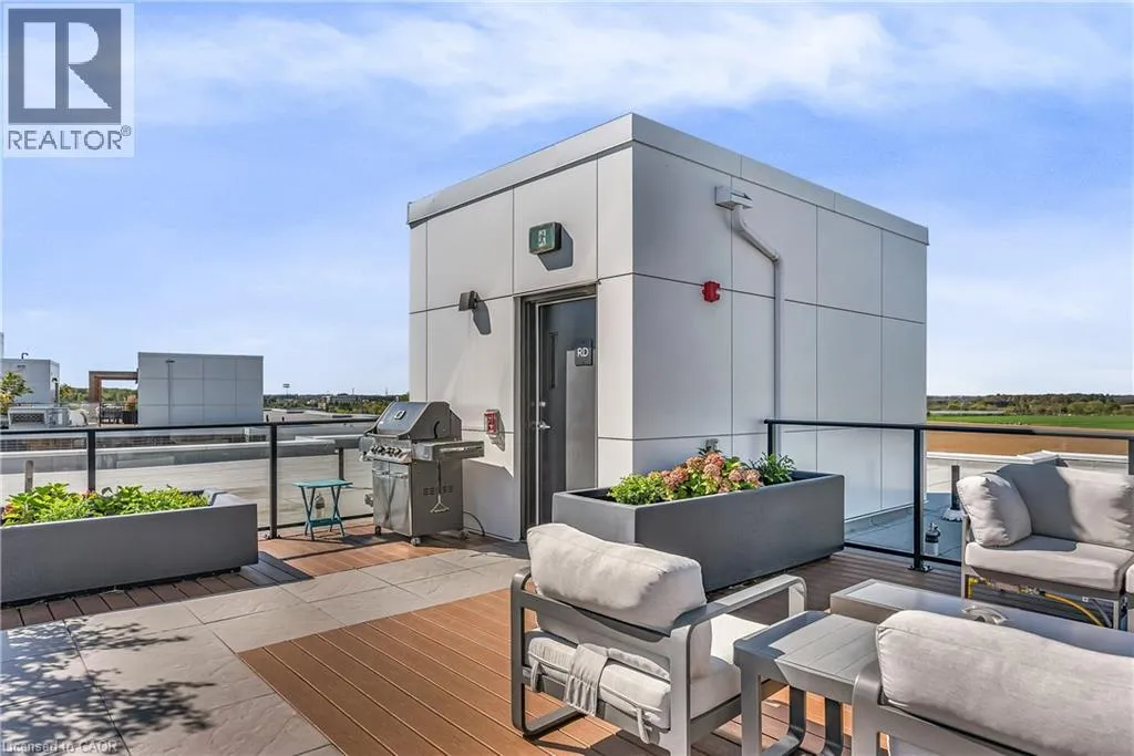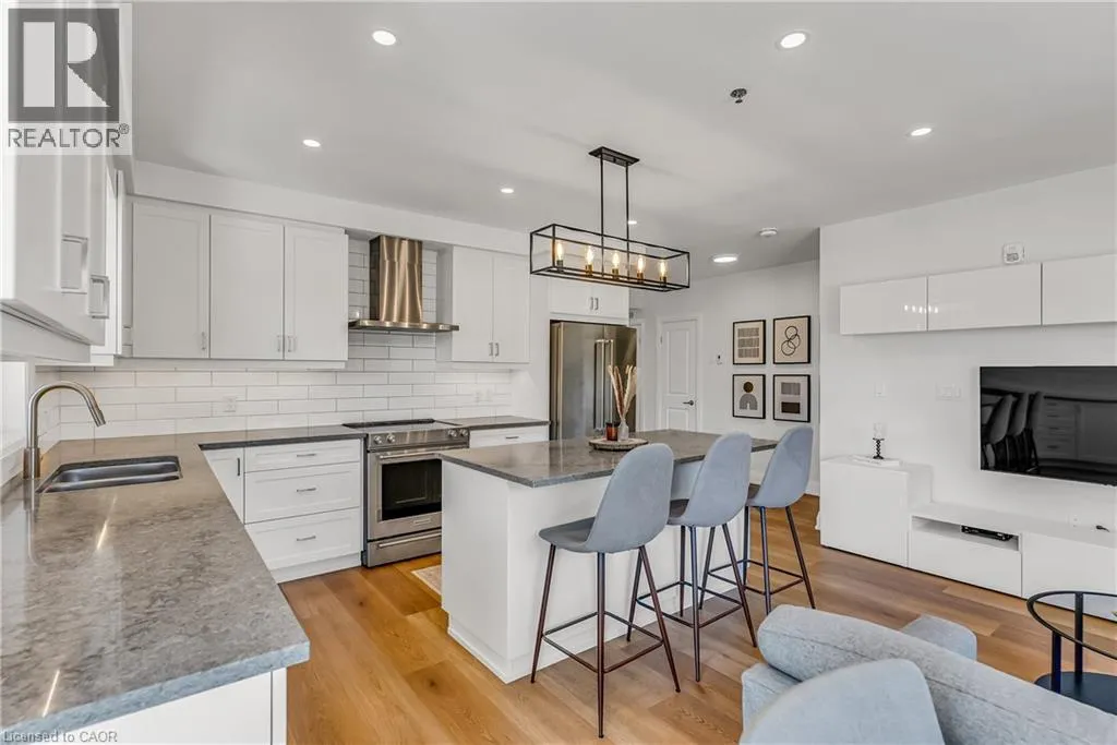 University to Millenium to Crossgate Blvd to Grey Silo Experience upscale living in this spacious end unit executive condo, ideally situated in Waterlooâs sought after Carriage Crossing community. This beautifully designed home offers 2 bedrooms and 2 full bathrooms, including a primary suite with a double closet and private ensuite. With 2 dedicated outdoor parking spaces, this home combines style with convenience. The open concept kitchen is a true highlight, featuring a large island, quartz countertops, and stainless steel appliances, perfect for both cooking and entertaining. Just off the kitchen, step onto an enormous balcony with three distinct seating areas, an entertainerâs delight for gatherings or quiet evenings outdoors. Additional upgrades include modern bathrooms with quartz vanities and comfort-height toilets, an in-suite washer and dryer, a high efficiency water heater, water softener, and an HRV system for fresh air circulation year-round. Just steps from Grey Silo Golf Course, scenic walking trails, RIM Park Community Centre, and the RIM Technology Park, it offers the perfect balance of luxury and lifestyle. (id:27476)