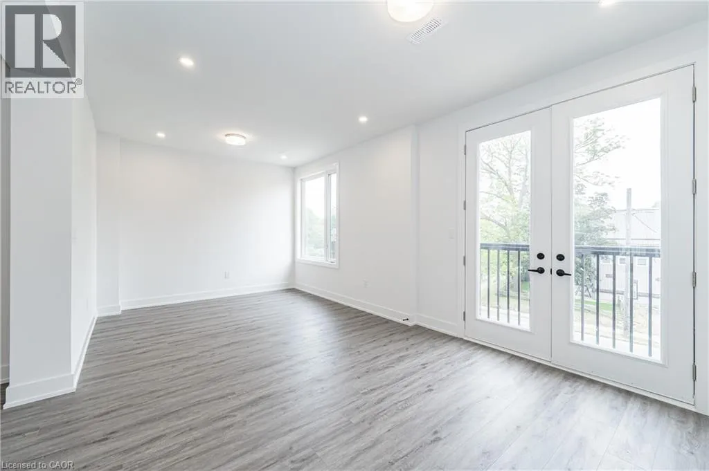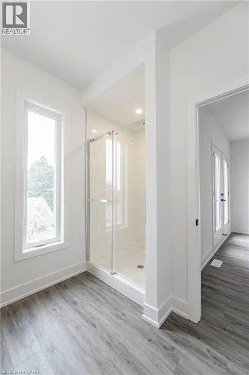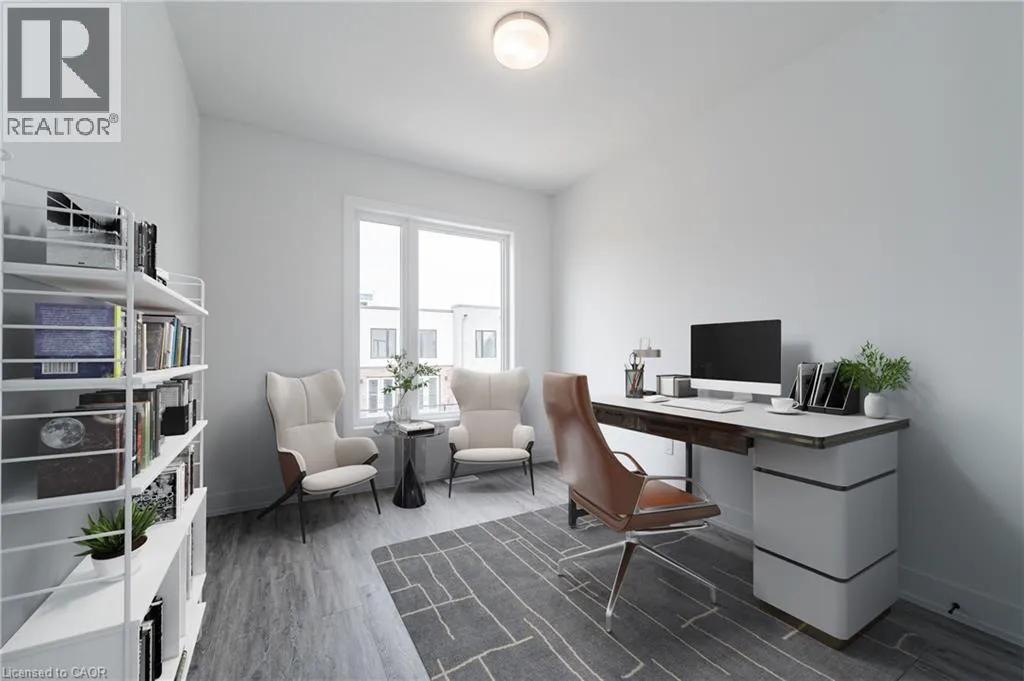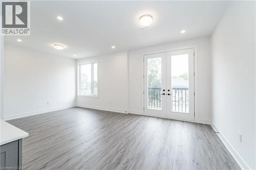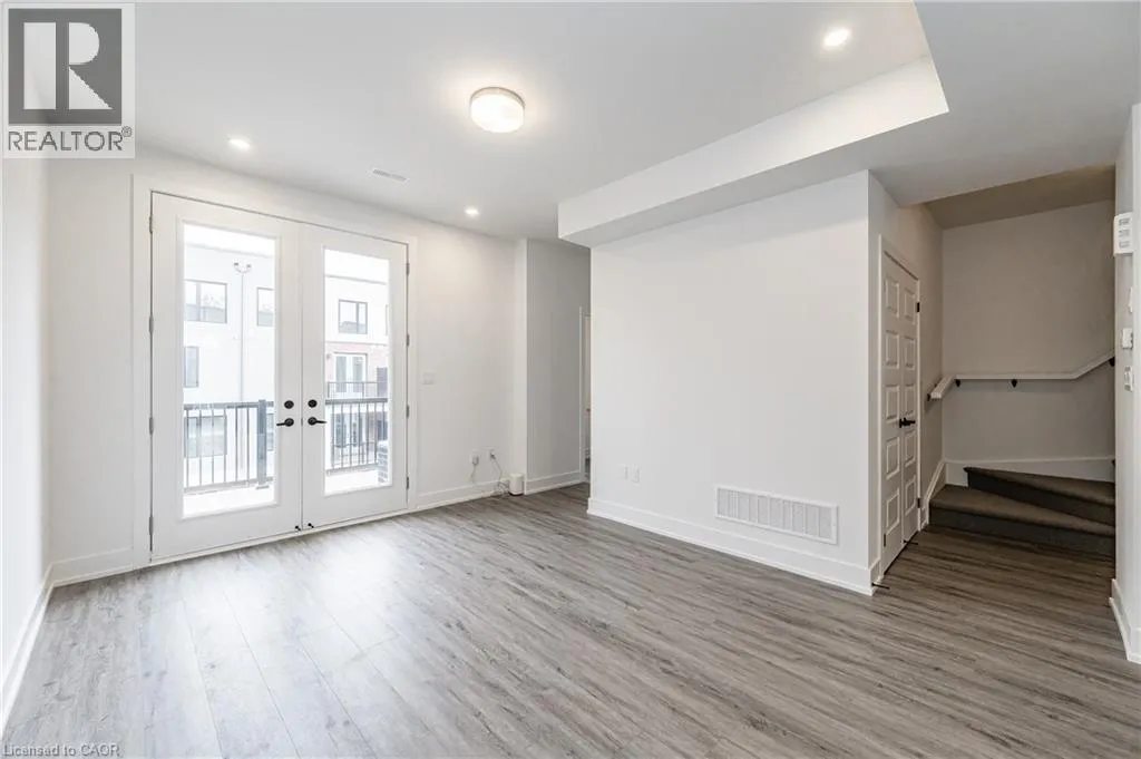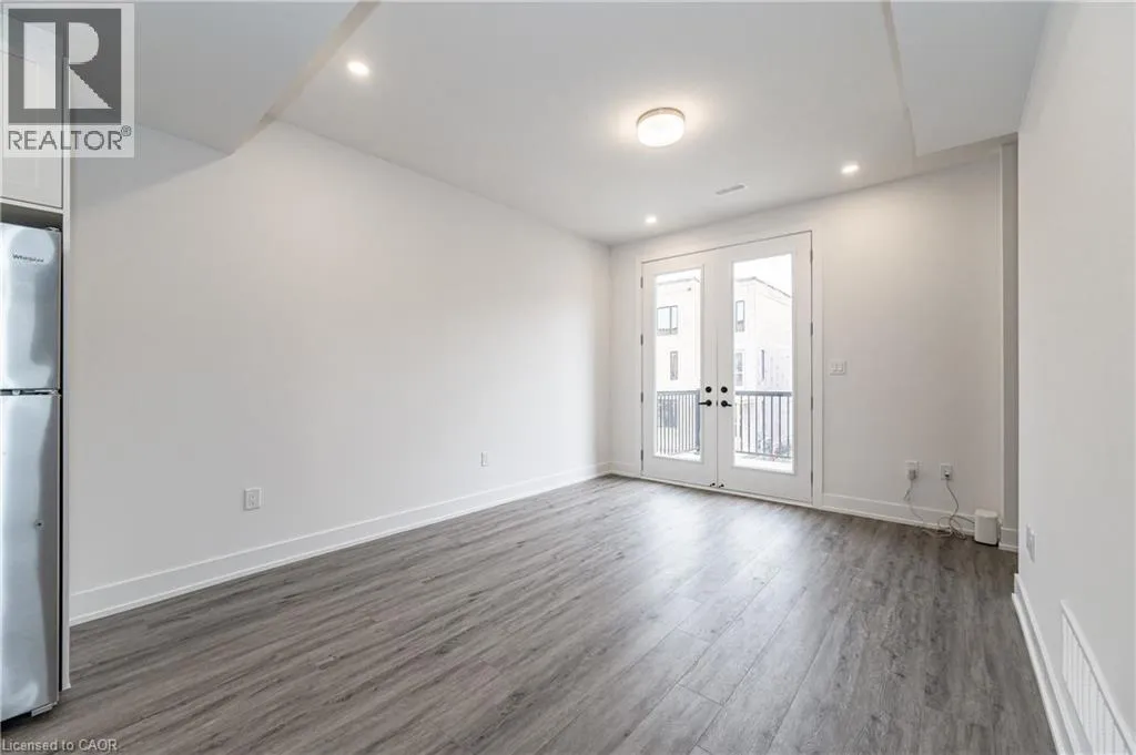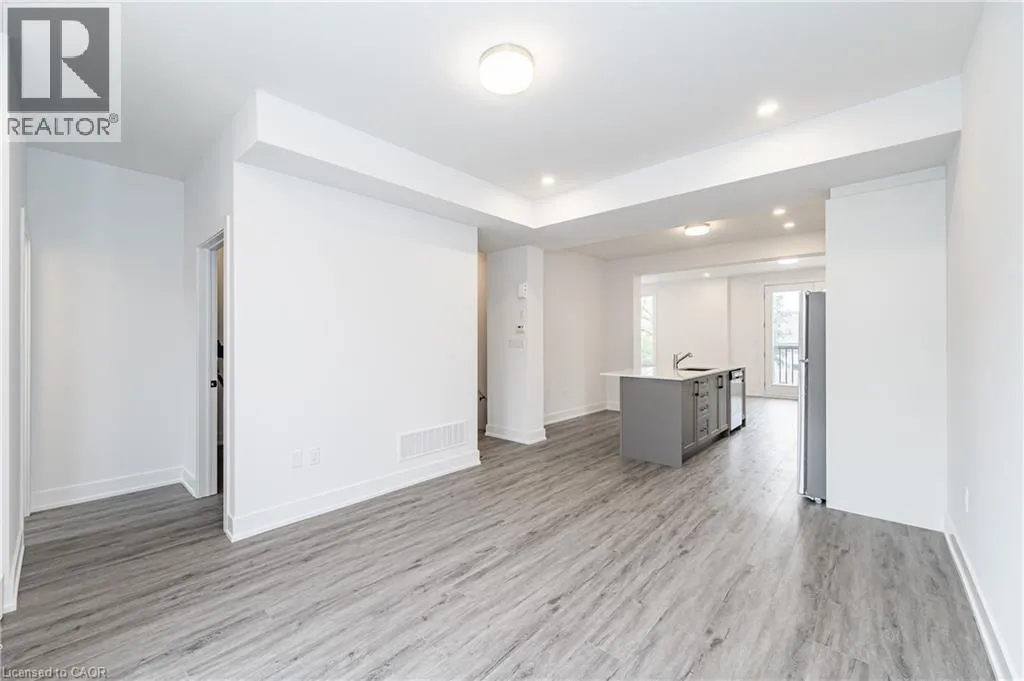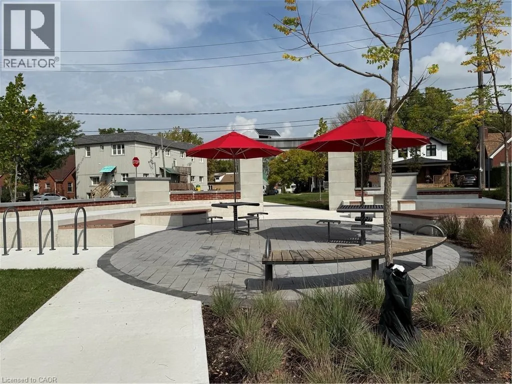 Between Moore Ave S and Lucan Avenue Your very own Urban Oasis living at Spur Line Common Condos. This 3 bedroom Executive modern townhome with garage is located in Midtown KW steps away from the Spur Line Trail, ION light rail and transit bus stops. Conveniently located in the heart of Waterloo allowing residents easy access to plenty of lifestyle amenities-walking distance to shopping, restaurants and many entertainment options. Over 1800 sq ft of bright, spacious living with over $22k in builder upgrades-cabinetry, flooring & lighting. The main floor features a large living area, dining room with sliders to private terrace, a chef inspired kitchen all with 9'ceilings. The white kitchen has quartz counters, S/S appliances and is a great space to entertain with a large island & breakfast bar! Plenty of room for a work from home office space. Main floor laundry with stackable washer/dryer and a 2 pc bathroom. The upper floor has 3 generously sized bedrooms. The primary bedroom is complete with a walk in closet, ensuite bathroom and a second private terrace. Parking for 2 vehicles- including the private garage with garage door opener and direct access. (id:27476)