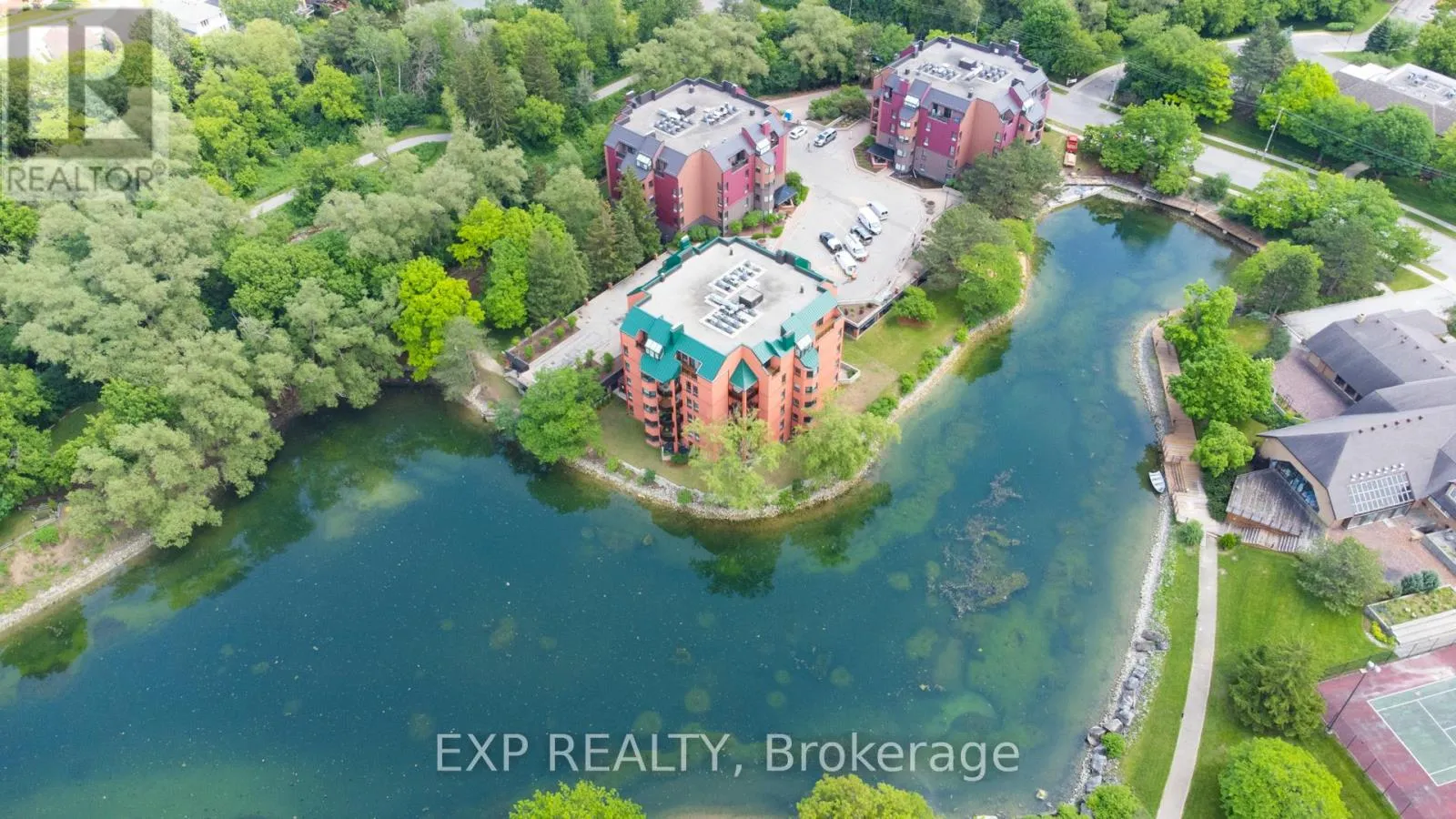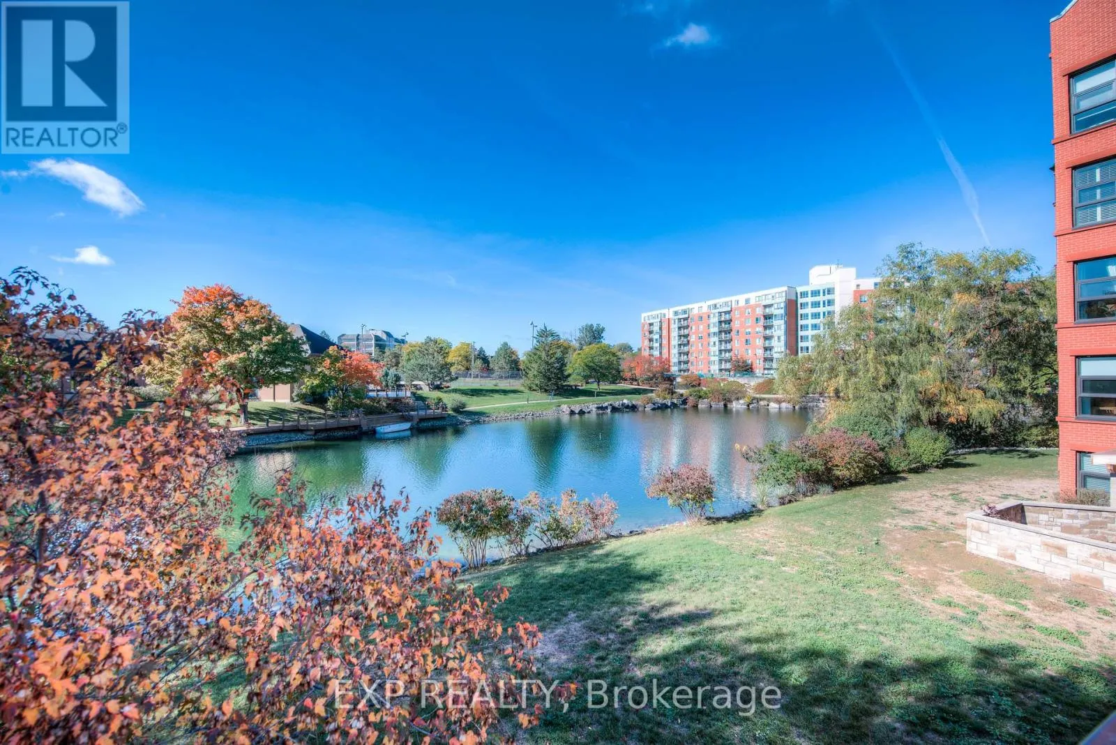 Cross Streets: King St N and Weber St N. ** Directions: KING STREET NORTH TO BLUE SPRINGS DRIVE. This beautifully maintained 1,760 sq ft condo at 54 Blue Springs Drive, Unit 41 offers a rare opportunity to own in one of Waterloos most peaceful and picturesque communities. Designed for comfort and flow, the open-plan layout boasts multiple living and dining spaces, perfect for entertaining or quiet evenings by the fireplace. Oversized windows flood the space with natural light and showcase stunning views of the surrounding pond and forested trails. The thoughtfully designed galley kitchen features white cabinetry, granite countertops, and a stylish tile backsplash. Step out to the private balcony and enjoy coffee or cocktails while surrounded by birdsong and gentle breezes. With two spacious bedrooms, two bathrooms, and in-suite laundry, this home offers the ideal balance of style and practicality. The well-managed building includes underground parking, a storage unit, guest parking, BBQ area, and private trails, all on a beautifully landscaped property with water features. This is the ideal lifestyle for downsizers, professionals, or anyone seeking low-maintenance, nature-connected living without compromise. (id:27476)