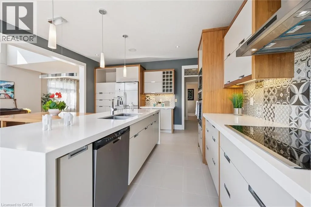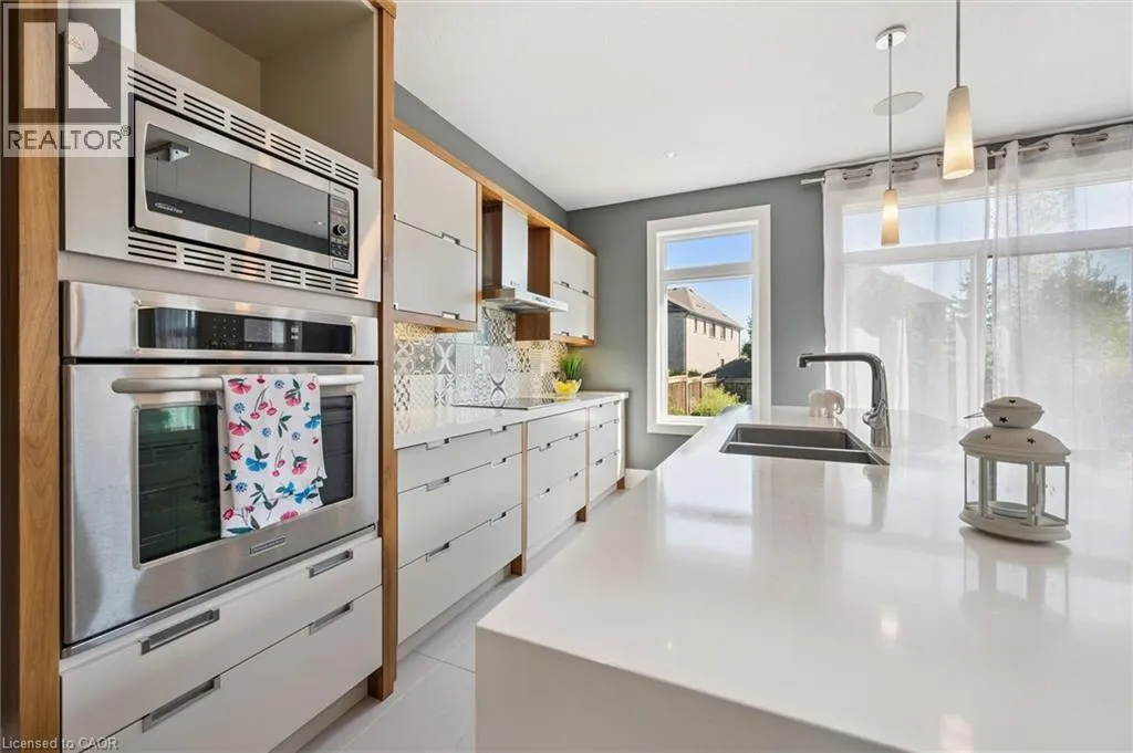 Millennium Blvd to Crossgate Blvd to Grey Silo Rd OFFER ANYTIME. Welcome to this Luxury custom built home in prestigious Carriage Crossing. The Previous Model Home for Heisler Homes. The bright main floor features spectacular open to above great room with soaring ceiling and gougeres mantelpiece gas fireplace, a beautiful chef's kitchen including the massive island, 9' ceiling for rest of the area, custom made cabinetry at the Foyer and Dining room. The sleek design continues on the Second floor with 3 bedrooms and 2 bathrooms. Master suite with tray ceiling, large walk in closet with custom build shelves, beautiful fully upgraded en-suite bathroom. Basement is professionally completed with huge open concept layout for many uses such as a home theater, a home gym, a rec-room that easily fits a snooker table, and a 4pc bathroom plus plenty of storage space, or just easily add a 4th even a fifth bedroom. The fully fenced backyard featuring a nicely sized patio. This property offers decent lot size of 53' frontage x 132.76' depth and is right next to the Millstream Park with great views. Carriage Crossing is one of Waterloo's most desirable neighbourhoods with the famous Rim Park Sportsplex being adjacent with various indoor or outdoor sports facility such as skating or hockey rinks, soccer fields or volleyball courts, The breathtaking Grey Silo's 18-hole championship golf course or the Eastside Public Library, also the great natural environment with paved trails along the Grand River, whether you are a hiking, biking, jogging or photography lover, be prepared to enjoy your life here and meet wildlife such as geese or deer etc. Within walking distance to Blackberry tech sector and bus route, a short drive to both Universities, Conestoga Mall, St. Jacobs Farmers Market and Hwy 85. (id:27476)
