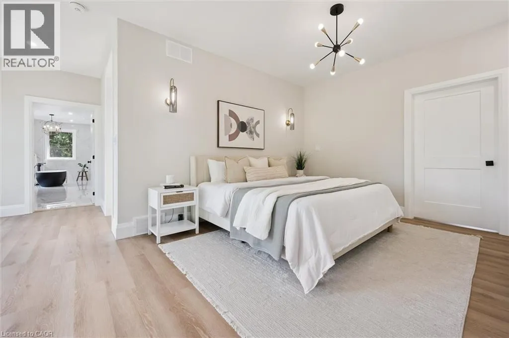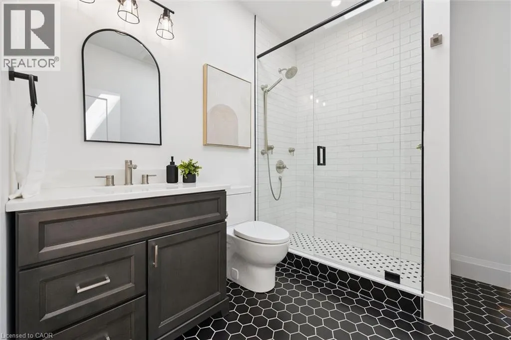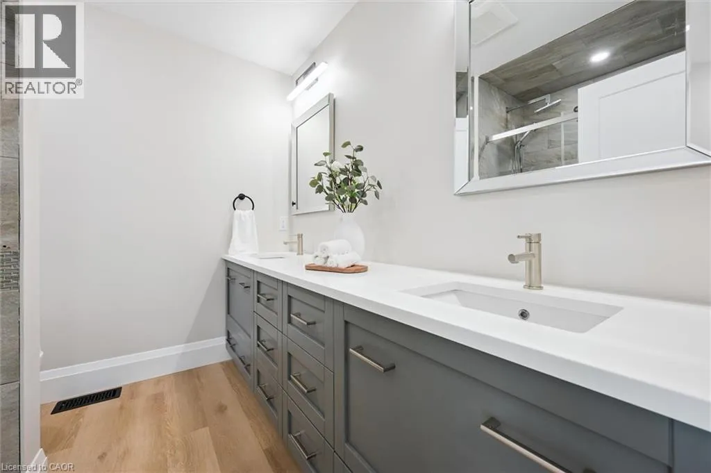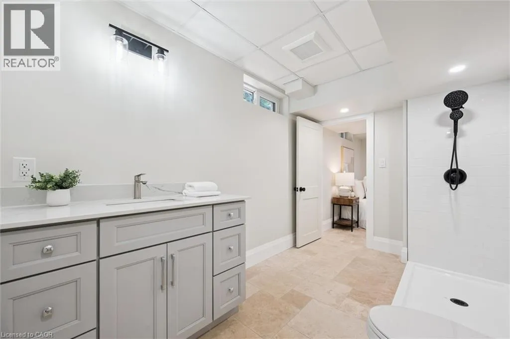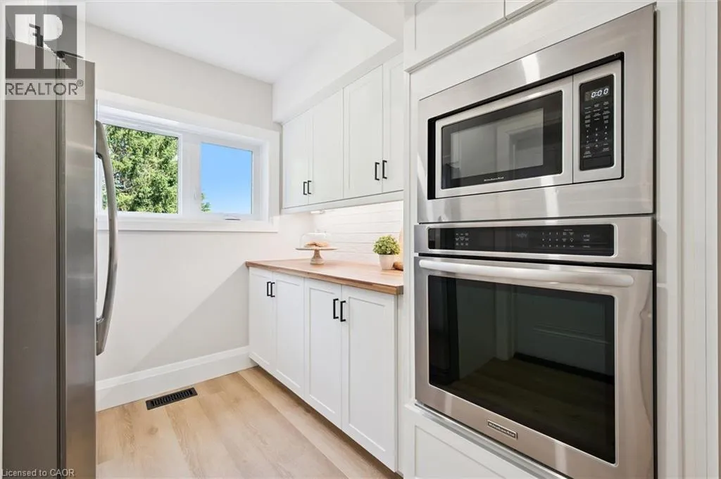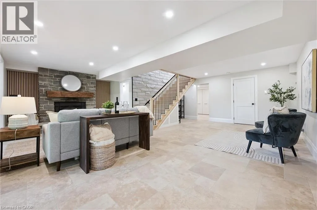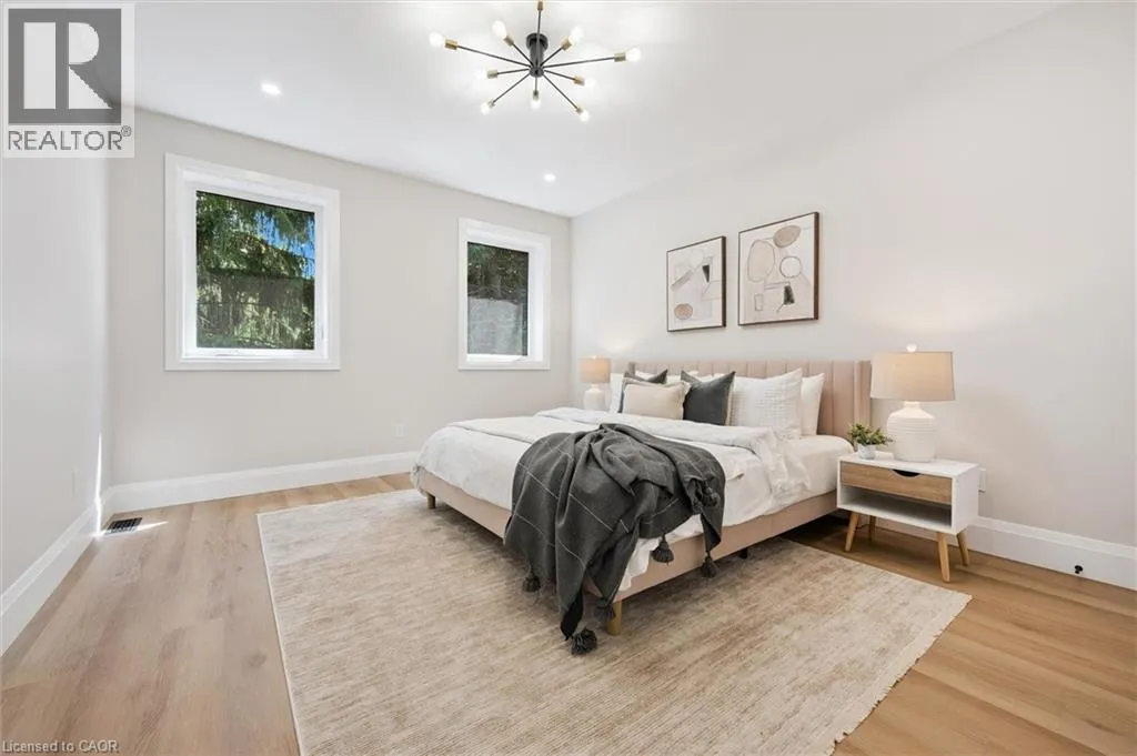 Wideman Rd to Wilmot Line or Erb St. W/ Erb's Rd to Wilmot Line. Private Oasis in Waterloo. This one-of-a-kind, fully renovated home offers a cottage-like retreat just minutes from city amenities. Set on 3.7 acres surrounded by trees, a pond, and nature, it combines luxury finishes with smart home technology to create a truly signature property. Inside, the open-concept living room features soaring vaulted ceilings, a propane fireplace, and expansive windows that flood the space with natural light. The chefâs kitchen boasts quartz counters, a spacious island, high-end appliances, pot filler, custom backsplash, and an adjoining pantry with built-in microwave, additional oven, fridge, wine rack, and storage. Perfect for entertaining, the main floor also includes a stylish dining area, built-in bar, walkout to a deck with power awning, and a 4-pc bath. Upstairs, the primary suite is a private sanctuary with breathtaking views, a large walk-in closet, and a spa-like 5-pc ensuite featuring a soaker tub, glass shower, and double sinks. Two additional bedrooms, a 3-pc bath, and convenient upper-level laundry complete this floor. The finished lower level includes heated tile floors, a rec room with cozy wood fireplace and walkout, rough-in for a wet bar, an additional bedroom, office with separate entrance, and a 3-pc bath.The mechanical features include updated electrical & plumbing, Lennox heat pump with backup propane furnace, R/O system and new carbon filter for drilled well, new septic system, solar panels on flat roof generate electricity. Smart home features throughout. Outside, enjoy a private front yard, secondary driveway which allows extra parking, a large patio overlooking the pond with sandy beach and floating dock, plus two charming bunkiesâone with a wood stove. All of this within minutes to shopping, schools, markets, and trails. A+++ (id:27476)