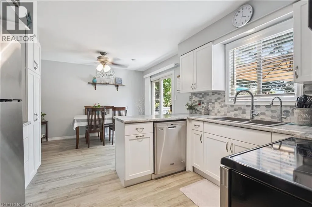 Northlake Dr to Sunpoint Rarely do homes come available on this quiet and highly sought-after crescent in Lakeshore North. With a strong sense of community, and unbeatable location, 174 Sunpoint Crescent is the perfect spot to call home. This renovated, 3-bedroom, 1.5-bath home is designed for both comfort and style. The main floor offers a bright living area with modern finishes, a beautifully updated kitchen, and a dedicated officeâperfect for todayâs work-from-home lifestyle or a quiet study space. Upstairs, youâll find three spacious, carpet-free bedrooms, each with large windows and generous closet space. Whether itâs a primary retreat, kidsâ rooms, or a guest space, this upper level provides both privacy and functionality for the whole family. The finished basement adds even more flexibility, ideal for a rec room, home gym, or playroom. Step outside and enjoy a backyard designed for connection. A generous deck sets the stage for barbecues and family gatherings, while the yard offers plenty of room for play, gardening, or simply unwinding. Two storage sheds keep everything organized, making outdoor living both easy and enjoyable. The location is second to noneâjust minutes from Laurel Creek Conservation Area, where you can swim, kayak, hike, bike, and even camp. Families will especially appreciate being within walking distance to excellent schools and nearby parks, making daily routines simple and convenient. Plus, the world-famous St. Jacobs Farmersâ Market is only 5 minutes away, offering farm-fresh produce, artisanal foods, and handcrafted goods year round. All this, along with close proximity to shopping, restaurants, and Uptown Waterloo, while still being tucked away on a peaceful, low-traffic street. This is more than just a homeâitâs where comfort, convenience, and community come together. Book your showing today! (id:27476)