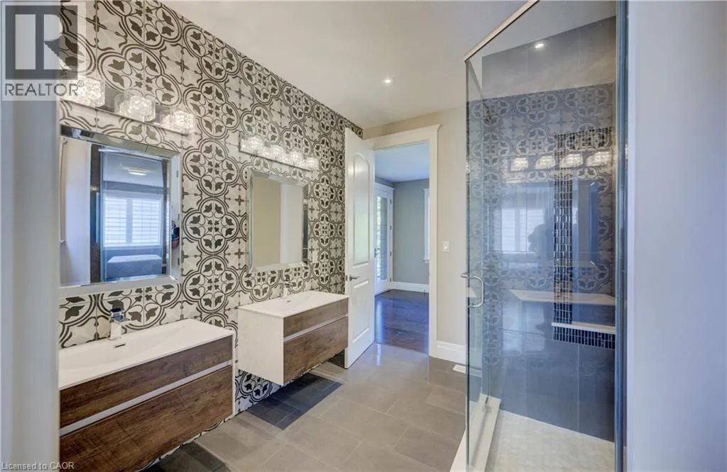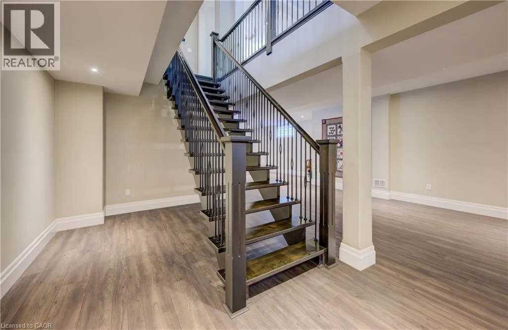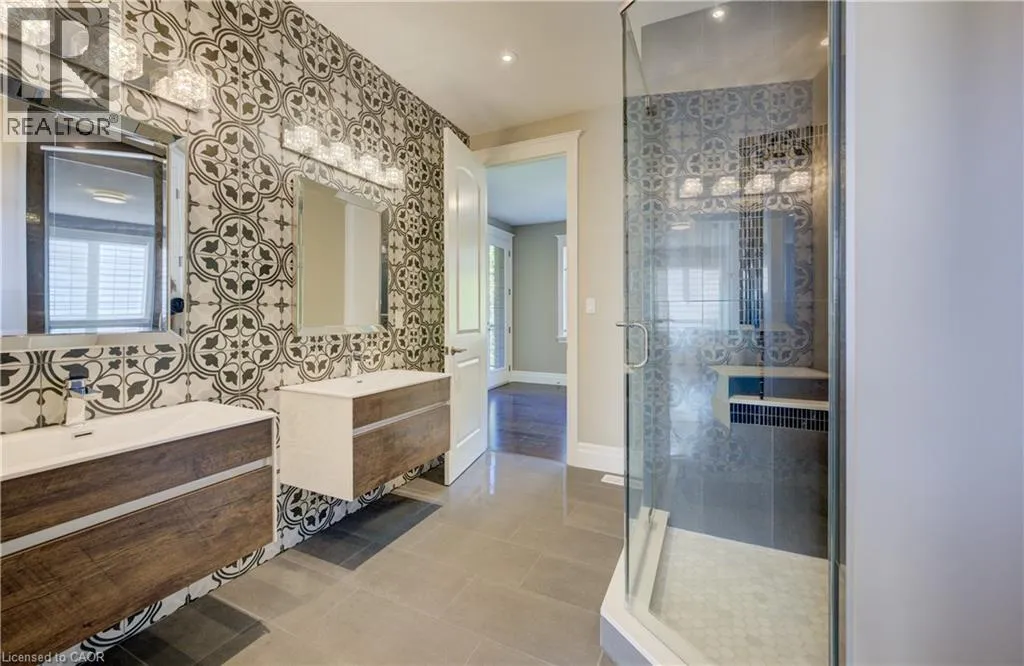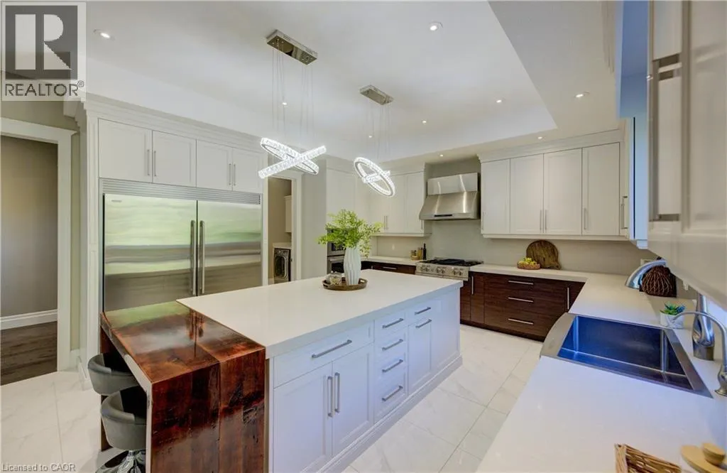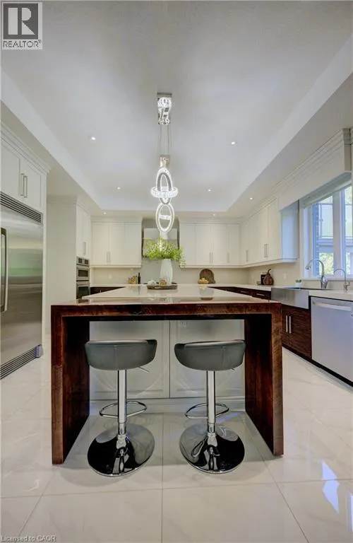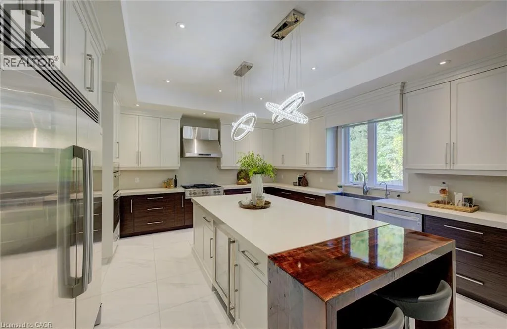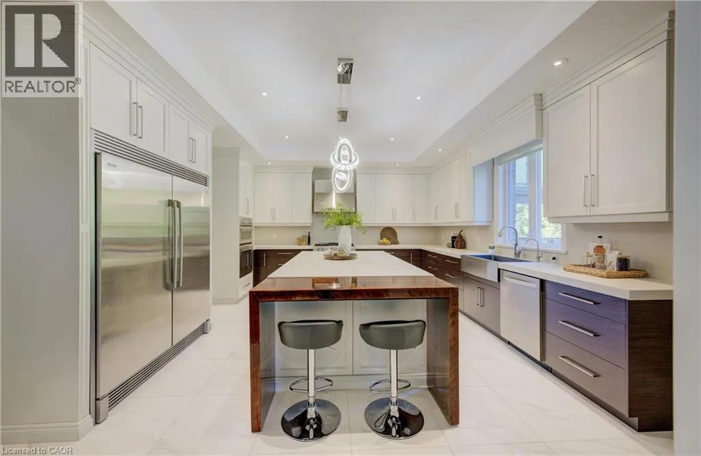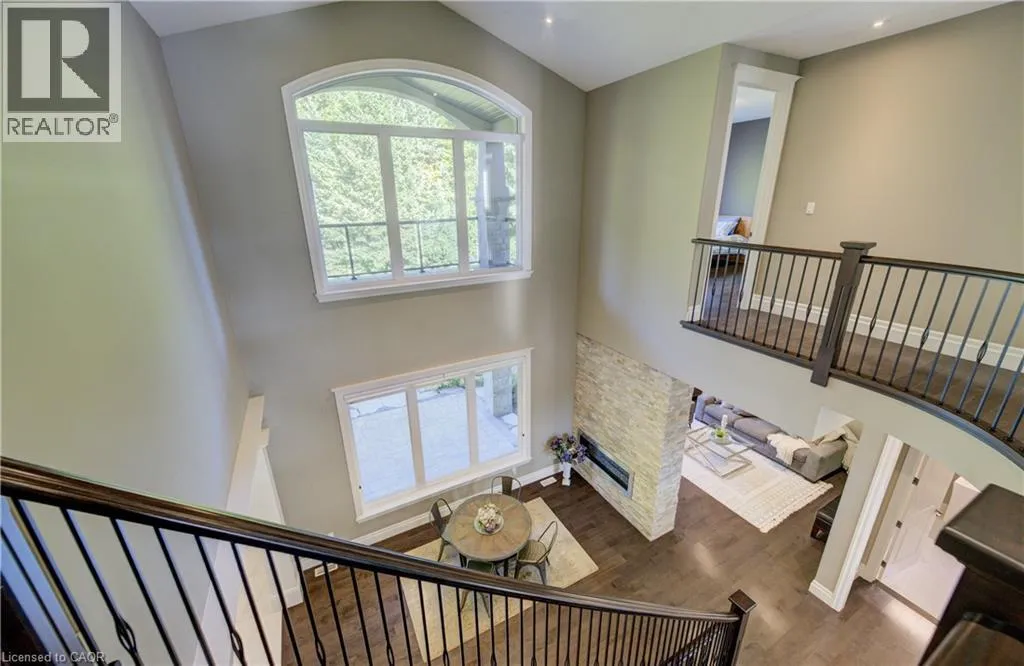 White Cedar Ave Built by Valleyrauss with meticulous craftsmanship and all-brick construction, this 4+ bedroom Laurelwood residence offers over 4,000 sq. ft. of refined living designed for the modern family. A grand cherry staircase makes a striking first impression, while soaring 11-foot ceilings and coffered details in the living and dining rooms establish an atmosphere of elegance. The main floor is both functional and spectacular, anchored by a floor-to-ceiling stone gas fireplace and filled with natural light. The chefâs kitchen is a showpiece, boasting a large side-by-side fridge, double wall oven, extended cabinetry, heated floors, a generous island with beverage fridge, and premium appliancesâperfect for both family dinners and large gatherings. Upstairs, 10-foot ceilings enhance the spaciousness of four bedrooms, including a primary retreat with a coffered ceiling detail with ambient lighting, a spa-like ensuite with heated floors, freestanding tub, glass shower, and double vanity, plus access to a private covered balcony. The lower level continues the luxury with hydronic heated floors and versatile finished space for media, play, or fitness. Outdoors, the backyard is designed for family life and entertaining, featuring an interlock patio, a covered terrace, and natural gas hookups for effortless grilling. Surrounded by parks, trails, and top-rated schools, this home places you within minutes of Costco, The Boardwalkâs shops and restaurants, YMCA family programs, and the hiking paths of Laurel Creek Conservation Area. Every detailâfrom 9-foot solid doors to refined trims and lightingâhas been carefully chosen to blend comfort with sophistication. A rare opportunity to own a family estate where lifestyle, location, and luxury meet. (id:27476)