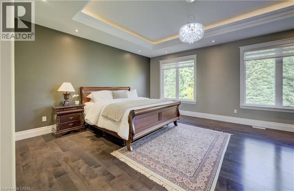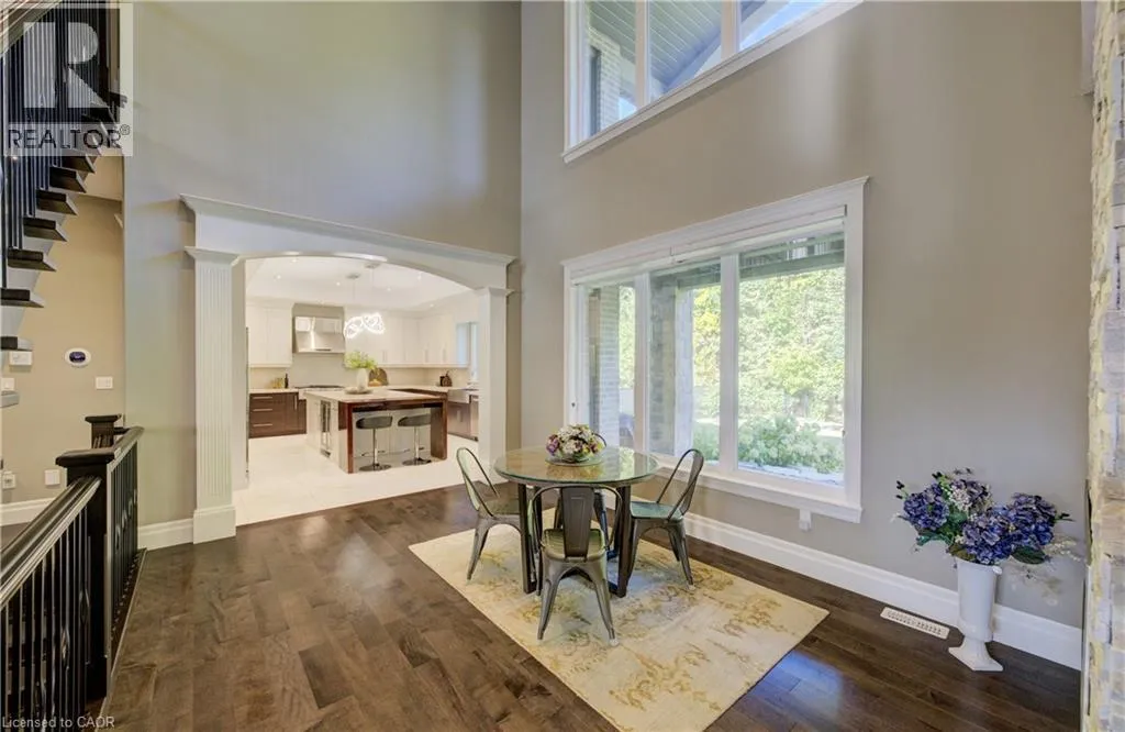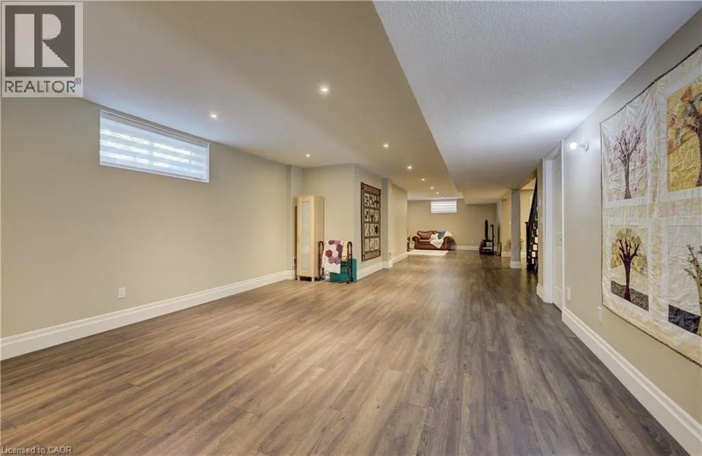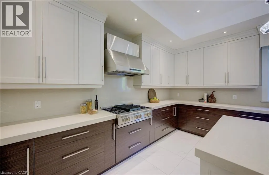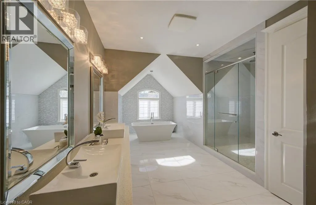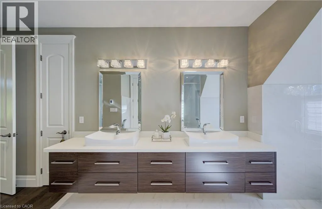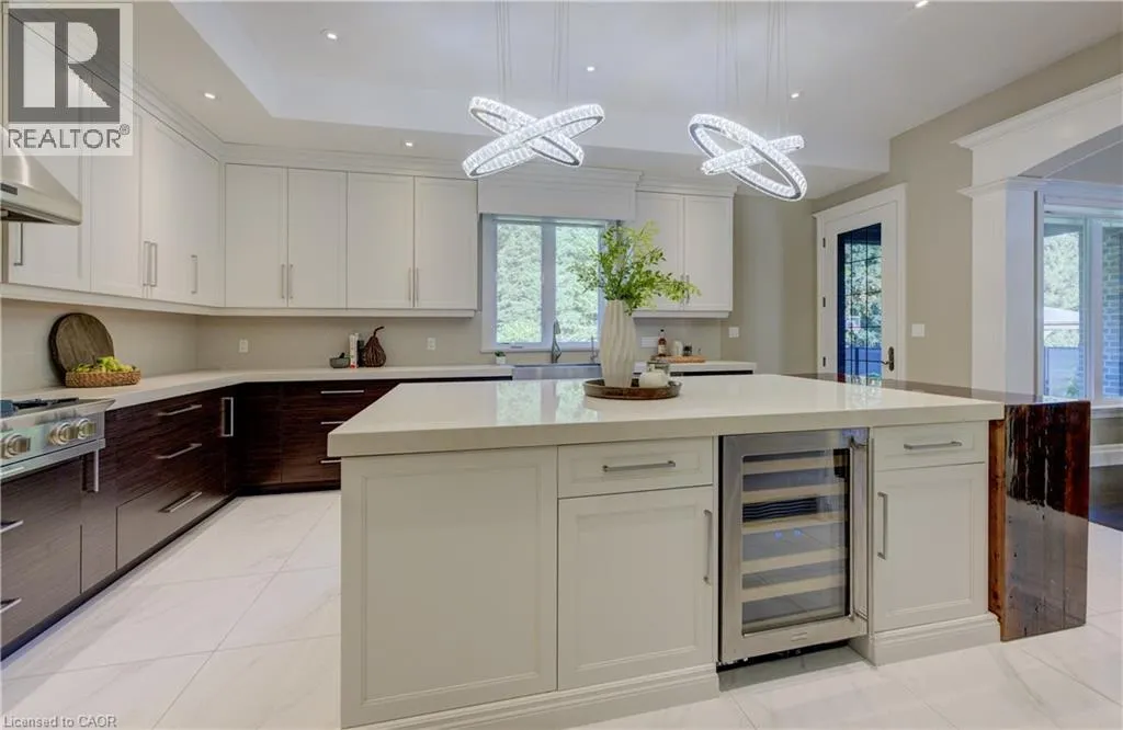 White Cedar Ave Built by Valleyrauss with meticulous craftsmanship and all-brick construction, this 4+ bedroom Laurelwood residence offers over 4,000 sq. ft. of refined living designed for the modern family. A grand cherry staircase makes a striking first impression, while soaring 11-foot ceilings and coffered details in the living and dining rooms establish an atmosphere of elegance. The main floor is both functional and spectacular, anchored by a floor-to-ceiling stone gas fireplace and filled with natural light. The chefâs kitchen is a showpiece, boasting a large side-by-side fridge, double wall oven, extended cabinetry, heated floors, a generous island with beverage fridge, and premium appliancesâperfect for both family dinners and large gatherings. Upstairs, 10-foot ceilings enhance the spaciousness of four bedrooms, including a primary retreat with a coffered ceiling detail with ambient lighting, a spa-like ensuite with heated floors, freestanding tub, glass shower, and double vanity, plus access to a private covered balcony. The lower level continues the luxury with hydronic heated floors and versatile finished space for media, play, or fitness. Outdoors, the backyard is designed for family life and entertaining, featuring an interlock patio, a covered terrace, and natural gas hookups for effortless grilling. Surrounded by parks, trails, and top-rated schools, this home places you within minutes of Costco, The Boardwalkâs shops and restaurants, YMCA family programs, and the hiking paths of Laurel Creek Conservation Area. Every detailâfrom 9-foot solid doors to refined trims and lightingâhas been carefully chosen to blend comfort with sophistication. A rare opportunity to own a family estate where lifestyle, location, and luxury meet. (id:27476)