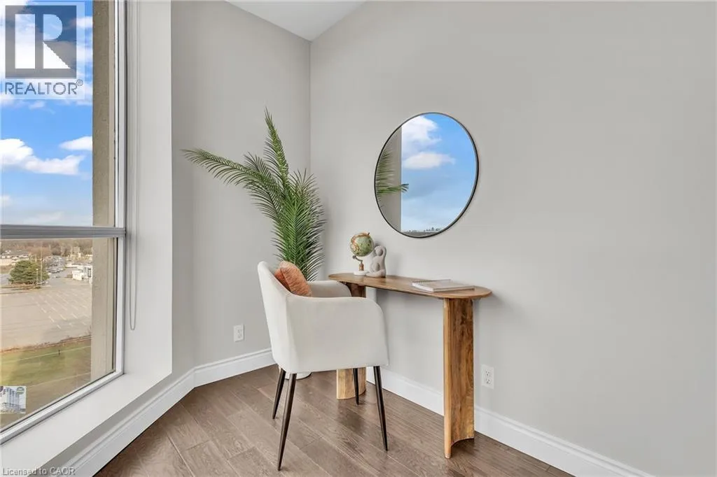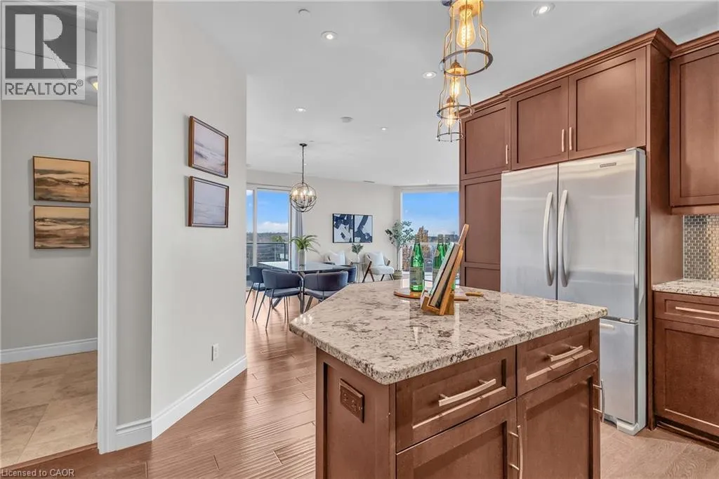 Erb & Westmount Welcome to 223 Erb St, Unit #502 â A luxurious home located in the Westmount Grand building in Uptown Waterloo. Here are the top reasons you'll love this property: 1 - SIZE AND LAYOUT - A spacious 1,400+ total sqft condo that feels like a home, featuring soaring ceilings, large rooms, and an open-concept layout. Large windows throughout provide abundant natural light, creating a bright and welcoming atmosphere. 2- THE PRIMARY BEDROOM - Boasting double closets and a large 4-piece ensuite with a tile and glass shower, deep soaker tub, and granite countertop vanity. 3- THE KITCHEN - A large kitchen with granite counters, ample storage, an island with seating, and full-size stainless steel appliances, including a dishwasher. 4- THE BALCONY - A generous open balcony, perfect for relaxing, enjoying fresh air, sipping your favorite beverage, reading a book, or listening to music.5- THE BUILDING - The Westmount Grand is a premium building in Uptown Waterloo that truly feels like home. It offers amenities such as a fitness centre, a lounge/library area, a rooftop deck with a barbecue, a party room for larger gatherings, and visitor parking. 6- PARKING AND STORAGE -Includes the added value of an owned underground parking space and a dedicated storage locker, providing convenience and extra space for your belongings. This is truly a beautiful unit in a premium building. Book your showing today! (id:27476)