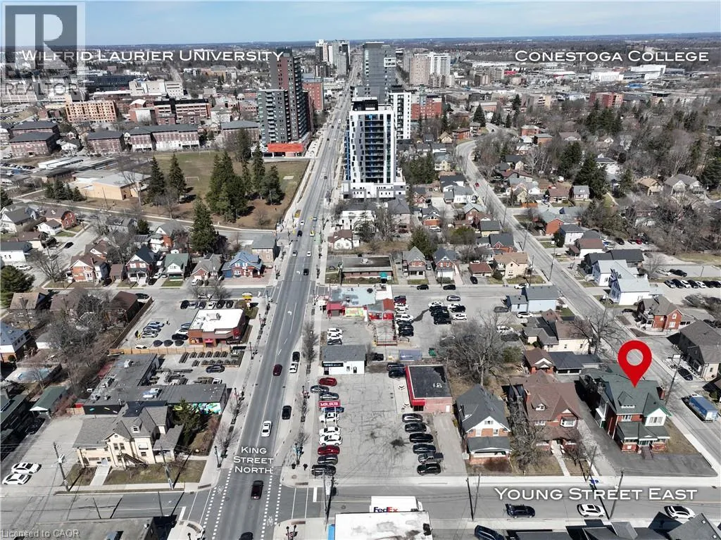 At the corner of Regina Street North and Young Street East, just 1 block east of King Street North. Zoned U1-40(12 storeys) ~~~ This 3-unit mixed-use property has a lot to offer the pure investor or owner occupier! With over 1480 square feet of main-floor commercial space, the zoning permits financial institution, medical office, personal services, restaurant and cafe, retail store, tech office, vet clinic, art studio, business incubator, and so much more! With corner-lot exposure, ample parking spaces, and a location in the heart of Uptown Waterloo, the stage is set for a new business to operate where this Seller's business thrived for over 35 years. Find 3-bedroom and 1- bedroom apartments on the upper floors, each with separate hydro meters, which can help to make this a great investment. Forecasted modest rents and actual expenses show a projected net operating income of $64,880 making this a favourable investment in the short-term while holding and planning for highest-and-best-use. Just a few blocks from WLU, UW, Conestoga College, Light-Rail Transit, and Waterloo Park, this presents a great opportunity for attracting residential tenants and commercial clients in a neighbourhood that is enjoyable to be in. Projected revenue of $88k and NOI of $64k. Explore the possibilities for a great investment, today! (id:27476)