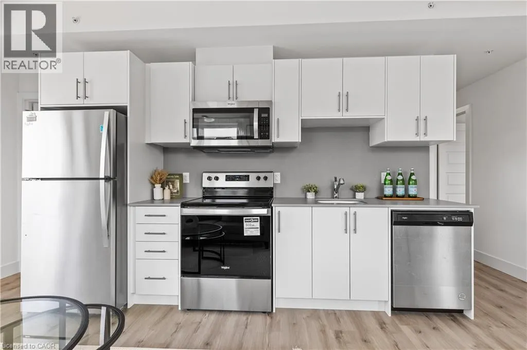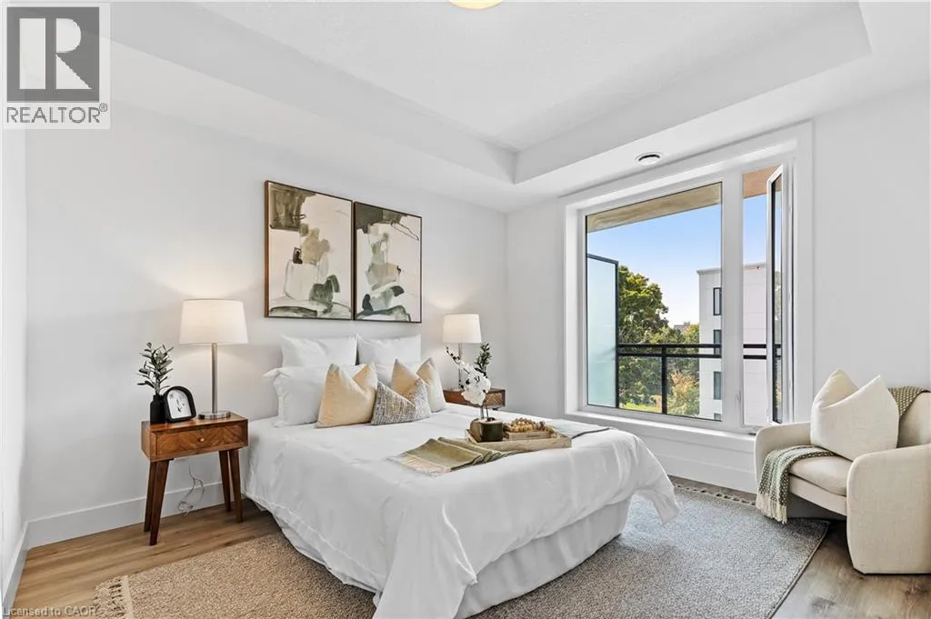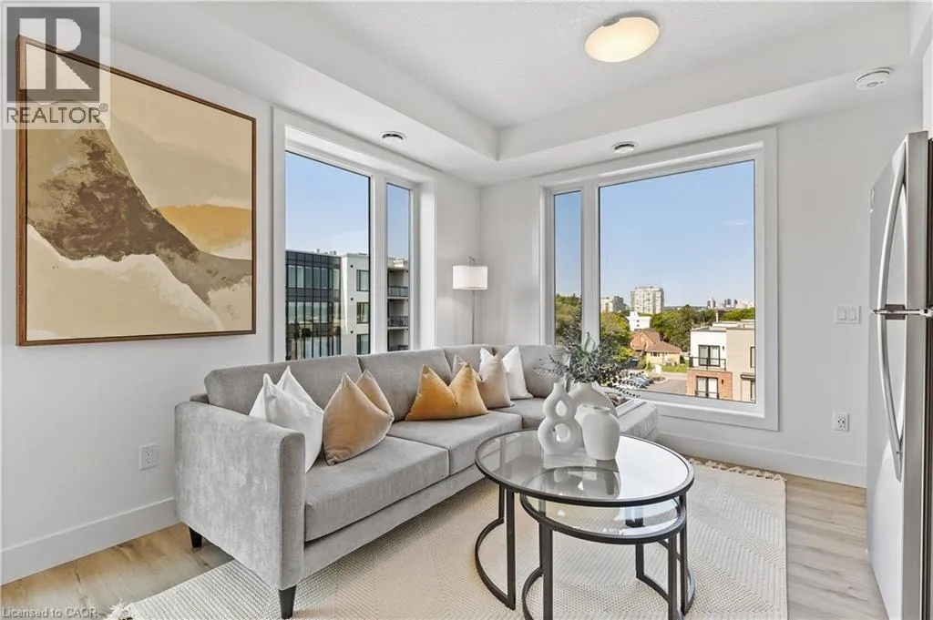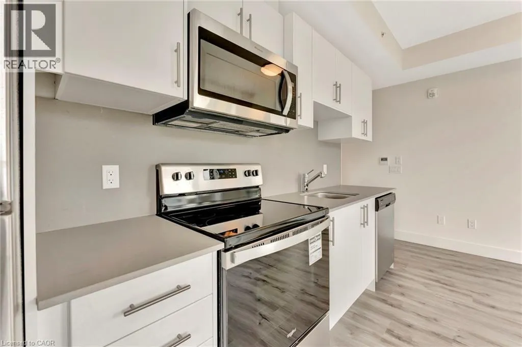Moore Ave S & Roger St Welcome to urban living at its finest! This modern 2-bedroom, 1-bathroom condo is ideally situated in Uptown Waterloo, placing you steps from everything the city has to offer. Whether you're heading to the universities, hopping on the LRT, dining out at local restaurants, or exploring downtown Kitchener, youâll love the unbeatable convenience of this prime location. Enjoy easy access to the Spur Line Trail, Grand River Hospital, and nearby shopsâall just minutes from your front door. Inside, this bright and airy unit features large, beautiful windows that fill the space with natural light, complementing the sleek grey vinyl plank flooring throughout. The kitchen boasts concrete-inspired quartz countertops bringing a contemporary, urban feel to the space while providing the easy care and resilience quartz is known for. Both bedrooms come equipped with walk-in closets, providing ample storage and comfort. Step outside to your private balcony, perfect for morning coffee or relaxing after a long day. Whether youâre a first-time buyer, downsizing, or investing in one of Waterlooâs most desirable communities, this condo checks every box. (id:27476)