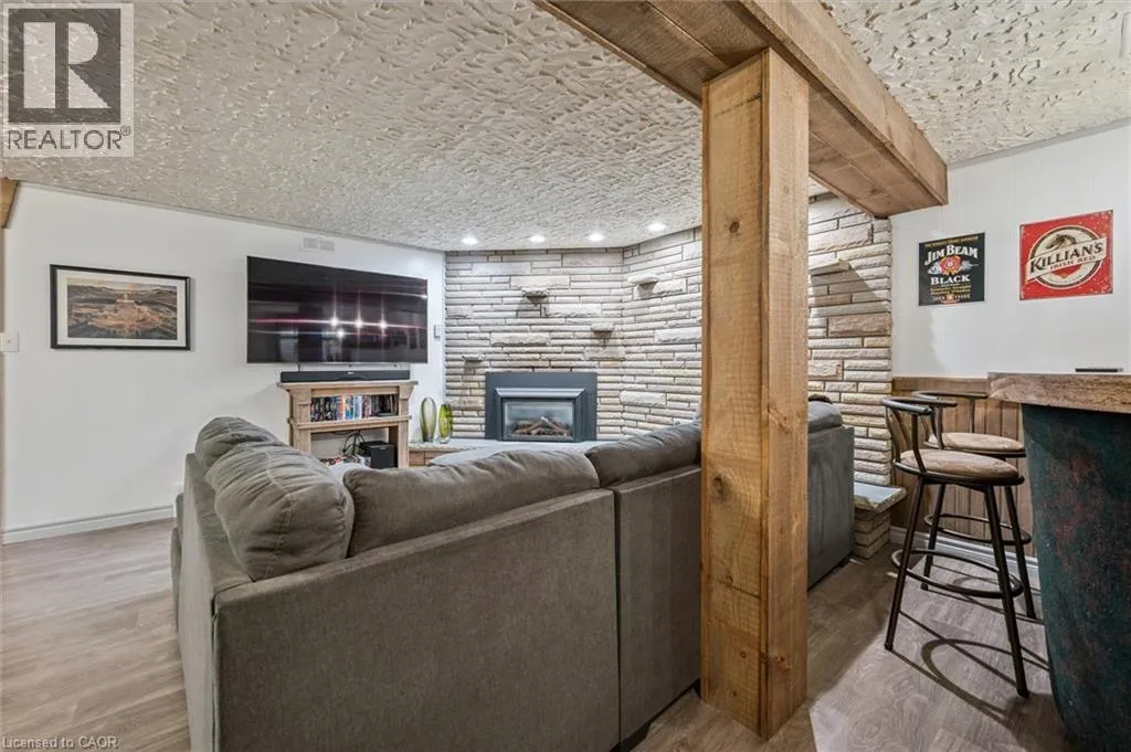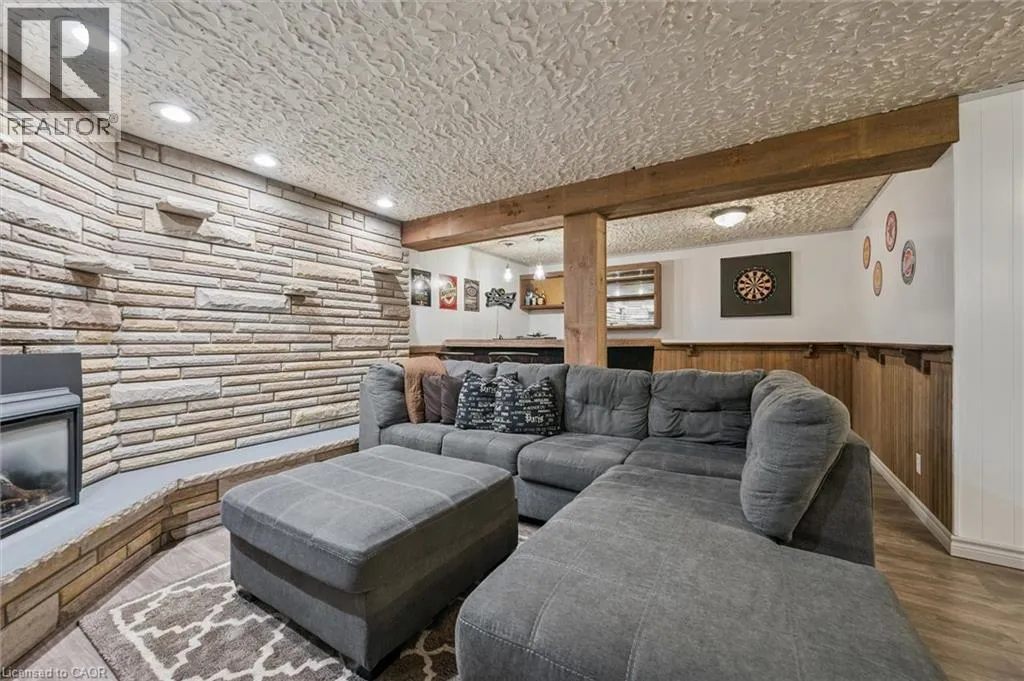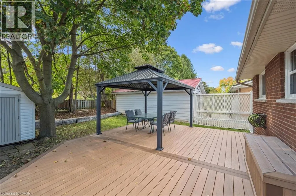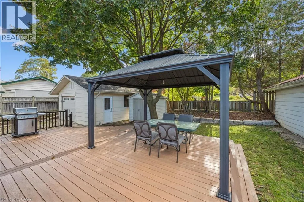 From Weber St. turn onto Glen Forest Blvd. Check everything off your list! Situated on a large lot with a DETACHED 17' x 20' WORKSHOP/GARAGE and plenty of parking, this mid century bungalow with amazing curb appeal is conveniently located minutes from parks, schools and all the best amenities of west Waterloo! This classic layout for main floor living features a spacious living room with built-ins and cozy fireplace with large, bright windows and excellent views of the mature streetscape. Three bedrooms are down the hall (including the primary with new flooring in 2025), along with a handy three piece bathroom nearby. The retro eat-in kitchen has plenty of cabinet and counter space, a new dishwasher (2025), and a lovely window with views of pretty landscaping and a large composite deck with gazebo (2022). Sliders from the dining area lead to a private backyard with armor stone retaining wall (2023) and BONUS: DETACHED GARAGE/WORKSHOP perfect for hobbyists! This insulated garage/workshop area features a new garage door (2025), roof, man door & windows (all 2024), heater (2022) and french cleat tool wall! Once back inside the main floor living space is replicated on the lower level, and includes a separate side door entrance with the potential for extended family or income! This fully finished space includes a recreation room with bar area and gas fireplace, a bedroom, office or exercise space, laundry room and a four piece bathroom. Additional updates include Furnace, A/C and water softener (all 2021) and re insulation of attic (2023) . The perfect opportunity to plant roots on a mature and friendly tree lined street in a great location! (id:27476)
