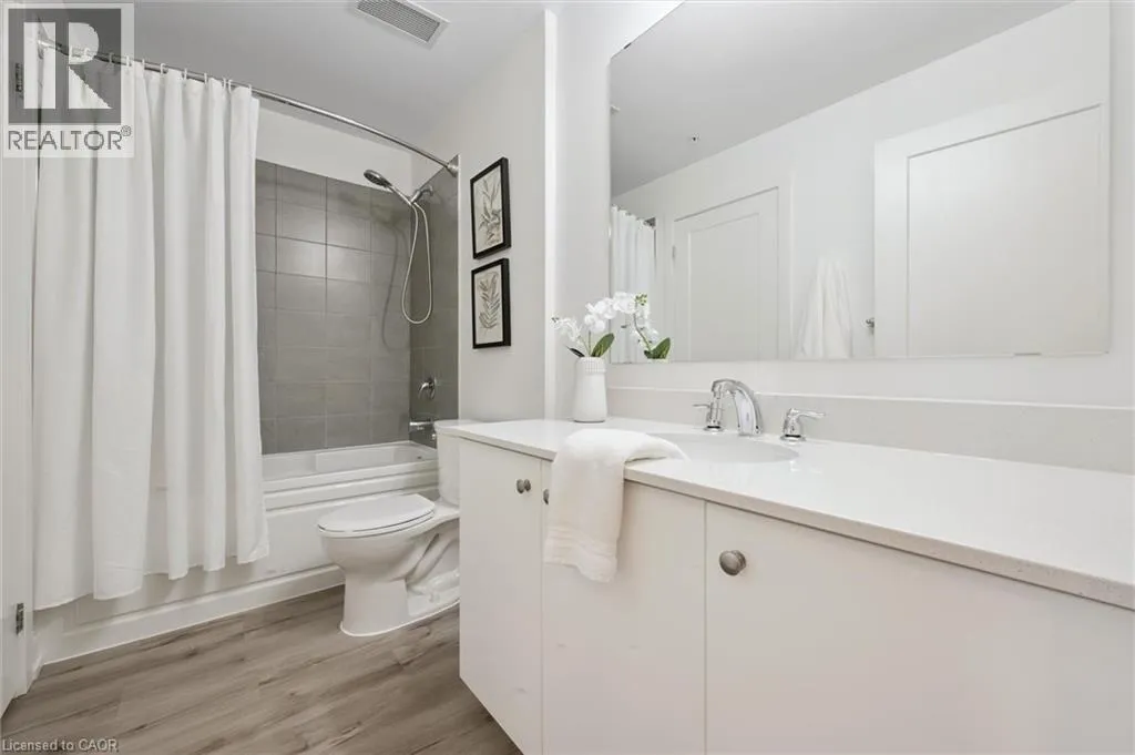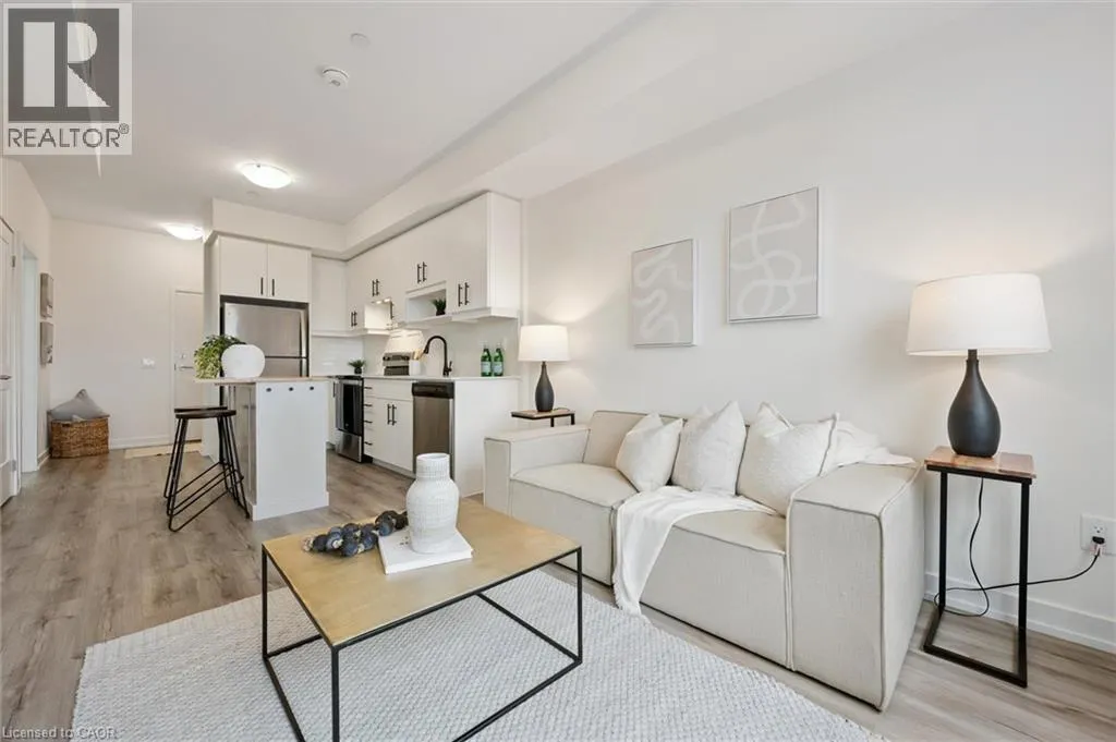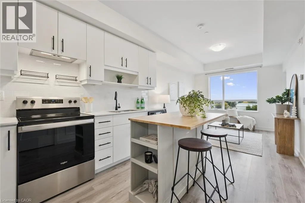 Bridge/Northfield Welcome to Blackstone! This stylish 1 bed, 1 bath condo with underground parking offers modern finishes, amenity rich facilities and an ideal Waterloo location at a great price! Located on the 5th floor with northwestern exposure, this bright unit features sunset views from the private balcony and a functional open layout. The kitchen comes equipped with stainless-steel appliances, double under-mount sinks with pull-down chefâs faucet, subway tile backsplash, and a rolling island for extra storage. Beyond the main living area, youâll find a spacious bedroom with a walk-in closet and cheater ensuite featuring a quartz-topped vanity and tiled shower/tub combo, plus in-suite laundry and a front hall closet for added convenience. Residents at Blackstone benefit from heat and high-speed internet included in the monthly fees and have access to premium amenities including a fitness centre, work/study rooms, games room, lounge, meeting areas, bike storage with repair station, dog wash, and two outdoor terraces with BBQs and fire pit areas. Located close to Conestoga Mall, Rim Park, St. Jacobâs Market, restaurants, cafés, tech offices, and trails, and offering easy access to the LRT and Highway 85, this condo the perfect balance of lifestyle, location, and value for first-time buyers, young professionals, downsizers, or investors! (id:27476)