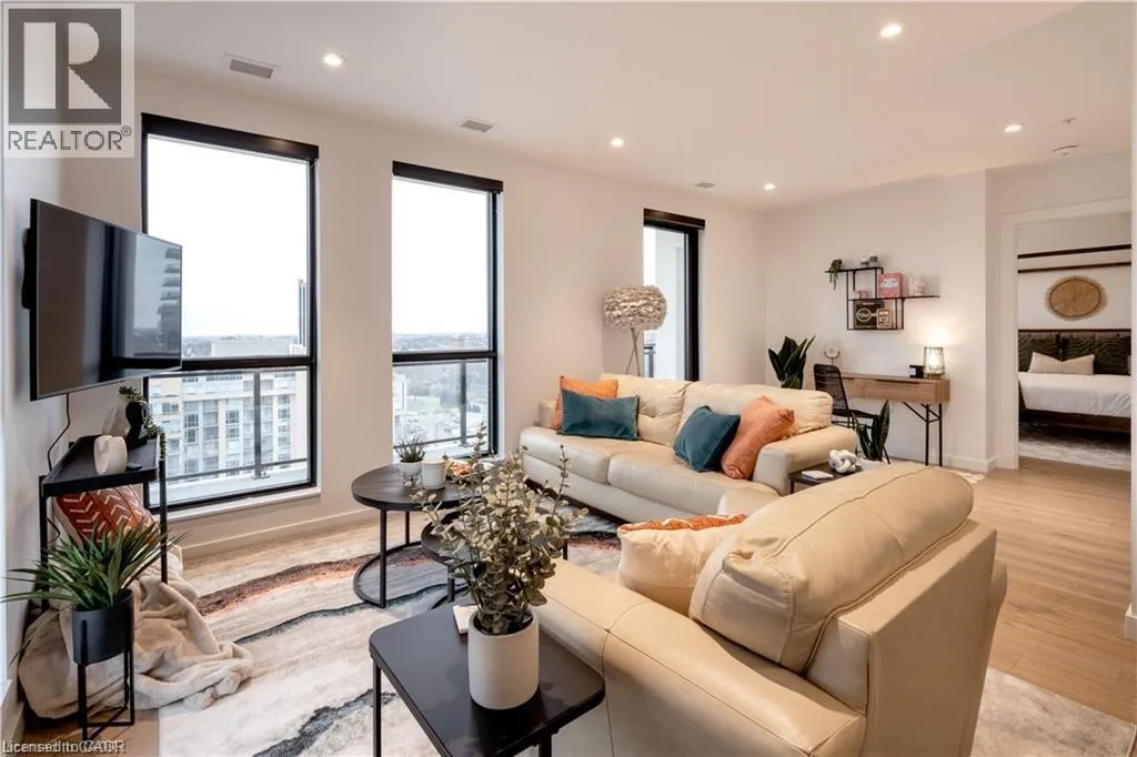 King & Allen Explore a charming 1-bedroom, 1-bathroom condo in Waterloo, conveniently situated just down the street from Uptown Waterloo. This well-located residence offers a cozy bedroom, a simple yet functional living space, and a practical kitchen. Discover the lively neighborhood with Uptown's shops and cafes within walking distance. Experience the convenience of modern living in this Waterloo condo, perfectly situated for easy access to the vibrant amenities of Uptown. (id:27476)