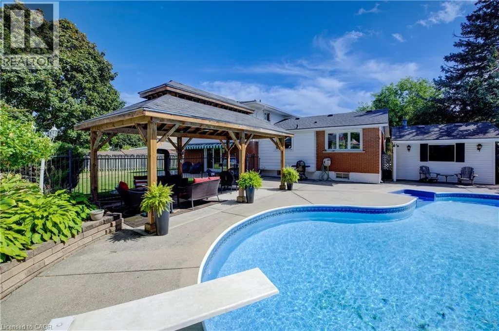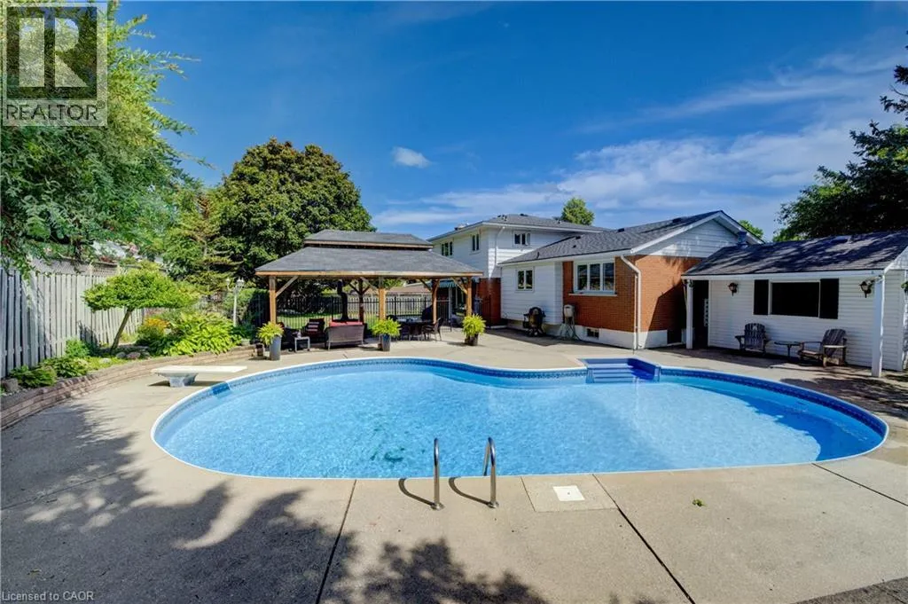 Sandowne Dr to Boxbury Dr to Creighton Court Family living and outdoor entertainment at its best. Welcome to this spacious side-split home tucked away on a quiet cul-de-sac in a family-friendly neighbourhood. It is easy walking distance to a French Immersion Kâ6 school and some great parks for the kids. All with easy highway access. This home is the perfect blend of convenience and community. Inside, youâll find 3+1 bedrooms and 2 bathrooms, offering space and flexibility for a growing family. The main level features an eat-in kitchen, large dining room that easily accommodates a table for 8âperfect for family gatherings - and a bright living room with bay windows that fill the room with natural light. Down a few steps is the family room with built-in wall unit, gas fireplace and sliding glass doors to the backyard. A great place for family movie night. The finished basement includes a rec room - ideal for family game night - along with an extra bedroom and plenty of storage. Love summer entertaining? This is the house for you. The backyard is a rare find in the cityâan expansive, fully fenced outdoor oasis. Enjoy a large pool with pool shed and change room, a 22â x 12â wooden gazebo for shaded relaxation, plus a separate fully fenced lawn area with a shady tree and patio awning. Thereâs plenty of space for kids, pets, and your favourite outdoor games like cornhole or washer toss. This home is move-in ready and designed for both everyday living and entertainingâdonât miss your chance to make it yours! (id:27476)