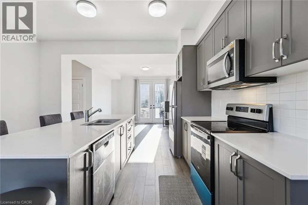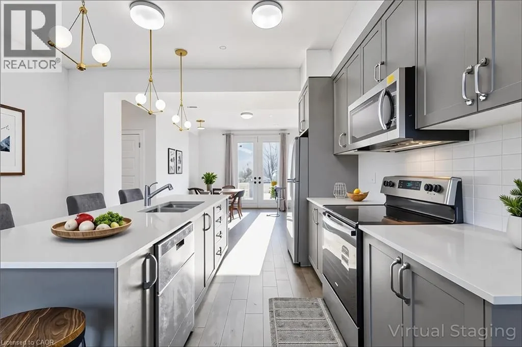 Between Moore Ave S and Lucan Avenue Invest or live in the heart of Waterloo, in an area where Google and the tech community thrive! This executive-style, nearly new 3-bedroom, 2.5-bathroom home offers over 1,850 sq. ft. of modern luxury. Bright interiors feature massive picture windows and 9-ft ceilings, while the upgraded kitchen and bathrooms showcase quartz countertops, stainless steel appliances, and luxury vinyl plank flooring, plus in-suite laundry. Upstairs, three generously sized bedrooms include a primary suite with walk-in closet, ensuite bath with quartz vanity and standing shower, and a step-out balcony. Perfectly located, enjoy easy access to the LRT, Google, the tech corridor, University of Waterloo, Wilfrid Laurier University, Grand River Hospital, and Downtown Kitchener with shopping, dining, and parks. Outdoor enthusiasts will love the Spur Line Trail next door and a new park coming soon. Ideal for end-users or investors, this property offers strong rental potential in one of Waterloos most sought-after neighbourhoods. *Disclaimer: Some images have been virtually staged to help visualize the property's potential. Furniture and decor are for illustrative purposes only.* (id:27476)