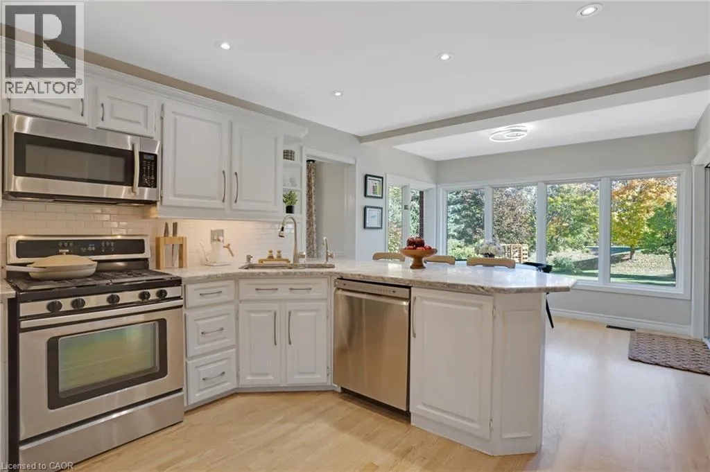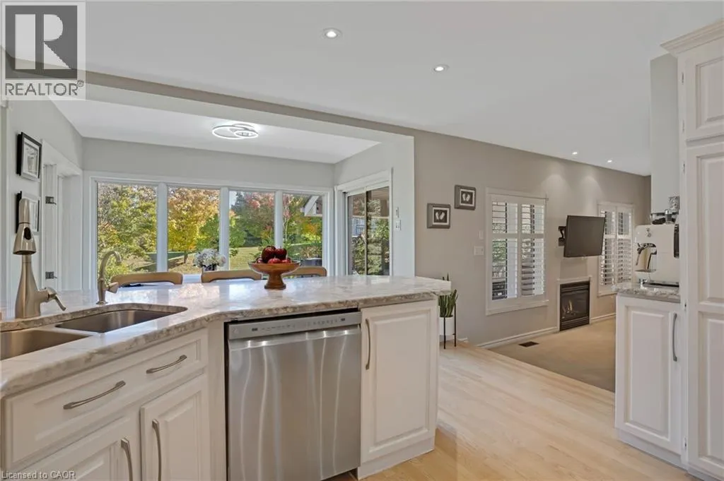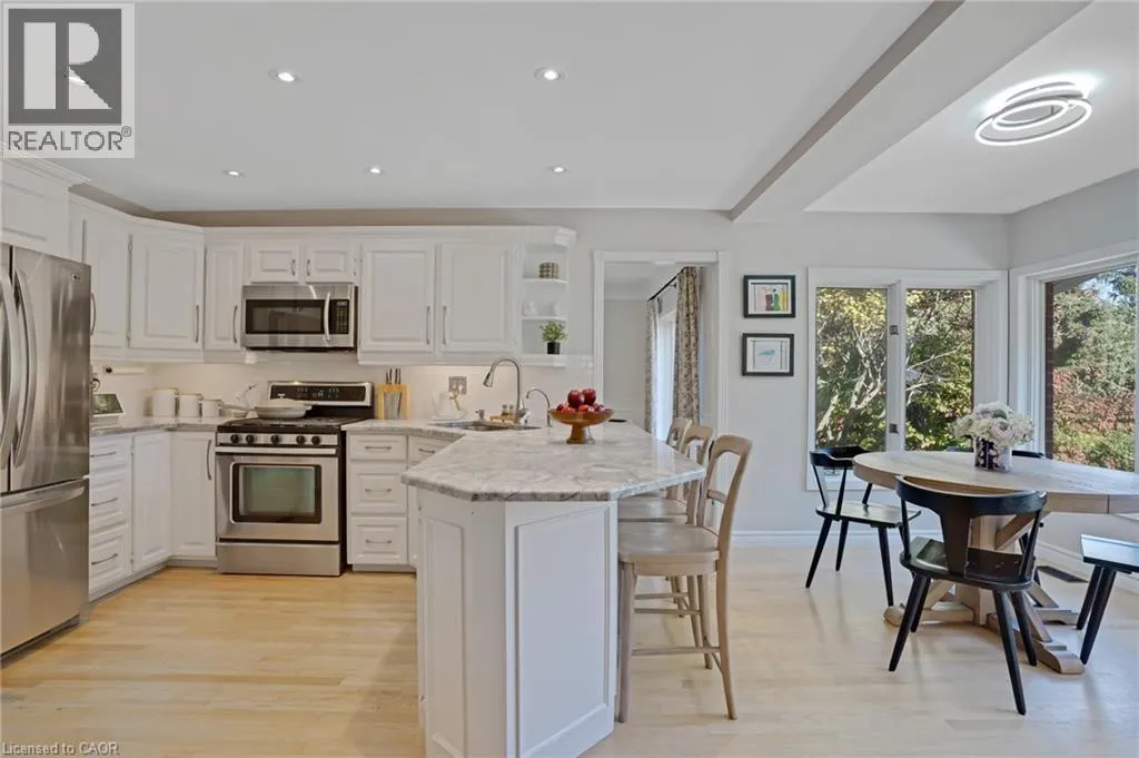 Leighland Dr. to Wyecroft Welcome to the one you have been waiting for, the beautiful 328 Wyecroft Blvd. Location is second to none with this home that sits on a premium pie lot with total privacy backing onto open space. While being in the prestigious Upper Beechwood Association, having access to the pool, tennis courts and lessons. This home is well-appointed for a growing family, providing ample space. The main floor features the living room, a bright open dinning room, a big open kitchen that connects with the family room, a bathroom and the laundry room, which is nicely connected to the side door and garage for easy access. Upstairs features 3 large bedrooms and two bathrooms with a large open loft space that could be used as you see fit. Downstairs features a bathroom, a bedroom and a large recroom with still having ample storage and workshop area in the utility rooms. The backyard is set to impress with the large open lot overlooking the greenery of the open space. This home has been meticulously cared for and updated along the way with a furnace and a/c in 2018, roof in 2022, skylight in 2021, water softener in 2021, new front foyer with a front door, new front windows 2024, carpets upstairs 2024, new stairs were put in along with the opened up area at the top along with a new exposed aggregate new driveway in 2025 and side door in 2025. (id:27476)