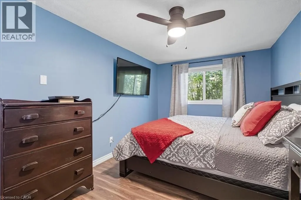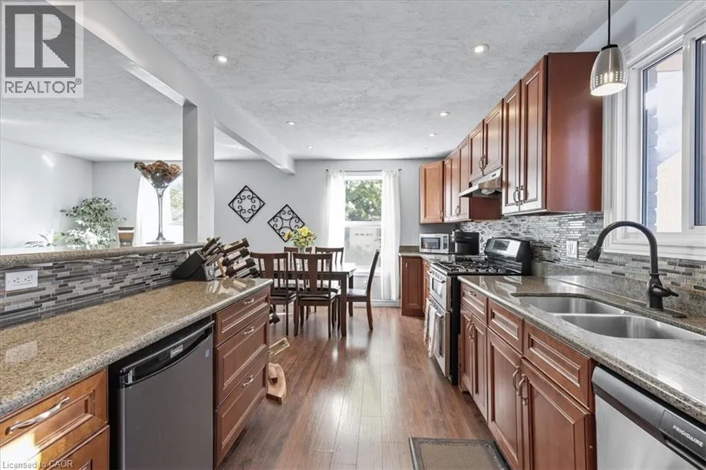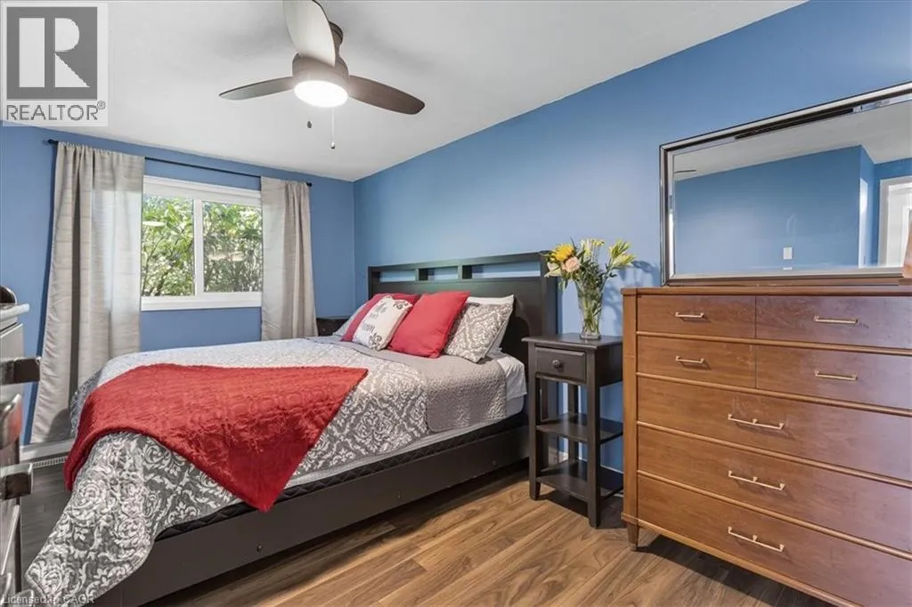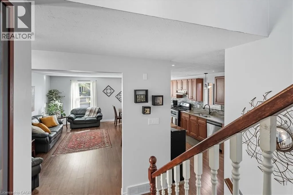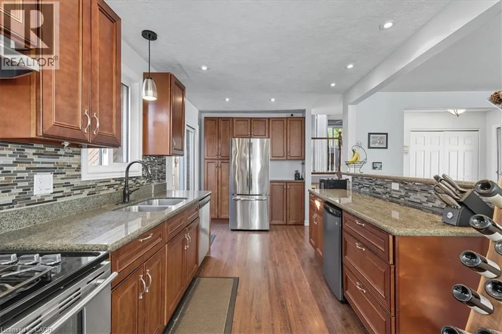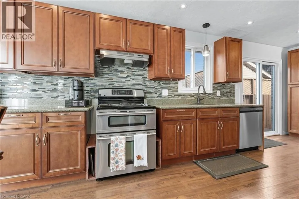 Take Northfield Dr West from Weber St. Turn right onto Highpoint Ave and then left onto Cornerbrook Cresent, straight onto Cornerbrook Place Spacious, move in ready, backsplit located on a quiet, dead-end street in North Waterloo. This is an ideal family home close to schools, playgrounds, and shopping, with quick access to the expressway, and easy walking distance to St. Jacobs Market. The 4-bedroom house has a backyard that looks out to Laurel Creek Conservation Area. Just a few doors down at the end of the street is Cornerbrook Park, with a sizeable children's playground, walking paths, and an outdoor winter ice rink. Step through the front door to open concept main floor featuring kitchen with counter seating, dining room, and living room. Sliding doors off the kitchen provide access to a private & safe, fenced back yard. It's just a few steps up from the ground floor to the main sleeping quarters with 3 bedrooms and a 4-pc bathroom. Down from the ground floor you will find a 2-pc bathroom, a 4th bedroom/office, and a large, bright family room. All of which offers potential for an in-law suite or multi-generational living. The lower level of the home has a rec room, perfect for a kids play space, hobby room, etc. This area also has laundry/utility room, storage room, and a small workshop room. Plenty of options to set it up for your needs! Recent updates include: New kitchen cupboards and counters (2015), Furnace & AC (2023), Windows (2023), Roof (2017), Garden Shed (2021), Smart Thermostat (2023), Three Bedroom Ceiling fans (2025). (id:27476)