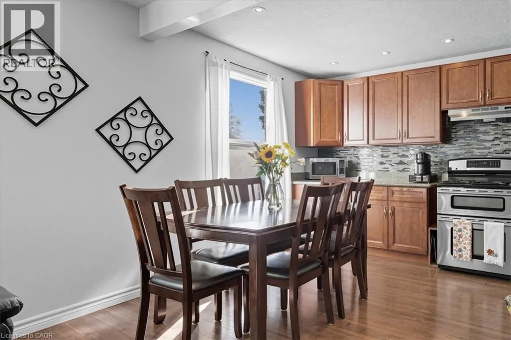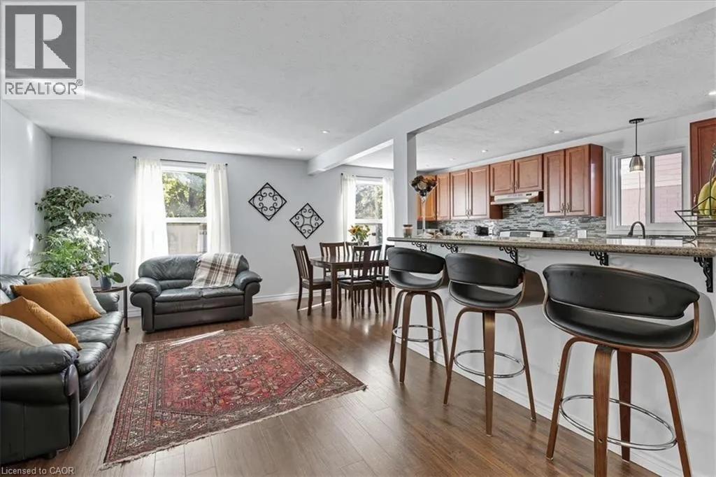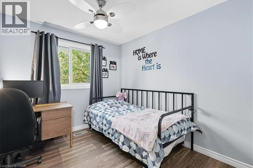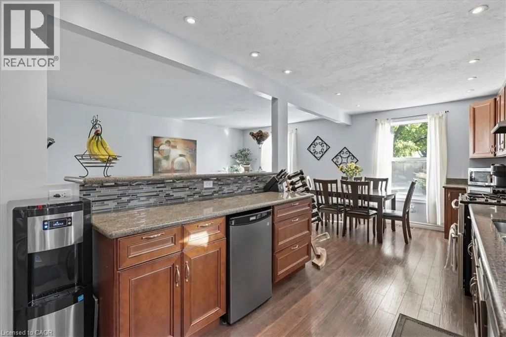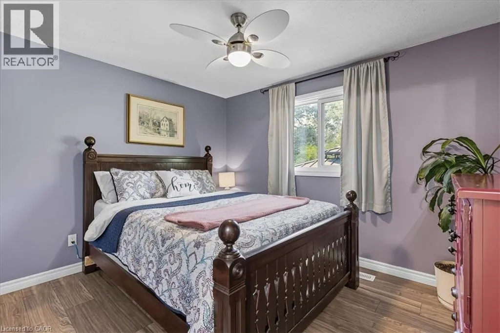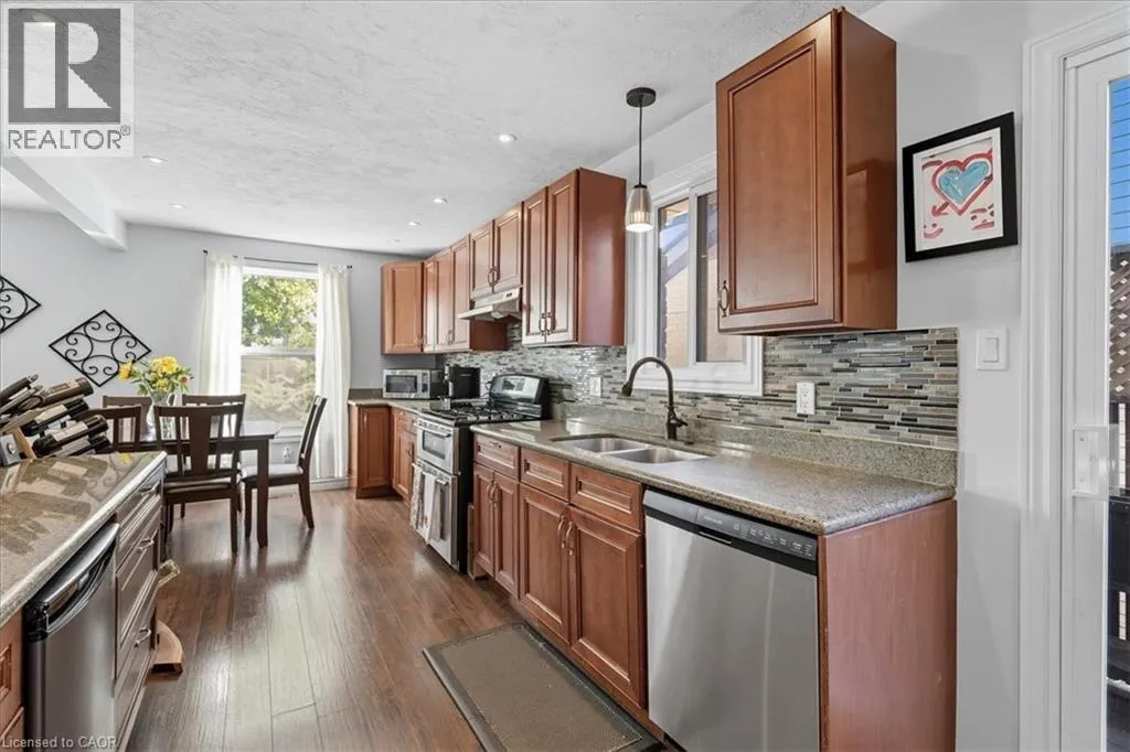 Take Northfield Dr West from Weber St. Turn right onto Highpoint Ave and then left onto Cornerbrook Cresent, straight onto Cornerbrook Place Spacious, move in ready, backsplit located on a quiet, dead-end street in North Waterloo. This is an ideal family home close to schools, playgrounds, and shopping, with quick access to the expressway, and easy walking distance to St. Jacobs Market. The 4-bedroom house has a backyard that looks out to Laurel Creek Conservation Area. Just a few doors down at the end of the street is Cornerbrook Park, with a sizeable children's playground, walking paths, and an outdoor winter ice rink. Step through the front door to open concept main floor featuring kitchen with counter seating, dining room, and living room. Sliding doors off the kitchen provide access to a private & safe, fenced back yard. It's just a few steps up from the ground floor to the main sleeping quarters with 3 bedrooms and a 4-pc bathroom. Down from the ground floor you will find a 2-pc bathroom, a 4th bedroom/office, and a large, bright family room. All of which offers potential for an in-law suite or multi-generational living. The lower level of the home has a rec room, perfect for a kids play space, hobby room, etc. This area also has laundry/utility room, storage room, and a small workshop room. Plenty of options to set it up for your needs! Recent updates include: New kitchen cupboards and counters (2015), Furnace & AC (2023), Windows (2023), Roof (2017), Garden Shed (2021), Smart Thermostat (2023), Three Bedroom Ceiling fans (2025). (id:27476)