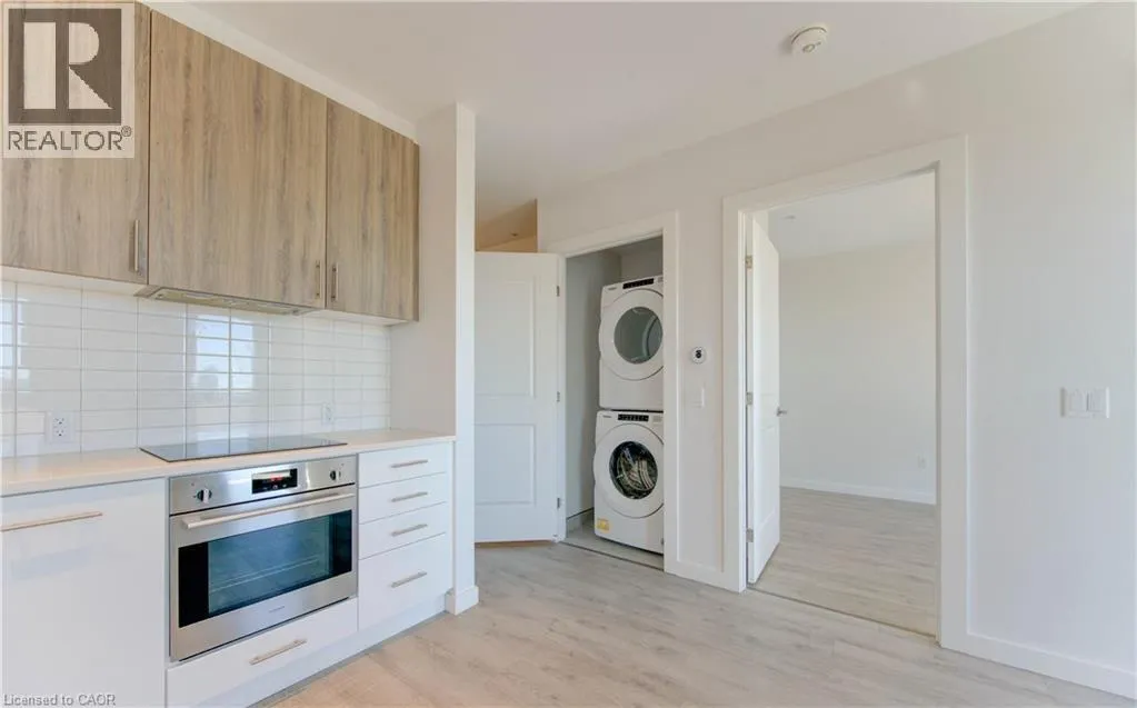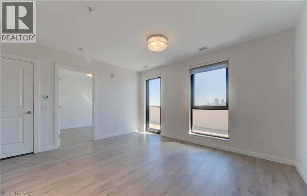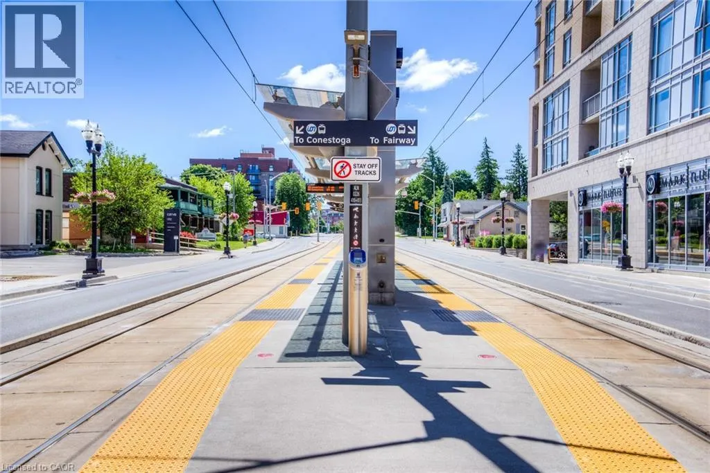 ON THE INTERSECTION OF KING STREET SOUTH AND ALLEN STREET WEST Welcome to CIRCA 1877, where the comforts of home blend seamlessly with upscale hotel-style amenities. This sun-filled 1-bedroom, 1-bathroom condo offers minimalist living at its finest. With clean white walls and elegant wood flooring throughout, the space feels open, airy, and modern. The sleek kitchen features hidden appliances that maintain a streamlined, clutter-free look, perfect for those who appreciate simplicity and style. Enjoy breathtaking views of Downtown Kitchener from the large bedroom windows and your generous 205 sq. ft. private balconyâideal for morning coffee or evening relaxation. Convenience is key, with in-suite laundry and extra storage space for added functionality. But the real highlight lies in the buildingâs amenities: unwind in the lounge, stay active in the fitness and yoga studio, take a dip in the pool, or host friends at the public BBQ area. Thereâs even a shared co-working space for those who work remotely. Located at the crossroads of Uptown Waterloo and Downtown Kitchener, you're steps from the LRT and GRT stops, and just around the corner from local favorites like Vincenzoâs and Bauer Kitchen. With Waterloo Park just up the street, youâre perfectly positioned to enjoy the best the city has to offer. Luxury, lifestyle, and locationâitâs all here at CIRCA 1877. (id:27476)