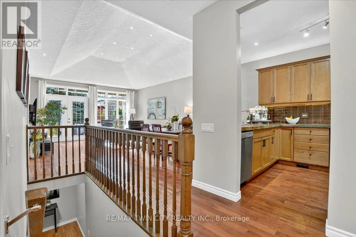 Cross Streets: Churchill Street. ** Directions: Erb Street West to Churchill Street to Reiber Court. Immaculate, solid brick/stone bungalow located in Waterloo's sought after Beechwood Family Neighbourhood. Nestled on a quiet, private court with walking trails and natural parks. Custom built by Cook Homes with special consideration given to wheelchair accessibility, including open concept design, wide hallways & doors throughout the main floor. Nearly 2700 square feet of beautifully finished living space with 4 bedrooms, 3 full bathrooms and a fully finished basement. Meticulously maintained by the original owner offering modern comfort and traditional elegance. The 9' ceiling and the large transom windows on the main floor create an expansive and airy atmosphere throughout. The gourmet eat-in Kitchen features an abundance of cabinetry with beautiful granite countertops, 5 Stainless Steel appliances and large peninsula/breakfast bar that opens to vaulted ceiling Great Room/Dining Room and seamlessly connects to a tranquil landscaped rear yard oasis with huge 30 x 20 foot deck, decorative lattices and pergola with climbing plants and cascading water feature. Perfect for outdoor entertaining and peaceful relaxation. The spacious Primary Bedroom overlooks the backyard and includes well appointed 4 piece Ensuite and walk-in closet. The 2nd Bedroom has 2nd Ensuite privileges with wheelchair accessible shower and wide pocket doors. The fully finished lower level offers 2 additional Bedrooms and 3 piece Bathroom, cozy Recroom, wet bar/kitchenette, large Laundry Room, storage rooms, cold cellar and a convenient walkup to 2 car garage. Updates include freshly painted (2024) steel roof (2018) with transferrable warranty, furnace & AC (2019), new asphalt driveway for 4 cars (2025). Located minutes from Boardwalk shopping, groceries, transit, both Universities, Westmount Golf & Country Club, parks & schools. Offers a great lifestyle opportunity for families, professionals or downsizers looking for quality, low maintenance landscaping for maximum enjoyment with minimal effort. (id:27476)