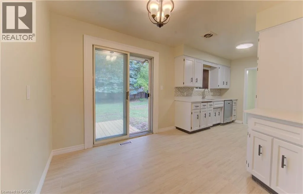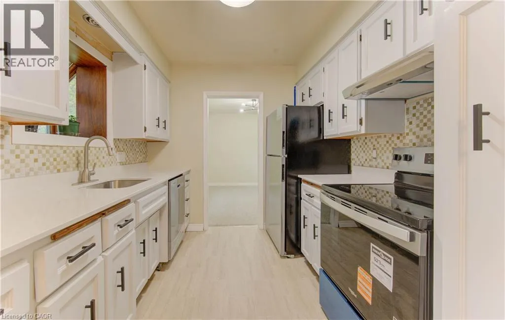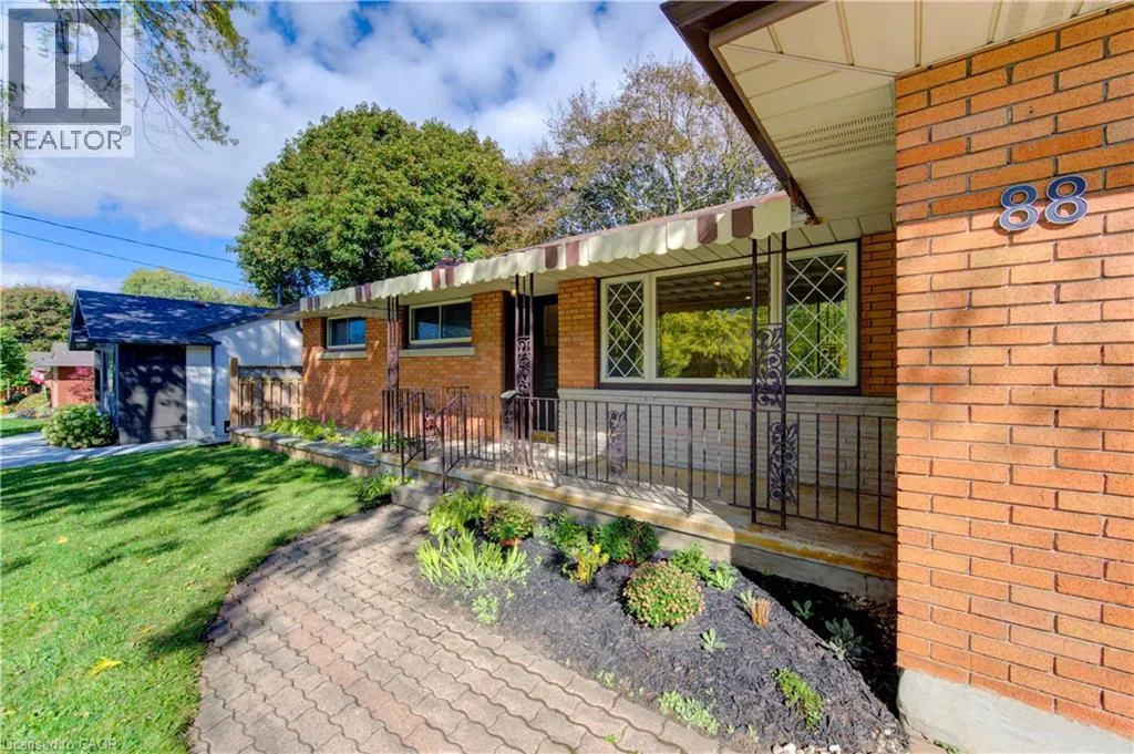 ERB ST TO ELLIS CRES Beautiful all brick ranch style bungalow sitting on an expansive lot along a tree lined crescent, in a sought after neighbourhood of Waterloo! The flowing main level floor plan is complimented by large windows and sliders off the kitchen that allow an abundance of natural light into the home highlighting the refinished gleaming hard wood floors. The entire interior has been freshly painted along with new flooring and trim. All new Stainless Steel kitchen appliances with range hood, Quartz counter tops, LED light fixtures, new Google Smart Home thermostat and new garage door with power opener/remotes are some of the additional recent upgrades. A new rear deck off the kitchen slider leads to a spanning rear yard complete with a separate side entrance allowing multi level living quarters or rental opportunities. The front covered concrete porch is complimented by a large front yard with mature trees and flower beds. Book your private showing today! (id:27476)