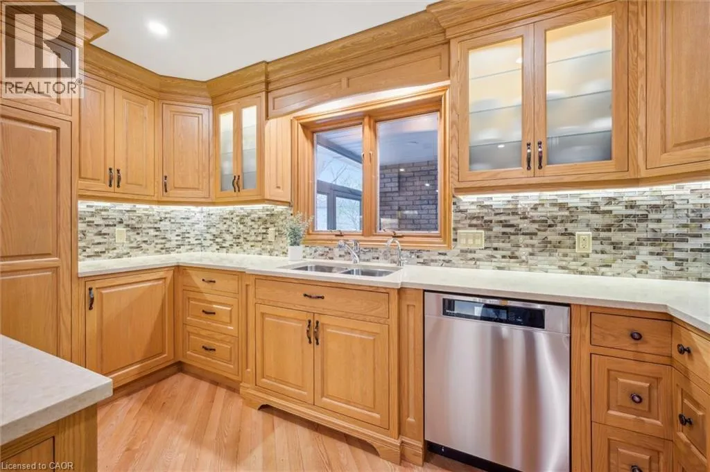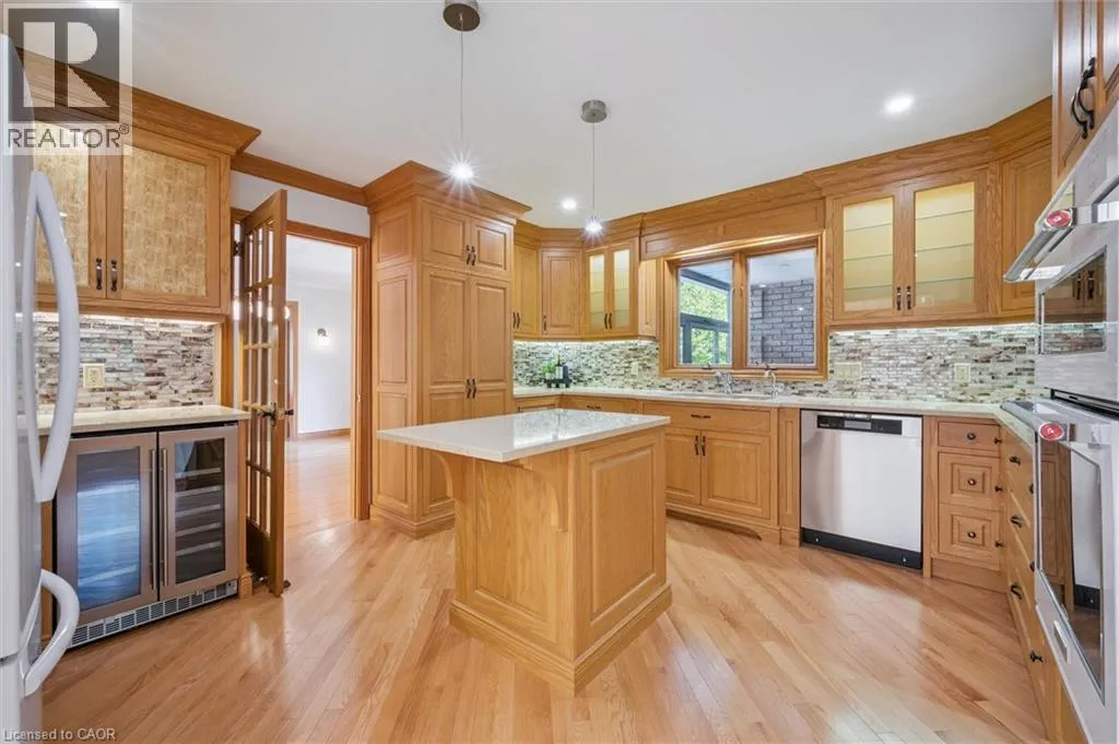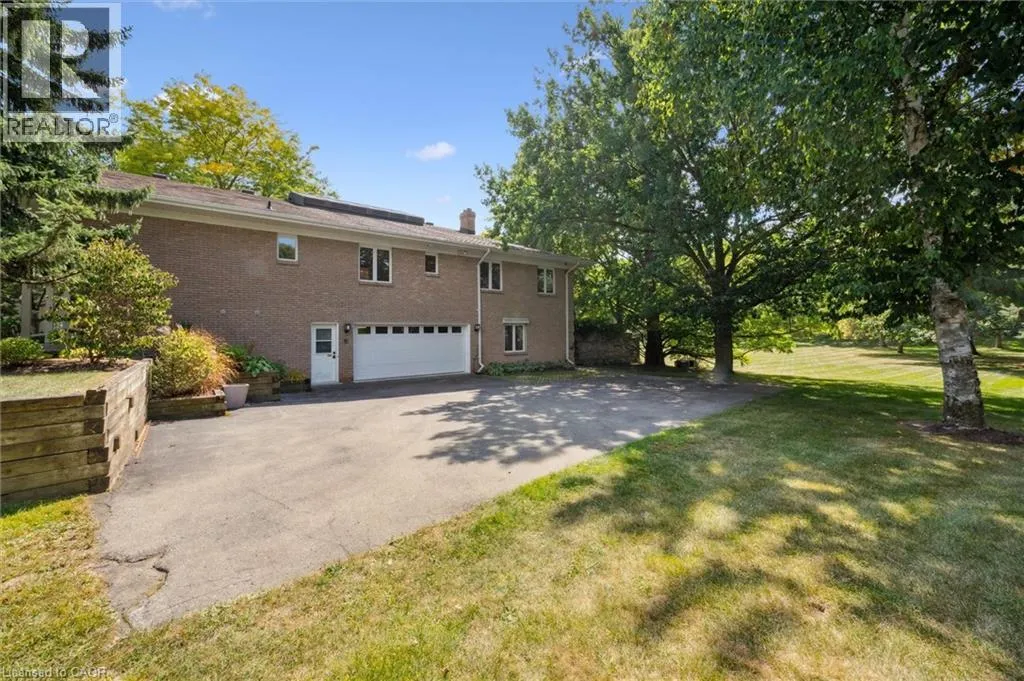 University to Millennium to Country Squire to Charing Cross A once in a lifetime opportunity to own one of Waterloo's most sought after addresses. The distinguished estates on this sought after enclave rarely come available, making it one of Waterloo's best kept secrets! This masterpiece custom home set on a stunning 2 acres lot is steps from the Grand River, Walter Bean Trail, Grey Silo Golf Course and provides seamless access to the city's most sought after amenities and workplaces while ensuring a cottage like retreat away from the urban hustle. This exceptional one-owner home has been meticulously maintained, showcasing true timeless elegance & the highest degree of attention to detail. With a U shaped interlocking stone drive, mature trees, perennial gardens, private courtyard, covered front porch & two separate driveways leading to the 4 car garage/workshops (2 on either side of the home). Featuring 4 bedrooms and 3.5 baths & over 5,800 sqft of finished living space with a fully renovated chefs kitchen (2019) featuring solid oak cabinetry, quartz countertops, a breakfast bar, wine fridge & sleek refined design. The real showstopper is the sunroom in the heart of the home, with soaring ceiling height & a glass roof allowing sunlight to permeate the space with breath taking character. You will also love the cozy family room with wood burning stove off the kitchen which opens up to the back sunroom overlooking the spectacular back acreage. Two furnaces & a/c's service the home (2019). The basement walks out to the extensive outdoor living space which serves as the perfect retreat in nature. The interlocking patio can be covered or partly covered by a power awning for the perfect mix of sun & shade in the west facing rear yard surrounded by cascading rock gardens, grape vine archway, stunning magnolia trees, a gazebo & shed. The two acre lot offers endless opportunities to enjoy this rare gem of a property! (id:27476)