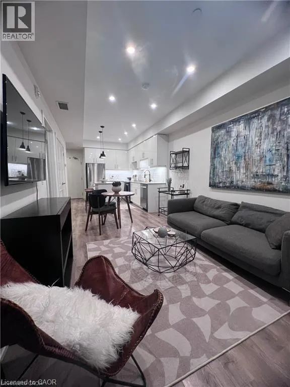 NORTHFIELD DRIVE AND BRIDGE STREET Discover modern living in this stunning 1-bedroom, 1-bath condo that combines style and convenience. With high ceilings and large windows, the unit is bathed in natural light, creating an open, airy feel. The carpet-free layout includes a sleek kitchen with a central island, upgraded appliances, and a luxurious walk-in tiled shower in the bathroom. The spacious walk-in closet provides ample storage, making this home both functional and sophisticated. Residents enjoy premium amenities, including a Rooftop Terrace with BBQ & Hot Tub, a fitness and business center, media room, bike room, dog washing station, and a serene courtyard with firepit, hot tub and BBQ. Ideally located near a variety of restaurants, shopping, scenic trails, and parks, this condo offers quick access to RIM Park, Conestoga Mall, St. Jacobs Market, universities, and Uptown Waterloo â perfectly blending urban convenience with serene surroundings. (id:27476)