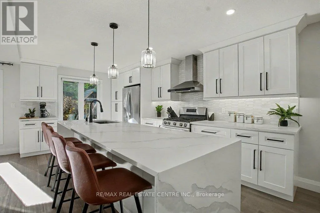 Cross Streets: Gateview Drive. ** Directions: Gateview Drive to Westvale Drive. Welcome to this stunning 4-bedroom, 4-bathroom home, completely reimagined with high-quality construction and modern design. Offering an impressive approx 3400 square feet of finished living space, this home seamlessly blends comfort, style, and functionality. The main floor features a chefs dream kitchen with a large island and striking quartz waterfall countertop, complemented by newer appliances and an open-concept layout that's perfect for both everyday living and entertaining. A soaring foyer welcomes you into spacious living and dining areas, with a cozy gas fireplace that adds warmth and charm to the space. Upstairs, you'll find generously sized bedrooms along with an additional family living room an ideal spot for a kids play area, media lounge, or quiet retreat that offers even more versatility for a growing household. The fully finished basement includes a large recreation room and a private in-law suite with its own wet bar and bedroom, making it perfect for multi-generational living, guests, or additional rental income potential. Recent upgrades include a new water softener installed in 2022, updated eavestroughs in 2024, and new basement windows/window wells added the same year. New kitchen appliances (2022). Located in a fantastic neighborhood close to scenic trails, shopping, and a wide range of amenities, this beautifully updated home is truly move-in ready and designed to suit the needs of modern living. (id:27476)