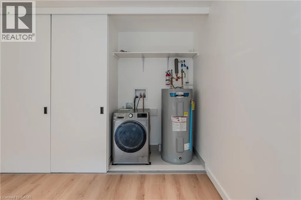 King St S to Union St E. THE ONE that stands out from the rest! Welcome to The Spurline Unit at 63 Union St E, Waterloo â a bright, beautifully designed 1-bedroom, 1-bathroom unit offering the perfect blend of urban sophistication and boutique living. Not into condo life but looking for an upscale rental in Uptown Waterloo? This premium unit delivers with high-end finishes, including wide-plank luxury vinyl flooring, quartz countertops, and a modern, cohesive aesthetic throughout. Built with commercial-grade materials, this property redefines boutique-style living with unmatched character and quality. Enjoy two levels of living space: the lower level features an open-concept layout with a sleek, black-on-black kitchen, stainless steel appliances (including a dishwasher), and a spacious island with seating â the perfect place to cook, dine, and entertain. The inviting living area is filled with natural light and exudes warmth and comfort. The main level offers a studio-style bedroom with an oversized closet, in-suite washer/dryer combo, and a 3-piece bathroom. The bathroom boasts a large vanity with ample storage and a glass-enclosed tiled shower. Additional highlights include a private entrance, individual hydro meter, dedicated heating and cooling, custom roller shades, and your own mailbox â all designed for independent, carefree living. Need parking? Off-site surface parking is available at a nearby lot for an additional fee. Without or without a vehicle youâll thrive in a highly walkable neighbourhood steps from public transit, the Iron Horse Trail, Midtown Hospital, and Uptown Waterlooâs vibrant amenities â from dining and shopping to boutique gyms and wellness services. Live in the heart of it all â 63 Union St E is where modern design meets the ultimate urban lifestyle. (id:27476)