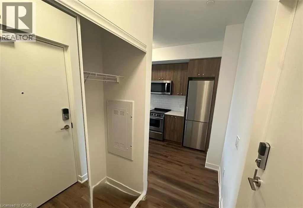 Erb Street W & University Ave Beautiful and modern 1-bedroom, 1-bath condo for lease at Moda, Waterloo. Only one year old and in excellent condition. Features a bright, spacious, and functional layout with a large living area and a comfortable bedroom with a double closet. Enjoy building amenities including a coworking lounge with private phone pods, pet washing station, electronic parcel lockers, and a stylish party room with private event space. (id:27476)