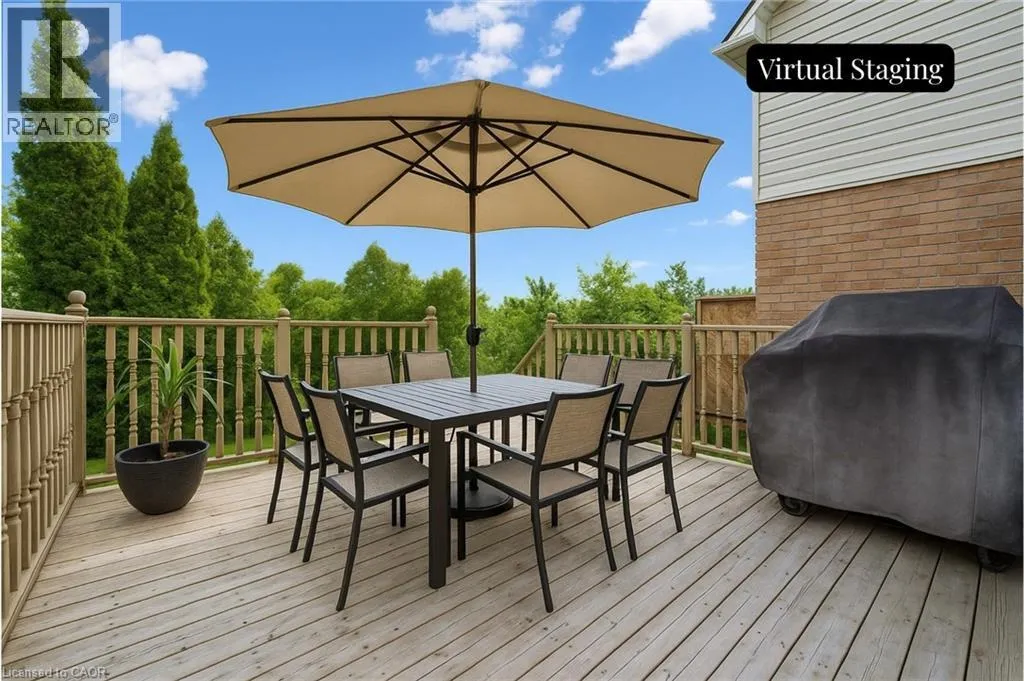 University Ave. E to New Bedford Dr., turn onto New Bedford Dr., Left at round-a-bout onto East Bridge Blvd., Left at stops sign onto Bonavista Dr., house on left. Welcome to 566 Bonavista Dr., Waterloo â a beautifully maintained and move-in ready 3-bedroom, 3-bathroom home in the highly desirable Eastbridge neighbourhood! This inviting two-storey residence perfectly combines comfort, functionality, and communityâideal for families and professionals alike. Step inside to discover a bright, open layout featuring spacious principal rooms and an open-concept kitchen and dining area filled with natural light. The fully finished basement offers excellent versatility, whether you envision a cozy movie room, a kidsâ play area, or a home office or guest suite. Upstairs, three generous bedrooms await, including a primary suite with ensuite privilege. Enjoy the outdoors on your raised deck overlooking a private backyard with mature trees and no rear neighboursâperfect for entertaining or quiet relaxation. Located on a peaceful street surrounded by great schools, parks, new community splash pad, and scenic trails. Enjoy being just minutes from Grey Silo Golf Course, RIM Park, and Conestoga Mall. With easy access to Highway 7/8 and the ION LRT, this home blends convenience with lifestyle. Book your showing today and fall in love with life on Bonavista! **Virtually Staged photos to show possible basement uses and deck furniture layout** (id:27476)