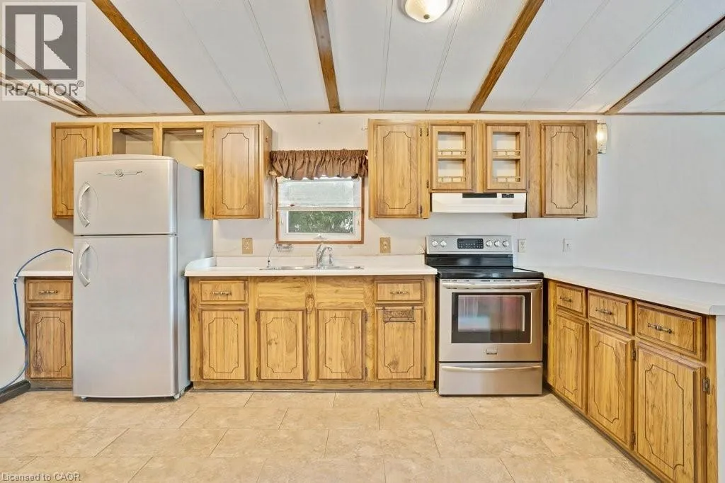King St. N. to Martin Grove Rd. Martin Grove Village Discover comfort, convenience and affordability in this charming 2-bedroom, 1-bath bungalow located in Martin Grove Village; a year round Parkbridge Landlease Community. Conveniently located on the edge of Waterloo just minutes from the highway and St Jacob's Market. Enjoy an easy-care lifestyle in a friendly neighbourhood just minutes from major shopping, and local amenities. This home offers bright living spaces, efficient design, and great value for those looking to downsize or enjoy relaxed living in a peaceful setting. Enjoy the peace of mind with a steel roof and newly installed gas furnace and AC bring. Plus an owned on demand gas fired hot water system, stacking Bosch Washer & Dryer. The stainless steel Fridge, stove, are also included for your convenience. Monthly land lease fees are $827.83 which includes property taxes. (id:27476)