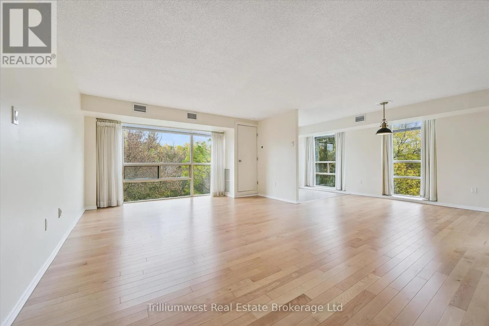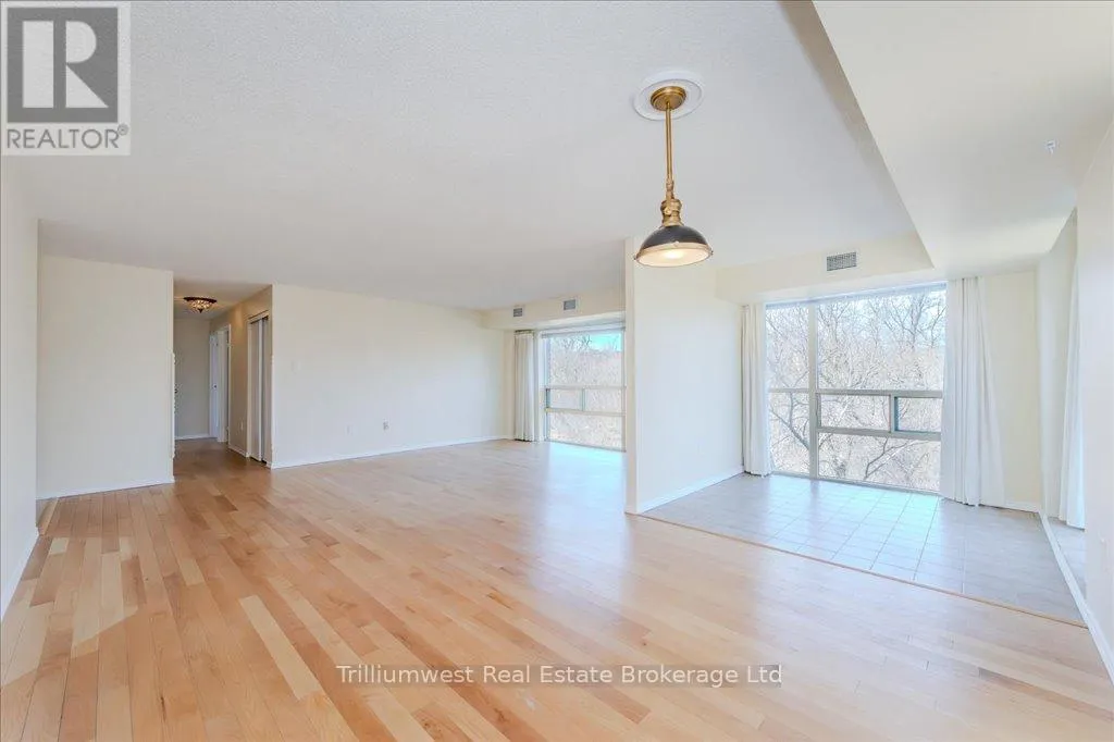Cross Streets: King St N, and Blue Springs Dr. ** Directions: King St N, Turn Rt onto Blue Springs Dr, and Turn Rt into The Atriums Laneway. This absolutely stunning corner unit boasts floor to ceiling windows which beautifully frame gorgeous views of mature gardens and calming green-space. Offering over 1200 square feet of easy living, including 2 large bedrooms and 2 full bathrooms, this spacious condo is a truly rare commodity. The wide open living space flows easily into a generous dining area, providing an effortless layout for entertaining. Relax for a while in the cosy den and enjoy the spectacular vista on any given day. Cook up new recipes and old favourites in the freshly updated kitchen, which offers ample storage for all your culinary desires, along with a delightful breakfast nook where sharing morning coffee and planning the day's adventures is always on the menu. Mechanically upgraded with a newer Heat Pump, Unit 305 includes an underground parking spot plus a large storage locker, along with all the appliances... there's really nothing to do here except move in. Minutes from Uptown Waterloo, walking distance to transit and shopping, there's something here to delight everyone. With an upper patio, a well-stocked library, a party room, shared workshop space, ample visitor parking, and easy access to some of the most scenic trails in Waterloo, this lovely condo is definitely worth a closer look. Please note that Dogs are not allowed in this building. (id:27476)