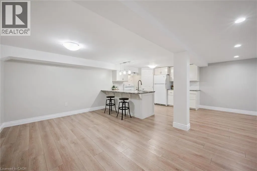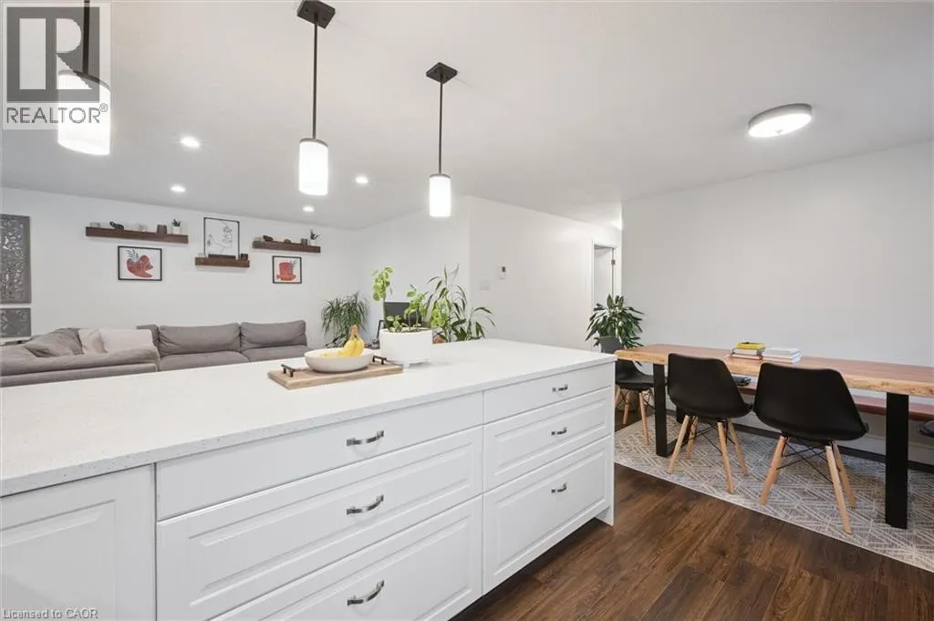 Dunvegan Drive to Grangewood Drive The perfect option for multi-generational living, in-law suite, or a mortgage helper! Beautifully renovated duplex bungalow situated on a highly sought-after, family-friendly crescent in Waterloo, This home features two self-contained units â ideal for aging parents, adult children, or extended family. Extensively updated throughout, including a fully permitted basement suite completed in 2020. Each unit has its own heating and cooling system, separate gas and hydro meters, and private in-suite laundry. The main floor features 3 spacious bedrooms and 1 modern bathroom, along with a large, open-concept living space. The kitchen is a chefâs dream, with quartz countertops, stainless steel appliances, and a breakfast bar that flows seamlessly into the dining and family rooms. The lower level offers a bright and welcoming 1-bedroom suite with a den, perfect for a home office or guest room. Enjoy cozy evenings by the gas fireplace, and take advantage of custom heating controls in each room, a wall-mounted AC unit, and a stylish kitchen with generous storage, countertop space and a breakfast bar. Outside, you will find a metal roof, large private fully fenced lot and double-wide driveway with space for 6 vehicles including a car port, providing ample parking for the whole family, plus a massive wood deck and spacious backyard to BBQ and entertain! Located in a highly desirable Waterloo neighbourhood, just steps from transit, minutes to the expressway access, and close to parks, green space, shopping, and all amenities. (id:27476)