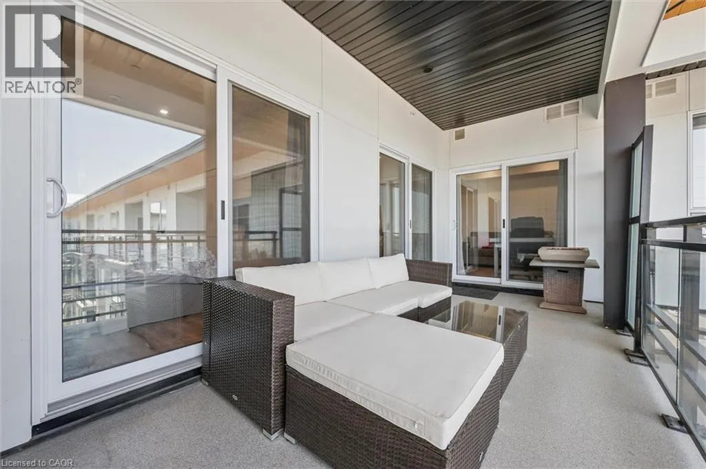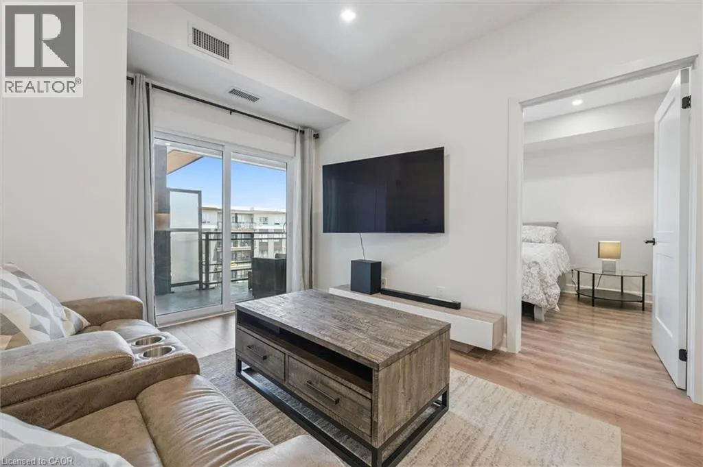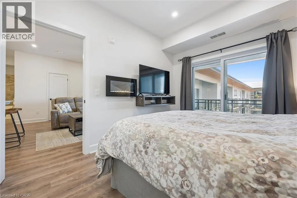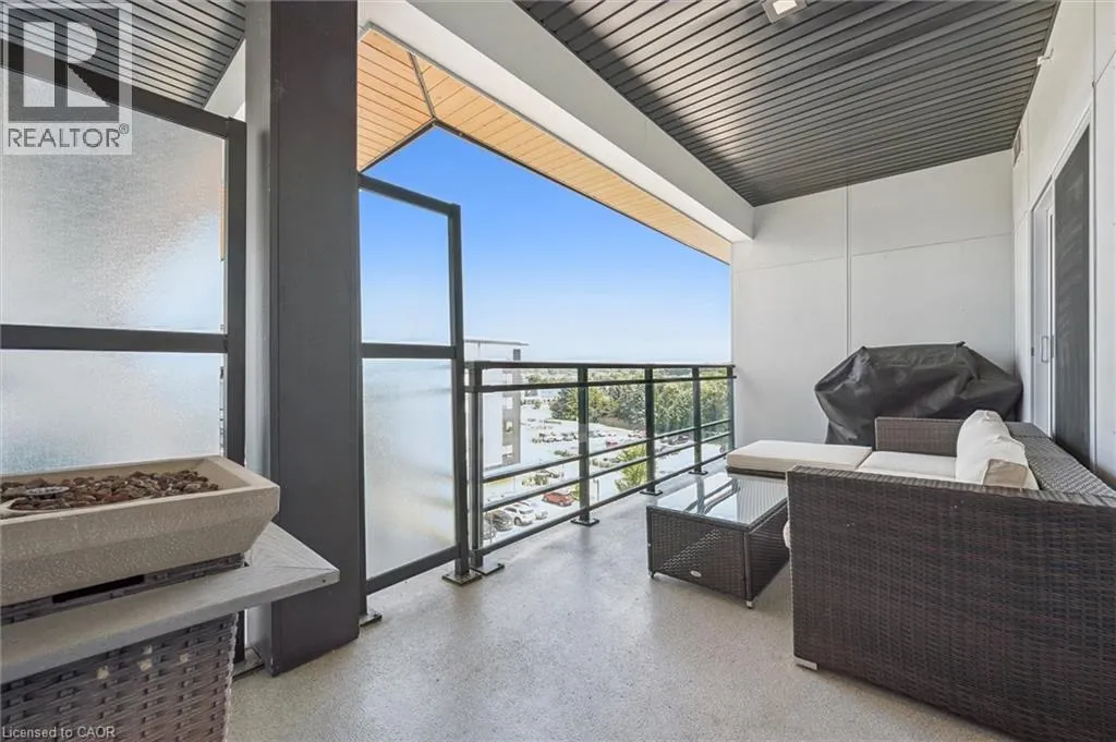 Northfield Drive / Bridge St W Welcome to Unit 609 at Blackstone Condominiums, where modern design meets everyday convenience. As a top floor unit you enjoy peace and quiet with no overhead noise from the neighbours. This two-bedroom, two-bath home features an open-concept layout with a sleek kitchen boasting quartz countertops, stainless steel appliances, and a functional island overlooking a bright living area. The primary suite offers a private ensuite and direct balcony access, while the second bedroom provides flexibility for guests or a dedicated home office, also opening onto the oversized balcony that connects all three main living spaces. Perfect for morning coffee, evening dining, or simply enjoying the outdoors, this extended outdoor area adds an element of space rarely found in condo living. Residents at Blackstone enjoy premium amenities, including an exercise room, games and media rooms, a party room, rooftop deck, and landscaped garden. Located just minutes from Conestoga Mall, the ION LRT, RIM Park, and the scenic Walter Bean Trail, with shopping, cafés, and restaurants right outside your door, this unit delivers a complete lifestyle package. Ideal for professionals, downsizers, or investors seeking a prime Waterloo location with standout features. (id:27476)