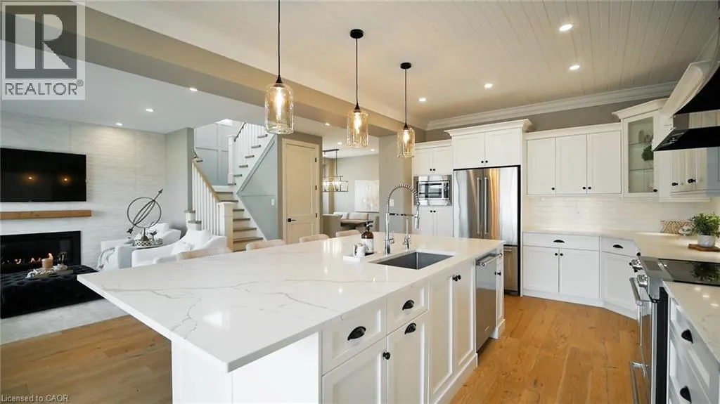 Beechdrops Dr to Twinleaf Welcome to 428 Twinleaf Street â a custom-built, designer-upgraded home in sought-after Vista Hills. Steps from top-rated schools and the GeoTime Trail, this 4-bedroom + den, 3-bath residence blends luxury finishes with practical, everyday comfort. The main floor features a true open-concept layout with premium white oak hardwood flooring throughout. The chefâs kitchen shines with stainless steel appliances, a custom range hood, a massive island with seating, and a Sorso RO hot/cold water systemâa perfect hub for family life and entertaining. The living area includes a sleek built-in gas fireplace, adding warmth and style. Upstairs offers four generous bedrooms, including a tranquil primary suite with a spa-inspired ensuite featuring a steam sauna shower, heated floors, and a heated towel rack. Laundry on the second level adds convenience. Loaded with smart-home upgrades, this home includes remote-controlled blinds on the stairway window, Ecobee thermostat, WiFi smart switches, and a myQ smart garage system. The oversized garage is finished with an epoxy-coated floor and outfitted with central vac, adding functionality and storage versatility. Outside, enjoy a fully interlocked backyard centred around a $10,000 Dekko built-in gas firepitâideal for year-round use. With over $200,000 in premium upgrades and a walk-out basement offering potential for an in-law suite or future expansion, this home delivers exceptional long-term value. Move-in ready, meticulously upgraded, and located in one of Waterlooâs most desirable neighbourhoodsâthis is a rare opportunity you donât want to miss. (id:27476)
